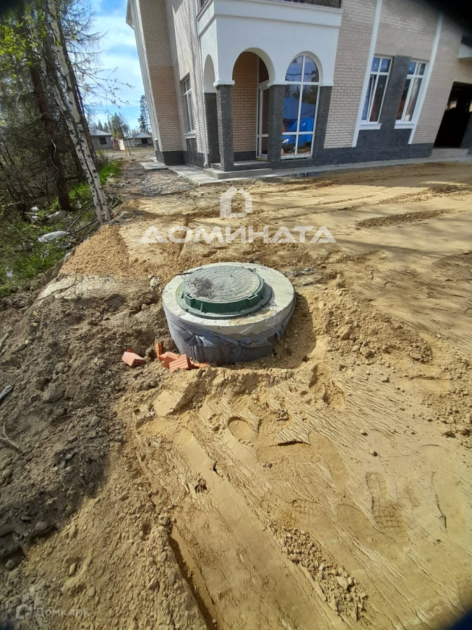 По коммуникациям: газ на участке, центральное водоснабжение с питьевой водой на участке (так же имеется собственная скважина, заведённая в дом), электричество 15 кВт (заведено в дом). По всему периметру сделана дренажная система со своим колодцем с естественным и принудительным ( электрическим) отводом воды в траншею.