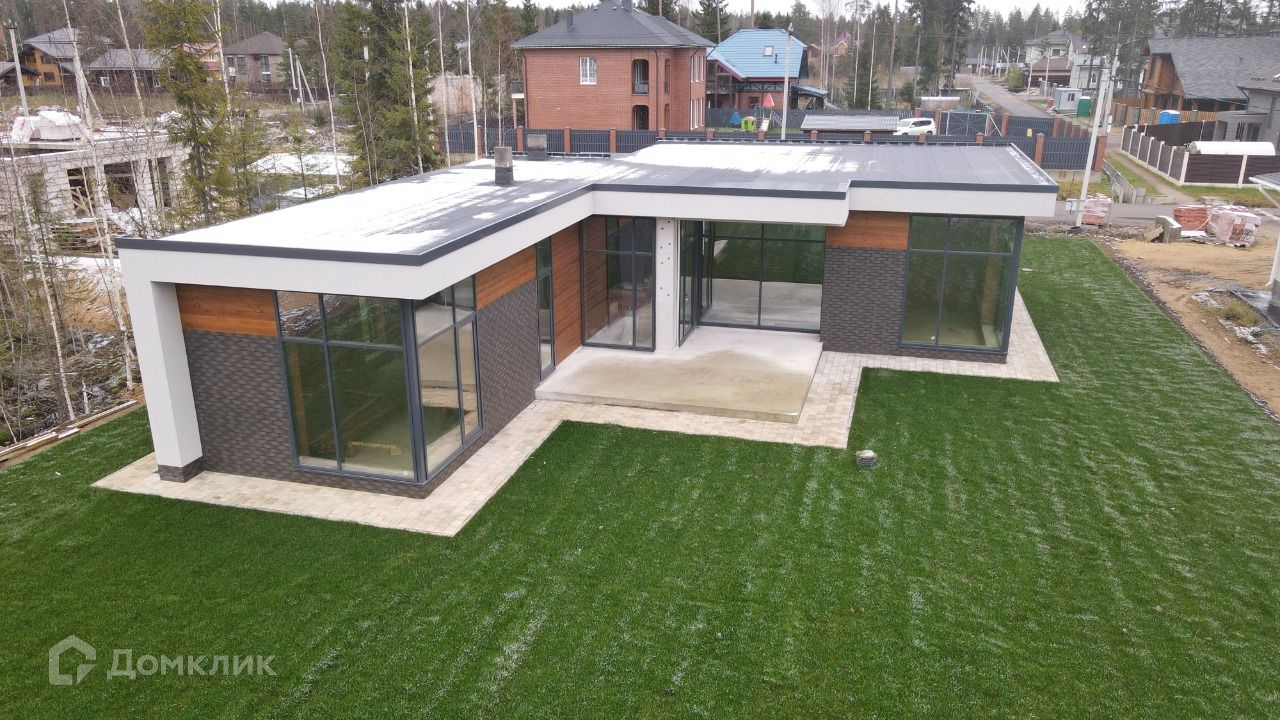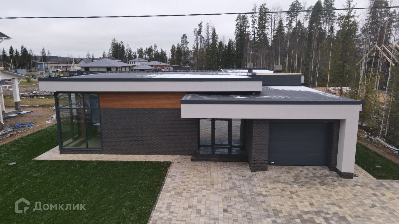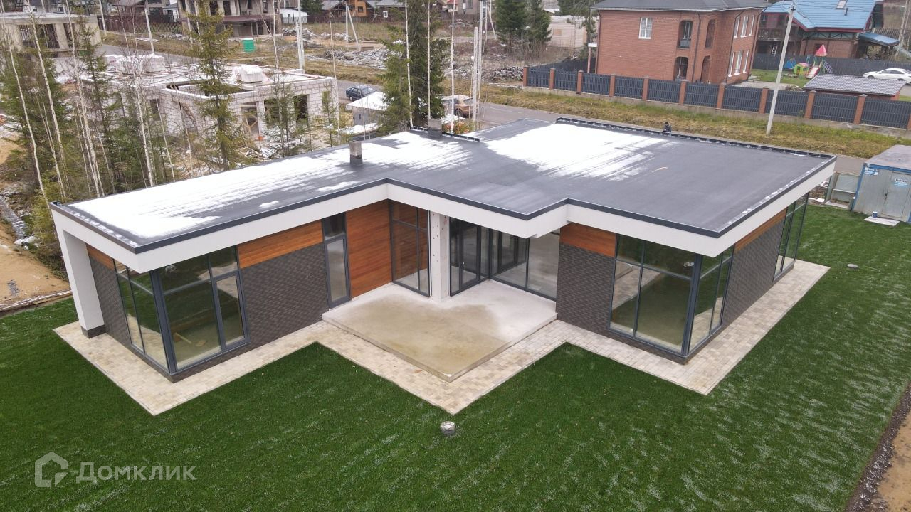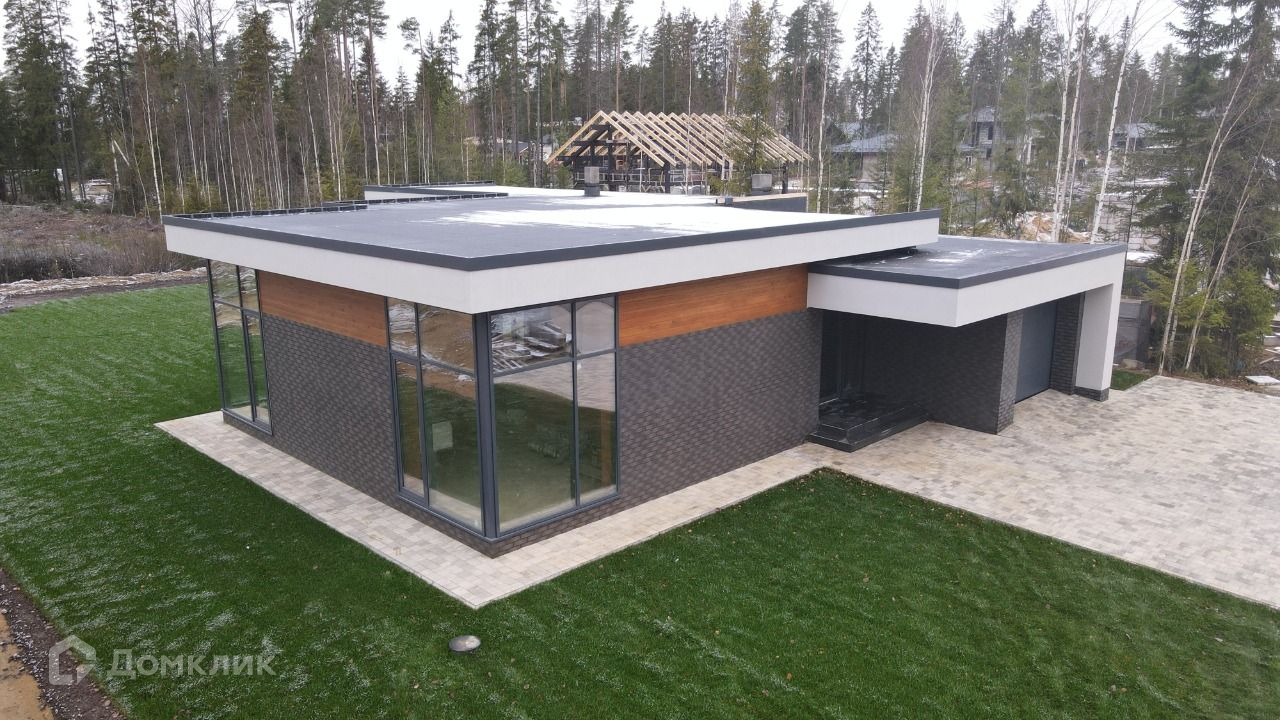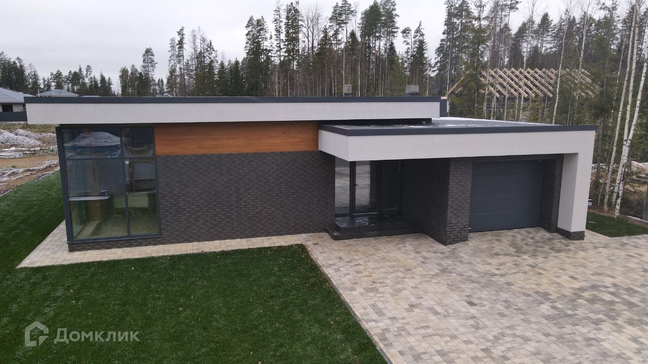 Продаётся одноэтажный кирпичный дом с плоской кровлей с стиле хайтек, площадь 170м, с гаражом и сауной.