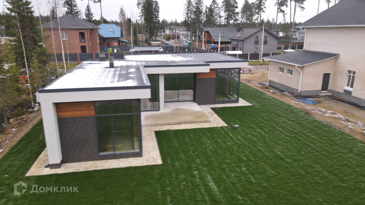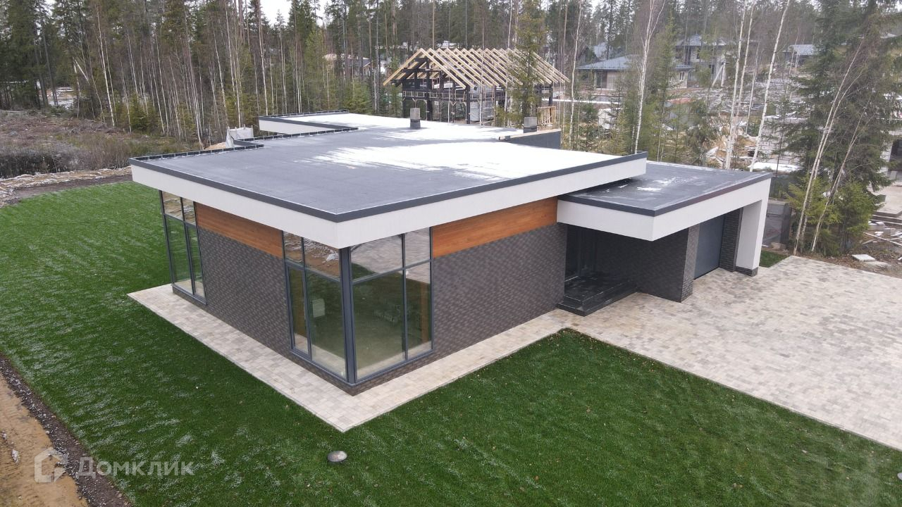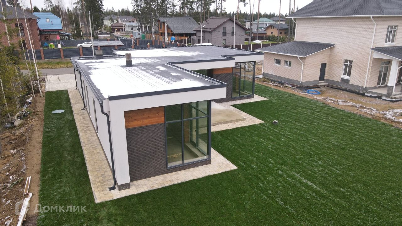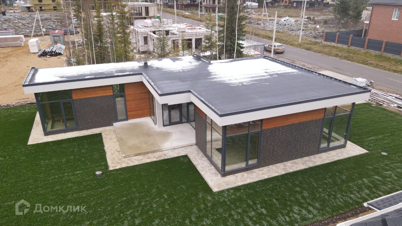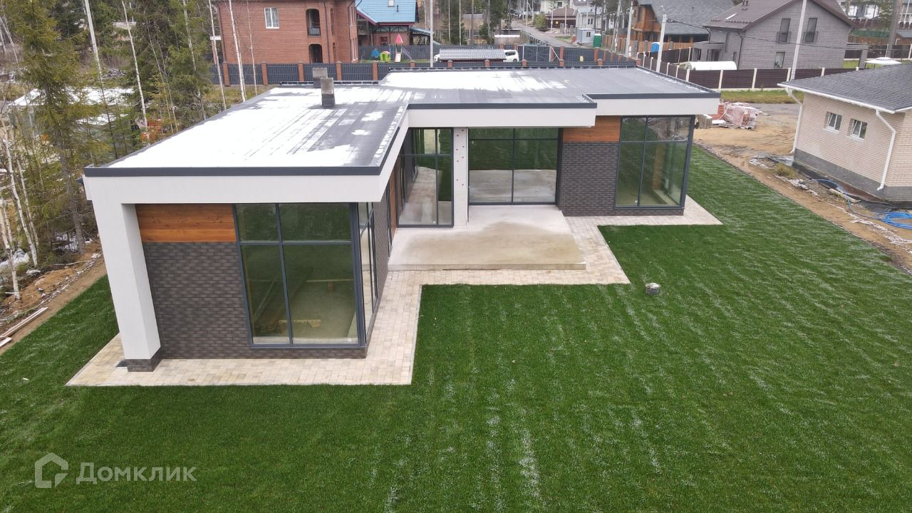 Продаётся одноэтажный кирпичный дом с плоской кровлей с стиле хайтек, площадь 170м, с гаражом и сауной.