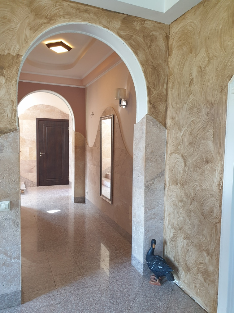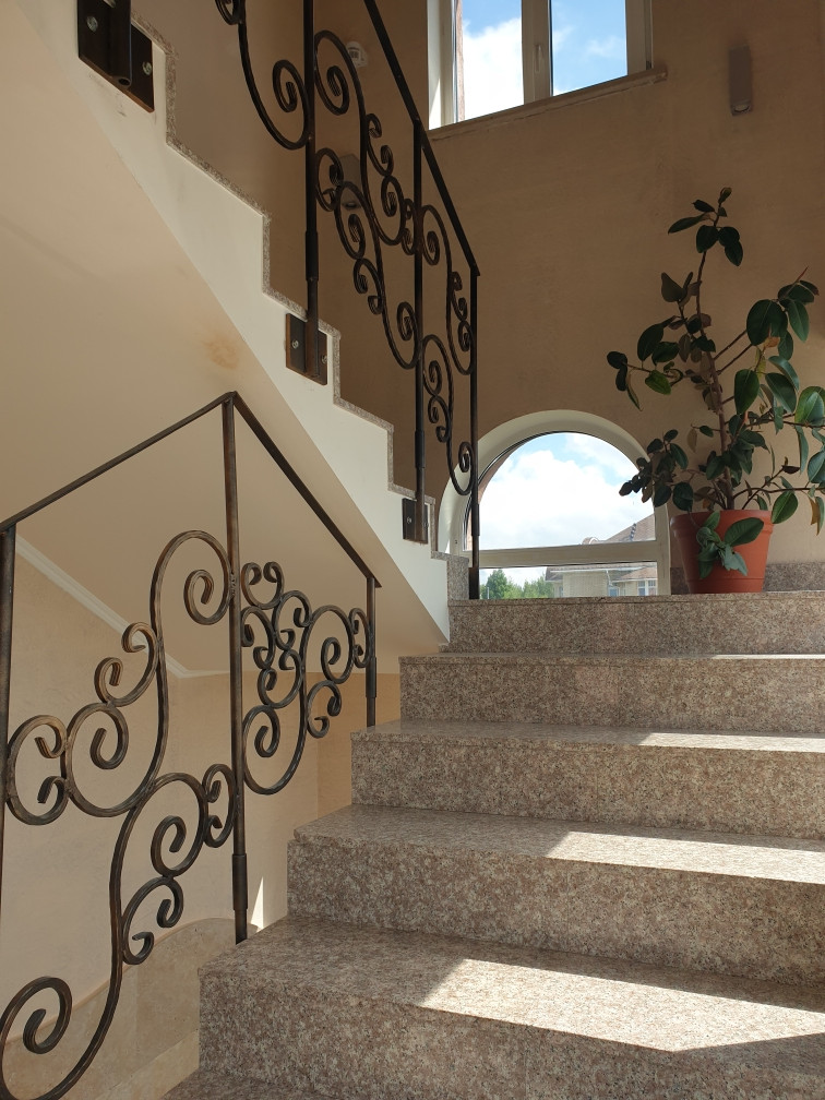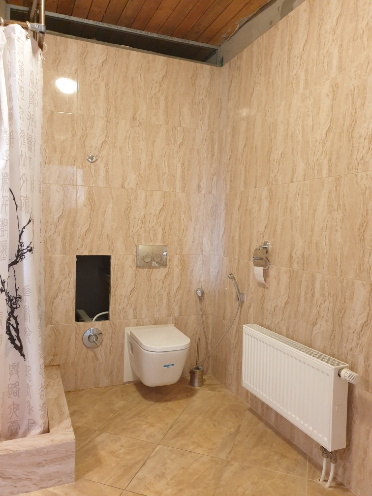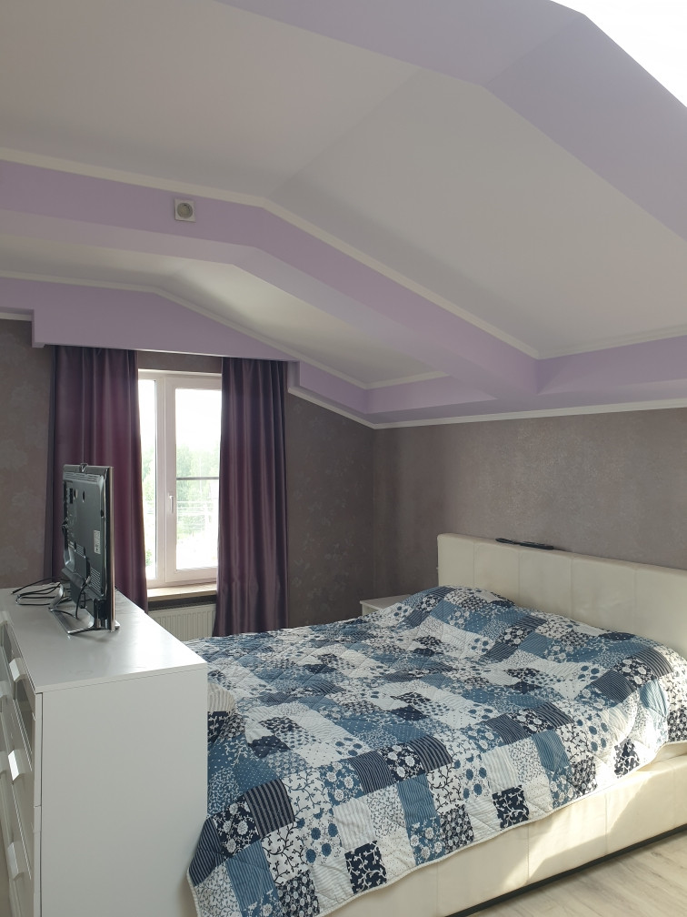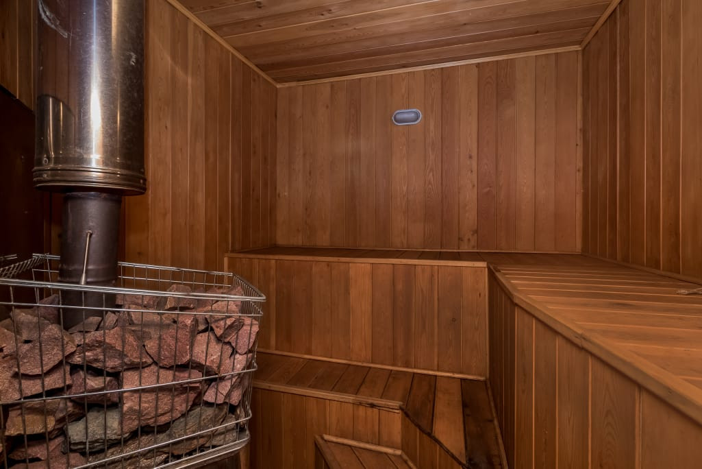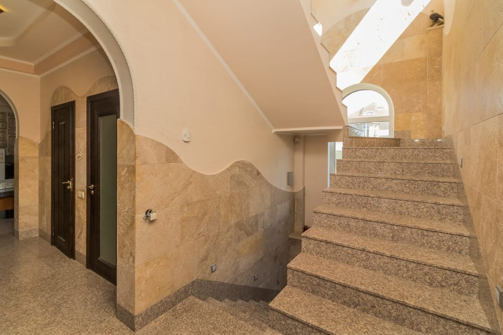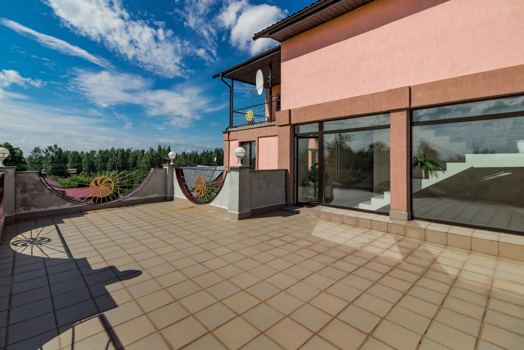 В доме есть сауна с бассейном, на первом этаже большая гостиная 43 кв. м. с камином, кухня 21 кв. м. На каждом этаже санузел, на втором и третьем этаже  открытые террасы с потрясающими видами - дом стоит на возвышенности.