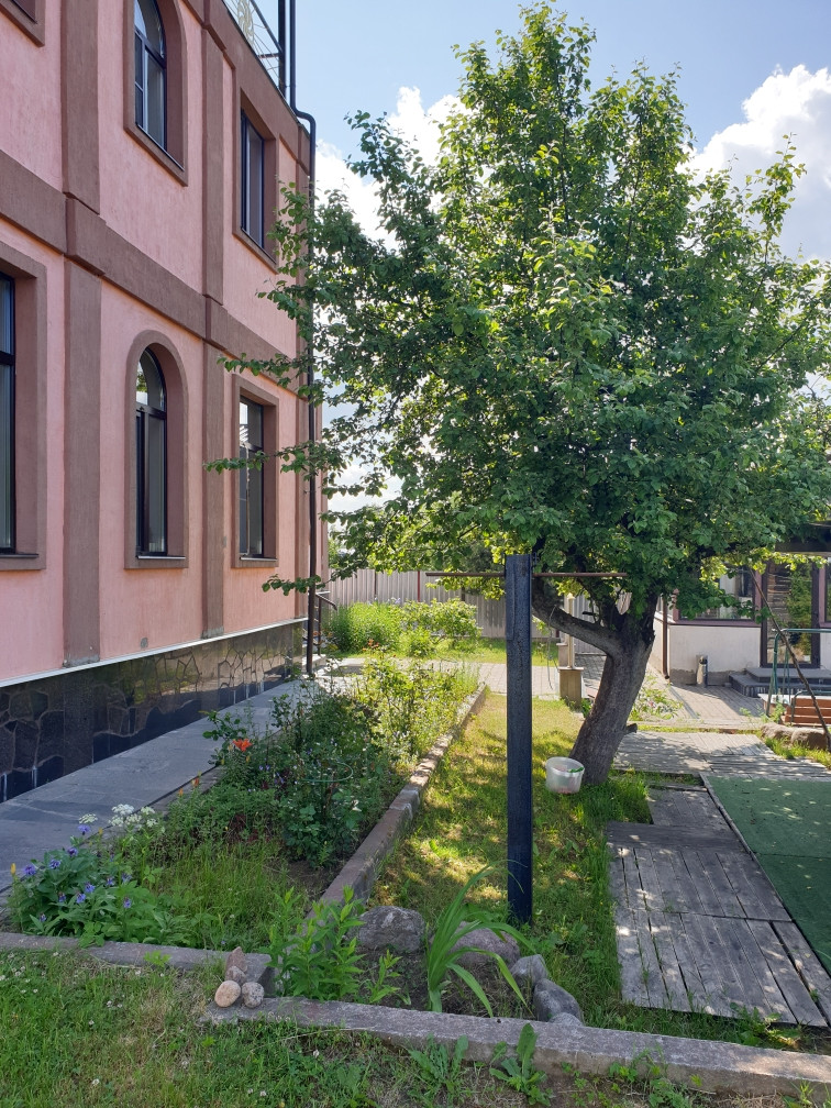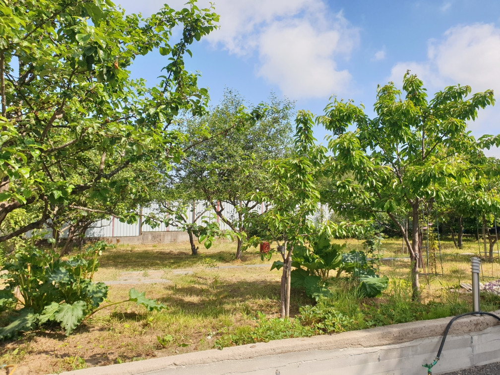 На участке сад плодовых деревьев, ягодные культуры, большой парник, обустроена летняя кухня с тандыром, отдельно стоящий гараж на 2 автомобиля с жилым вторым этажом, участок выходит на две улицы, есть ворота для автомобилей с обеих сторон. При желании участок можно разделить на два с удобным въездом для каждого.