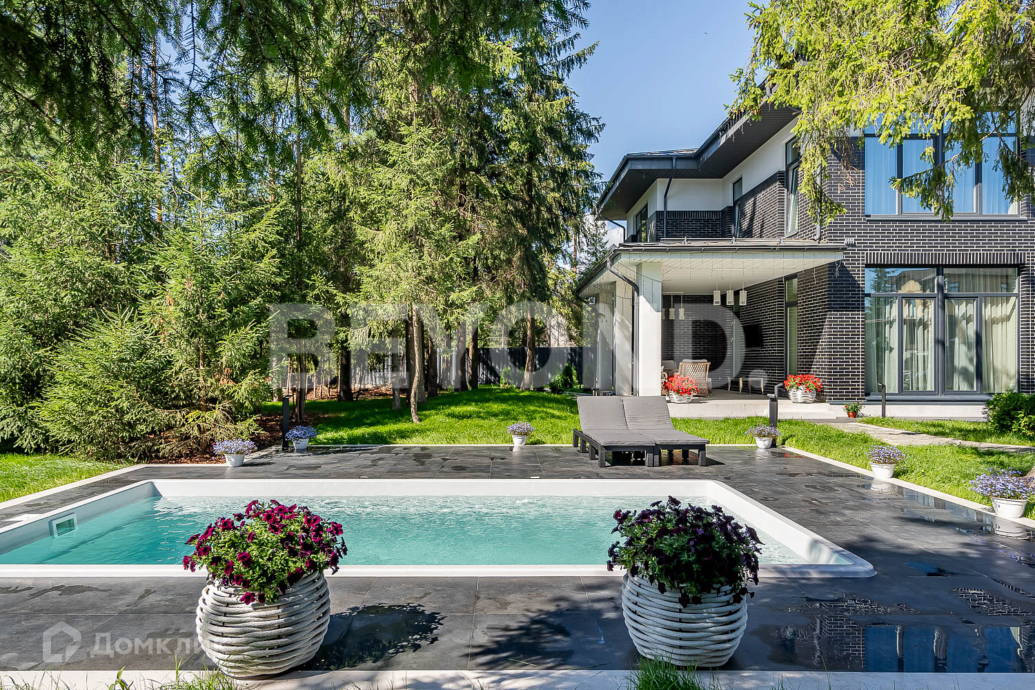 Бассейн под открытым небом – главная особенность этого дома. Вы сможете наслаждаться отдыхом в бассейне не только в летнее время года, но и в зимнее. Бассейн оборудован подогревом и ультрафиолетом.