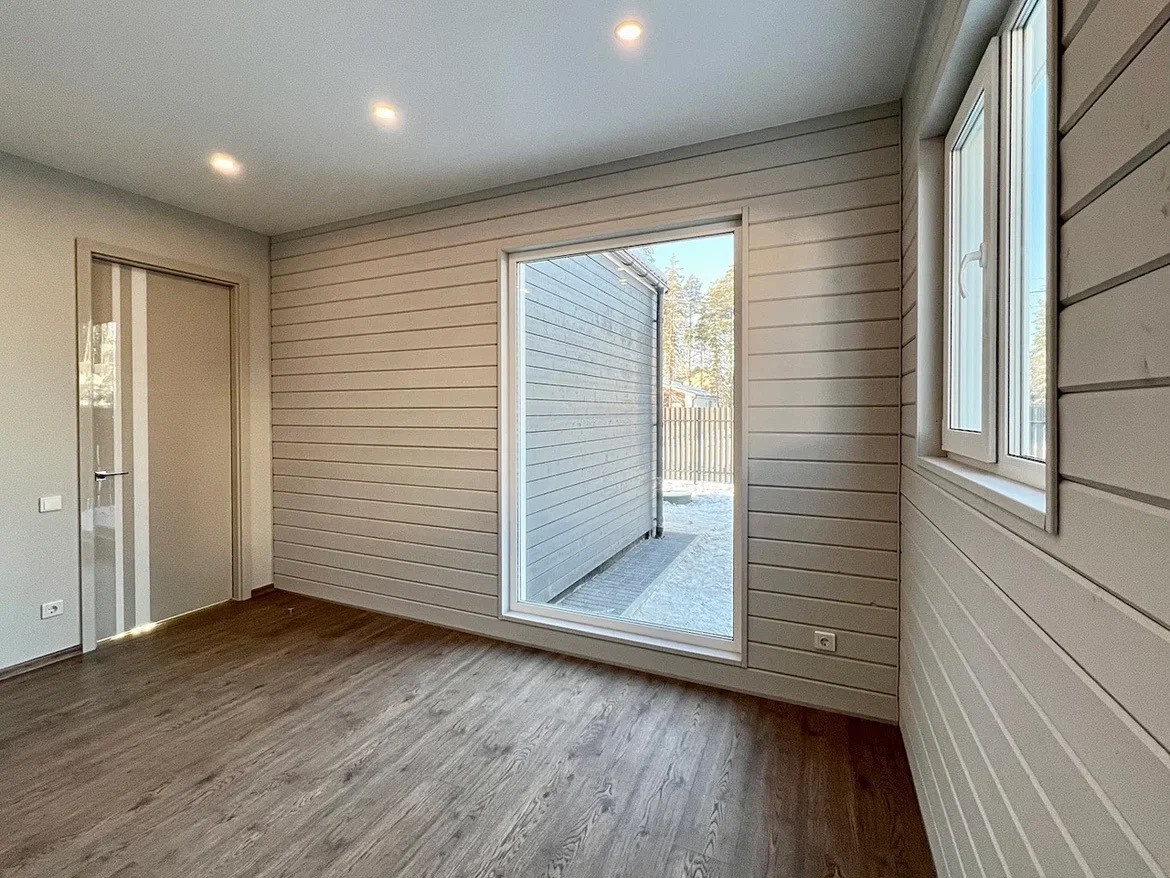 Новый современный одноэтажный дом общей площадью 165м2 на участке 10,64 соток с полной высококачественной чистовой отделкой и кухней с техникой, для постоянного проживания в закрытом элитном поселке Савоя в 25 минутах минутах езды от ст.м.Парнас!