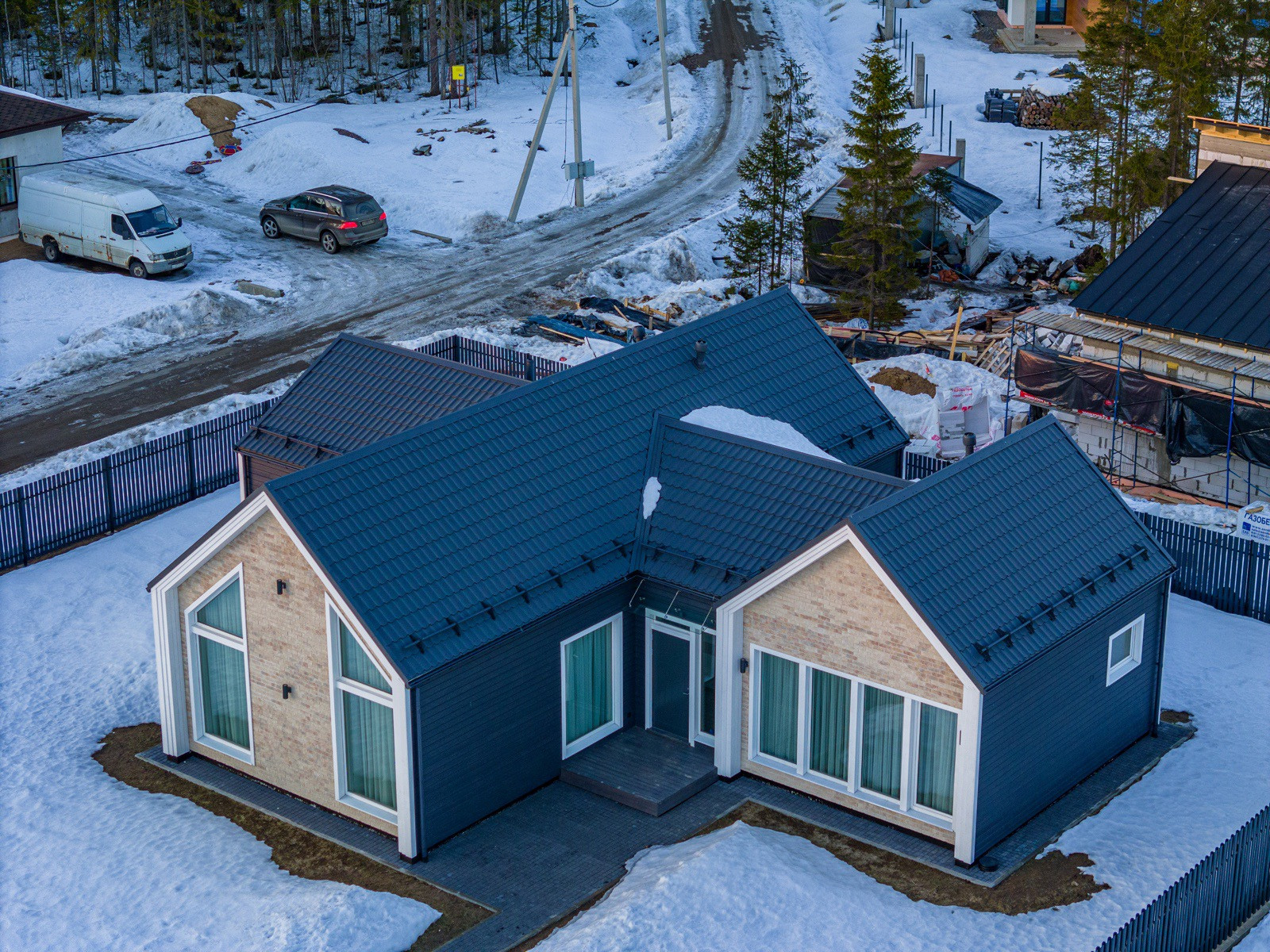 УЧАСТОК С ЗАБОРОМ , ГАЗОНОМ И МОЩЕНИЕМ! Участок полностью огорожен забором из металлического штакетника в цвет кровли и крылец дома, оснащен откатными воротами с электроприводом и калиткой. Въезд, зона парковки, дорожка к дому и отмостка вымощены тротуарной плиткой общей стоимостью 1млн рублей!, посеян газон. Установлен септик, сделана дренажная система
