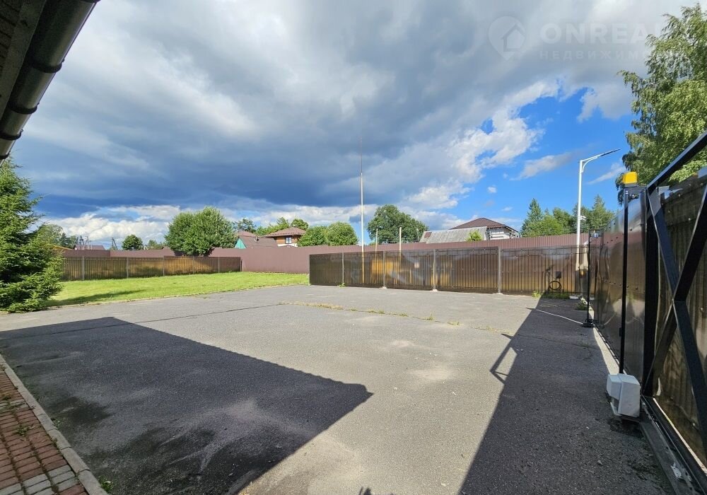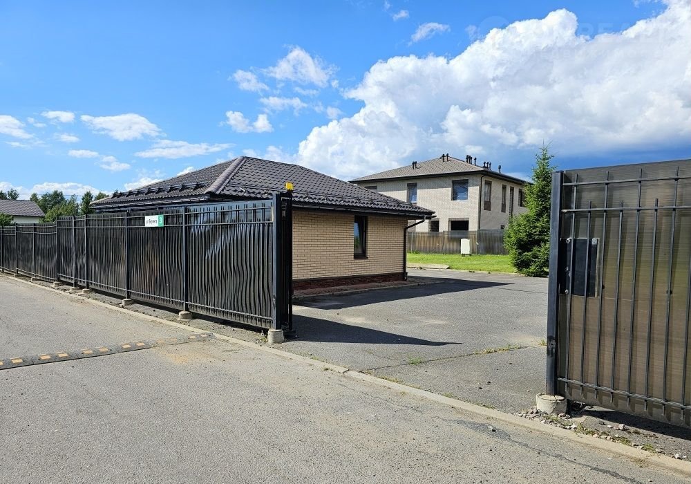 Въезд на участок по асфальтированной дороги через широкие металлические ворота с электрическим приводом. Есть и второй въезд на участок с противоположной  стороны. Перед домиком - большая автомобильная асфальтированная парковка на 8 машин. Заезд в поселок с Приозерского шоссе через шлагбаум, который управляется либо пультом, либо моб. телефоном.