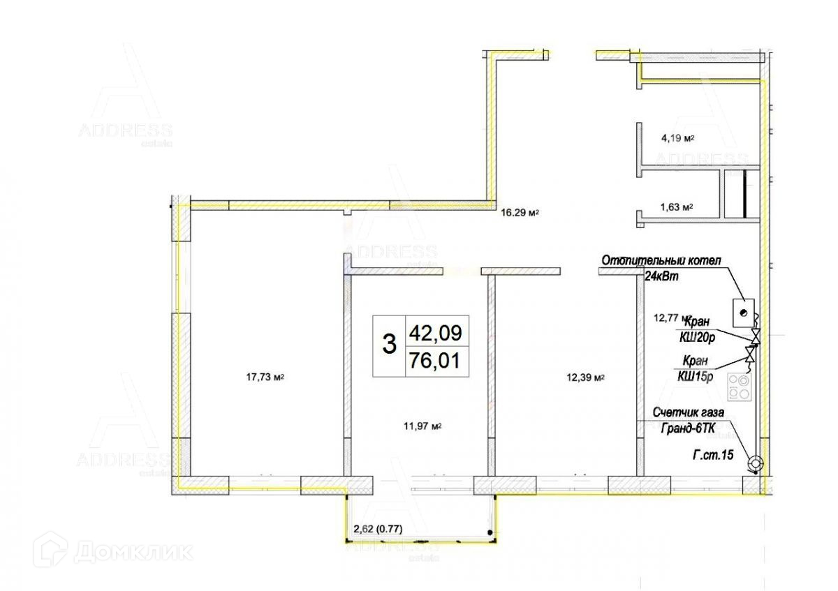 Общая площадь 76.1 м2