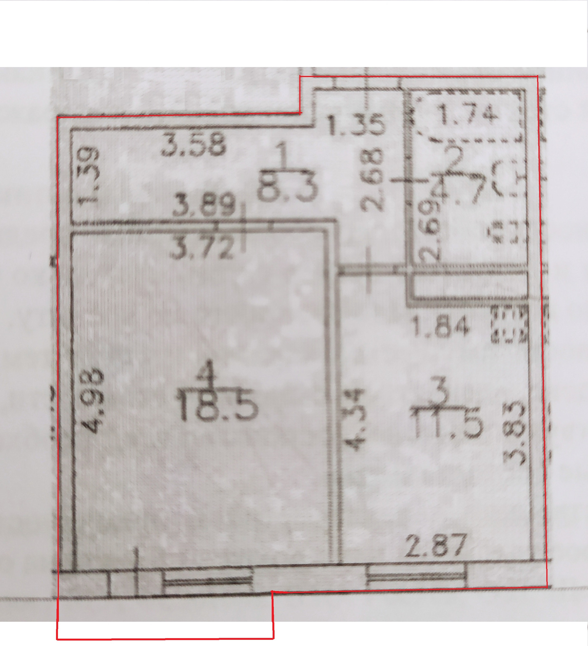 Жилая площадь 18.5 м2