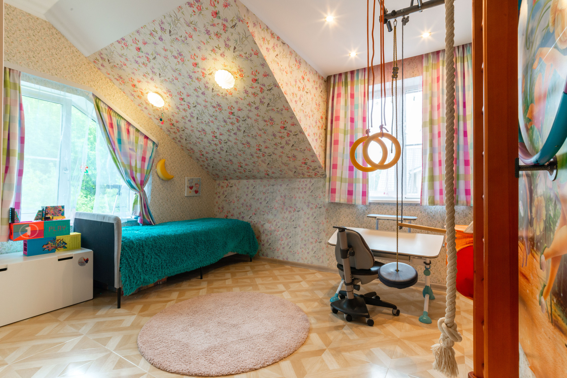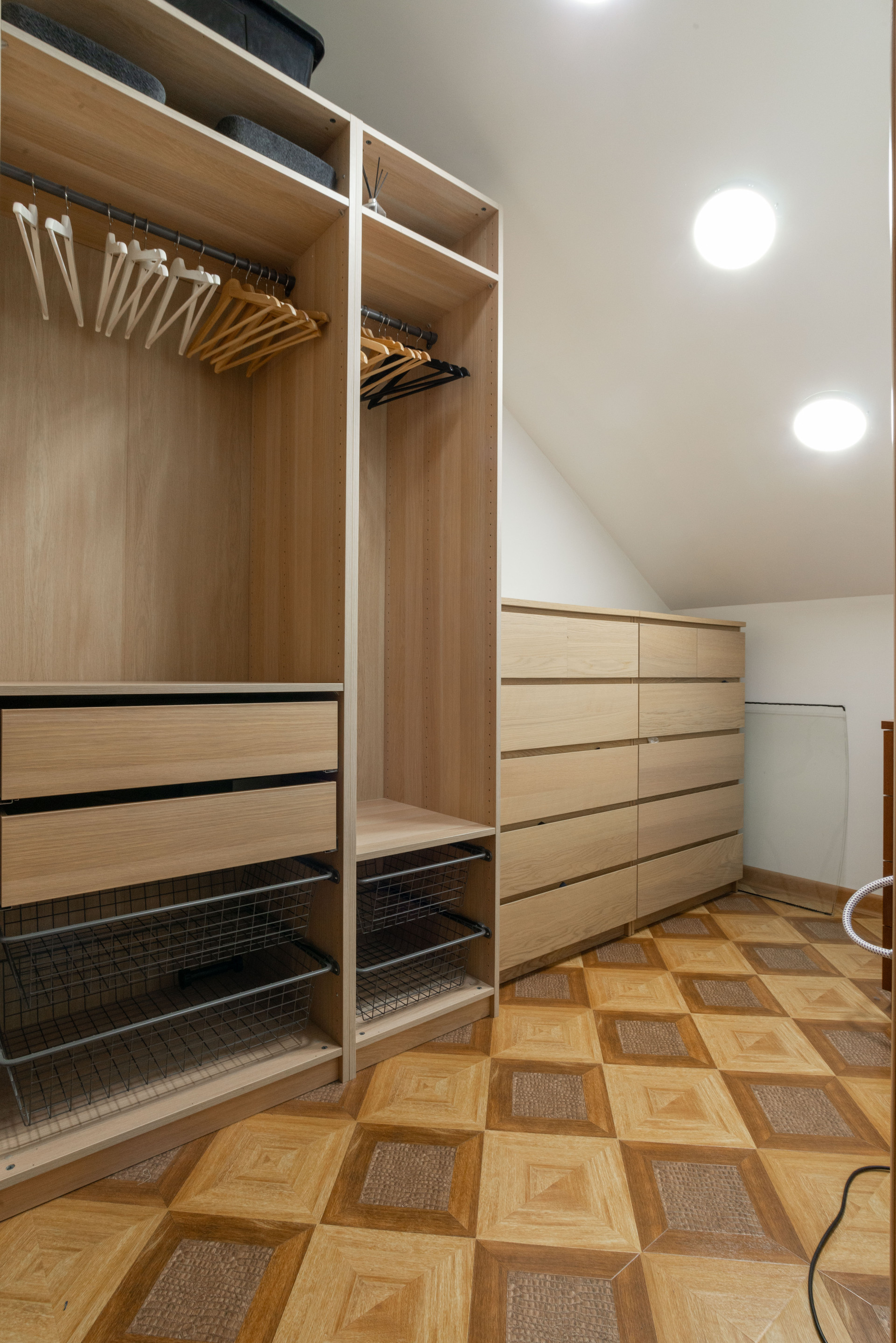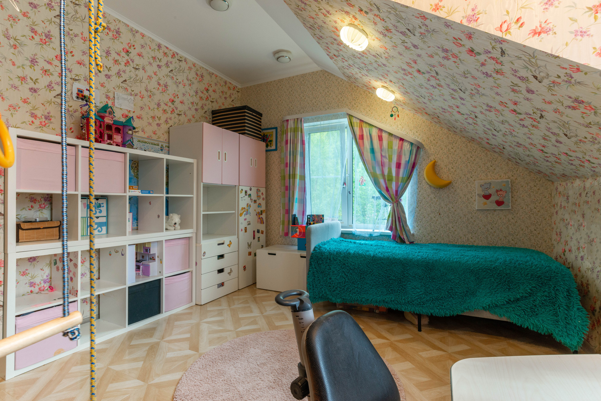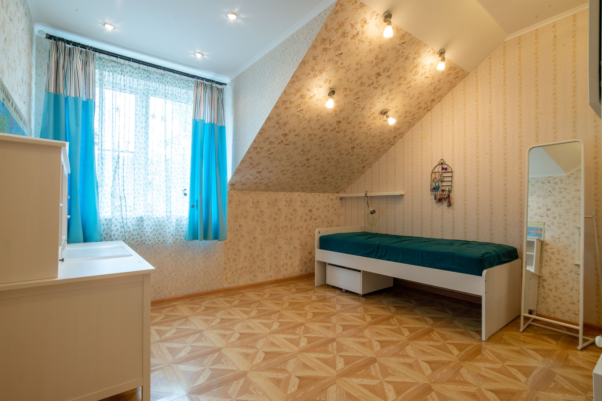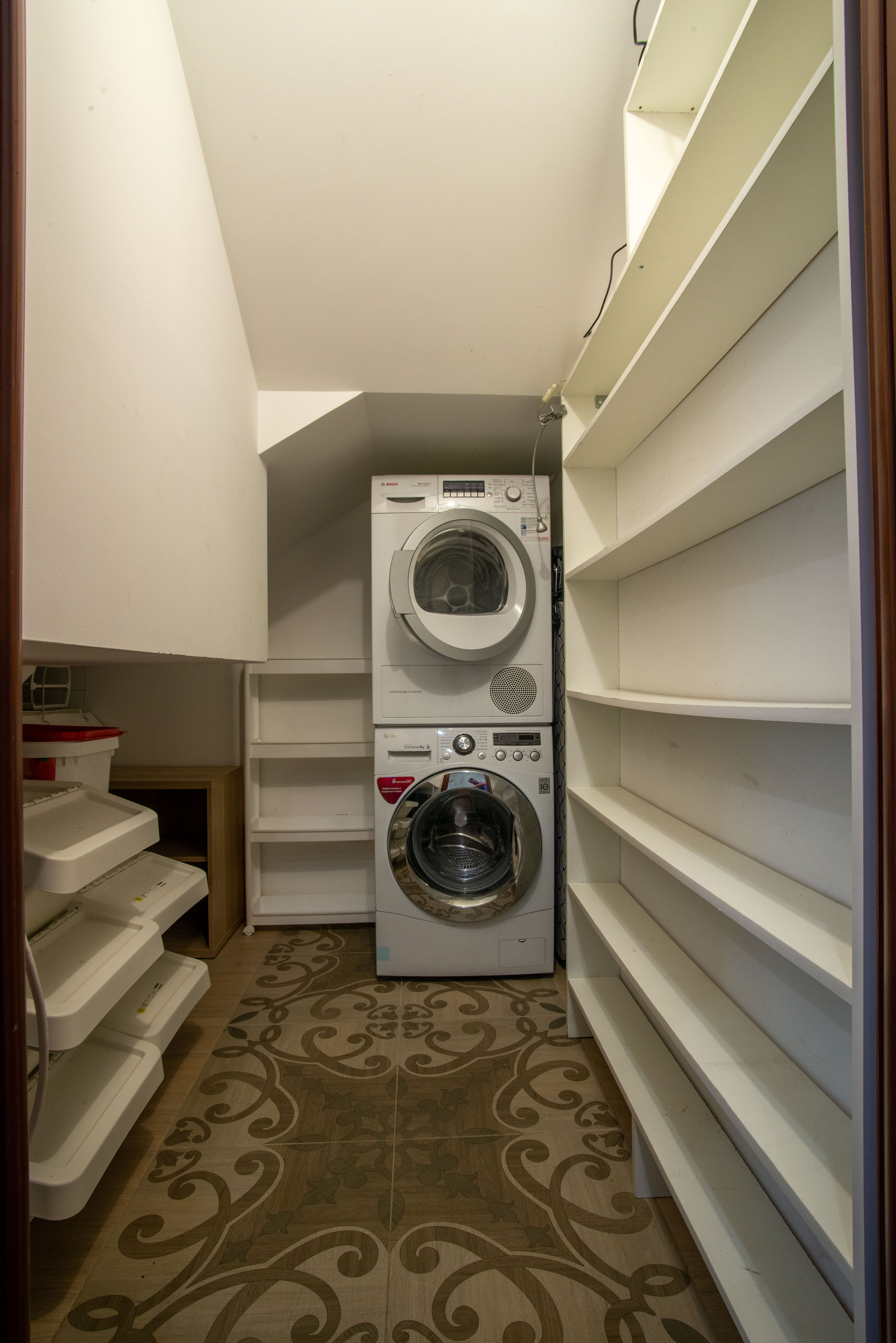 На 3 этаже лестничного пролета размещена библиотека. Просторный чердак оборудован как место для хранения.