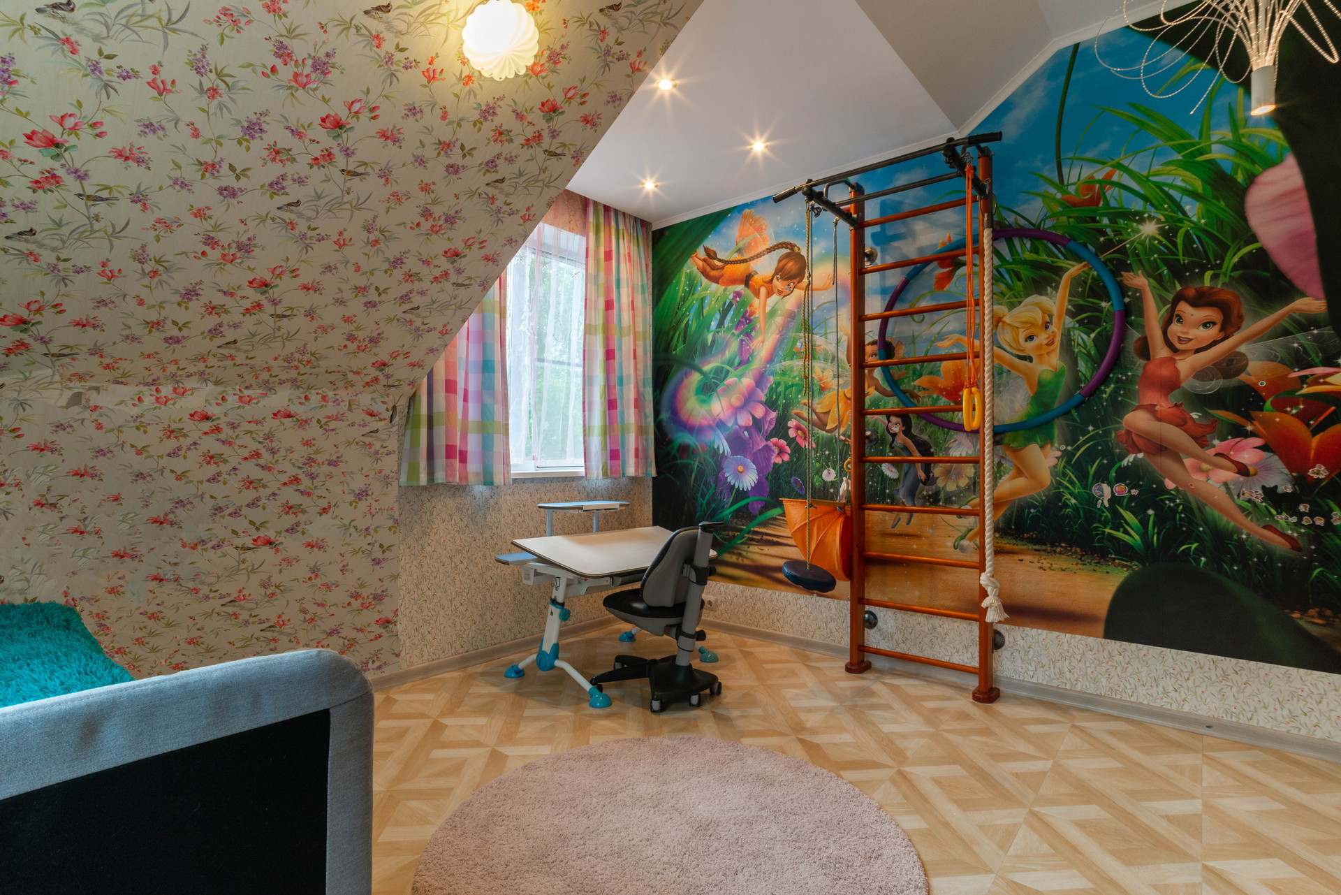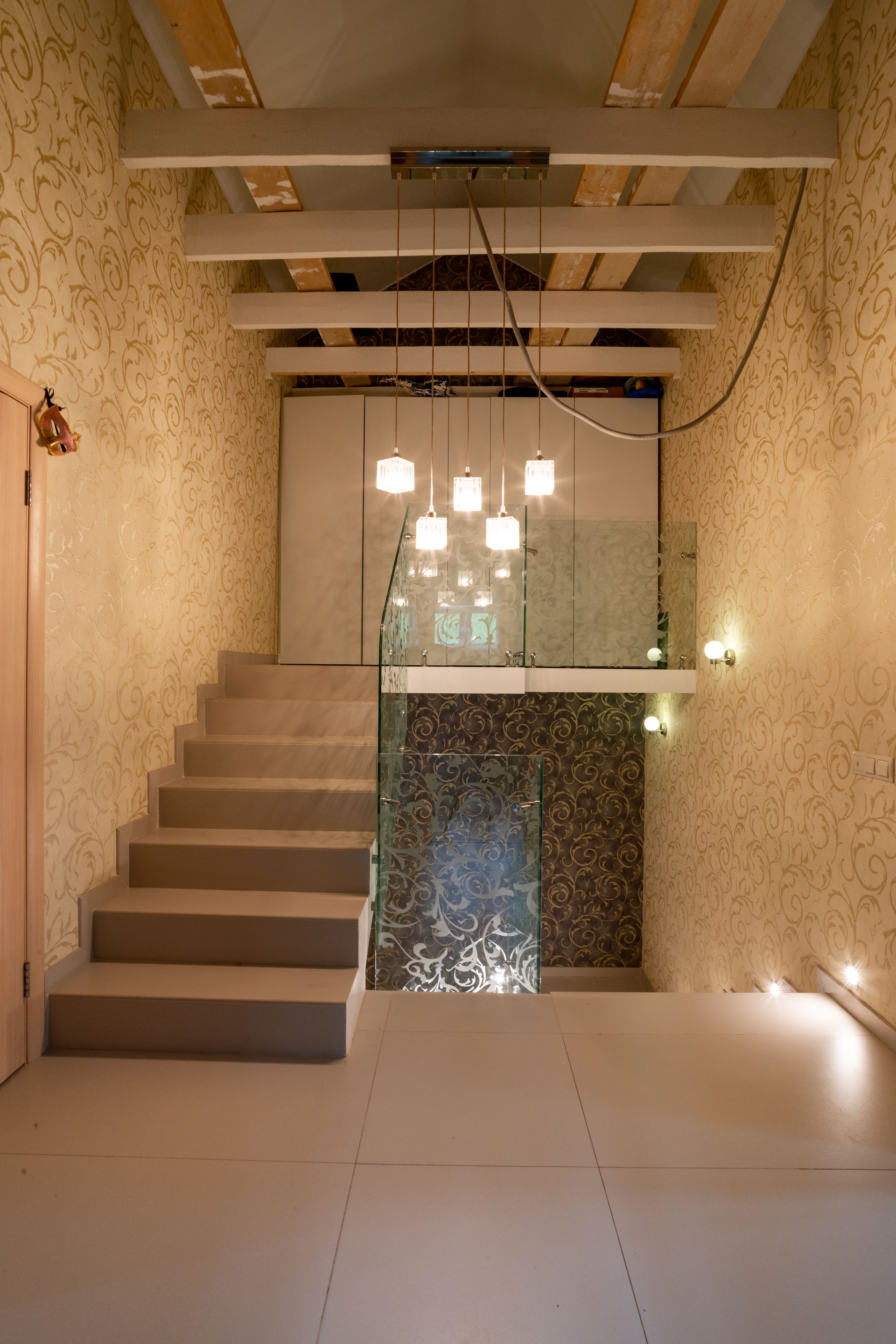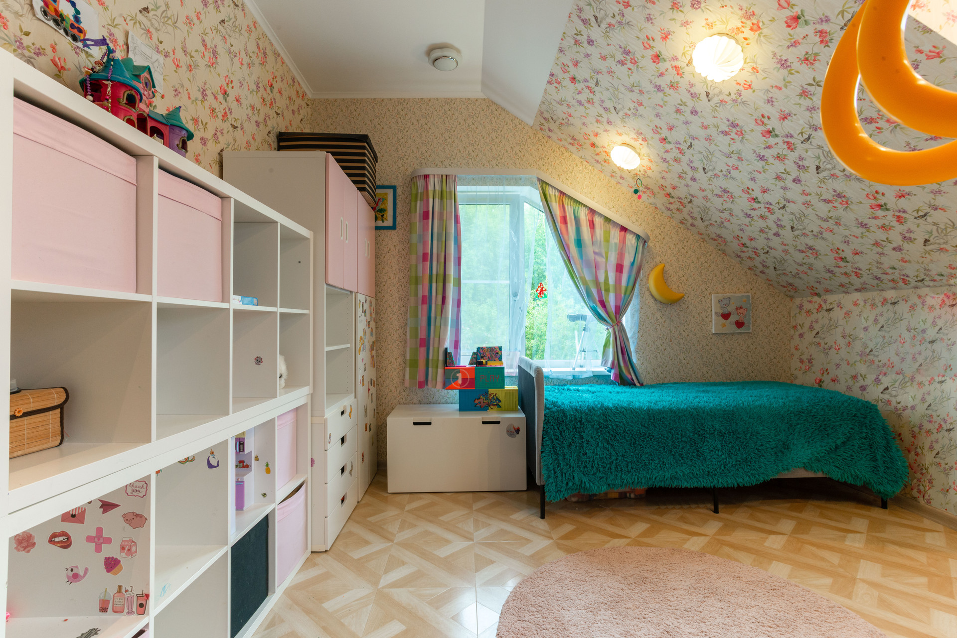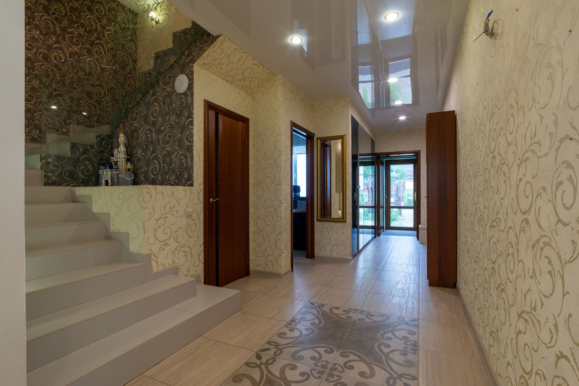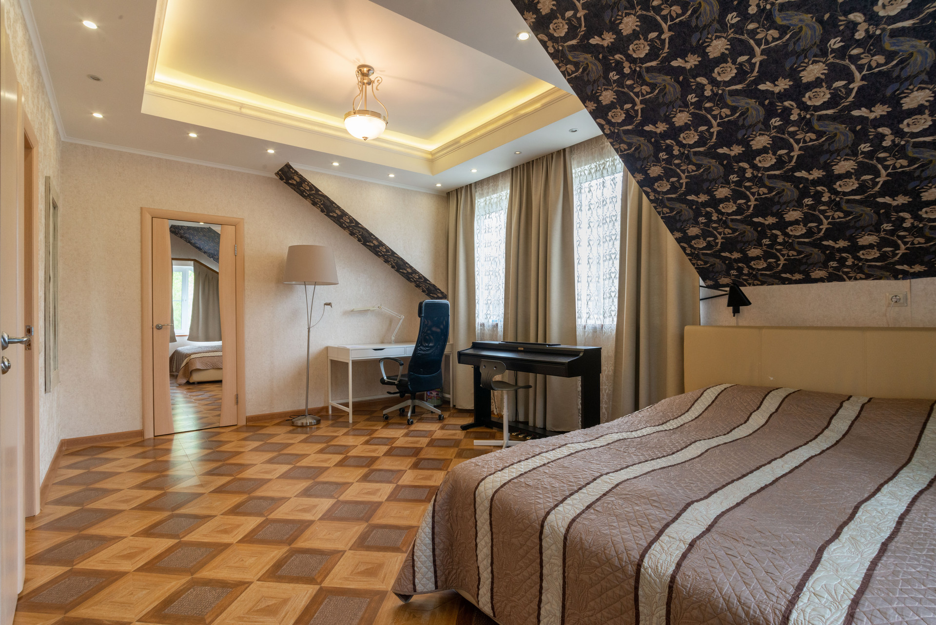 На 3 этаже лестничного пролета размещена библиотека. Просторный чердак оборудован как место для хранения.