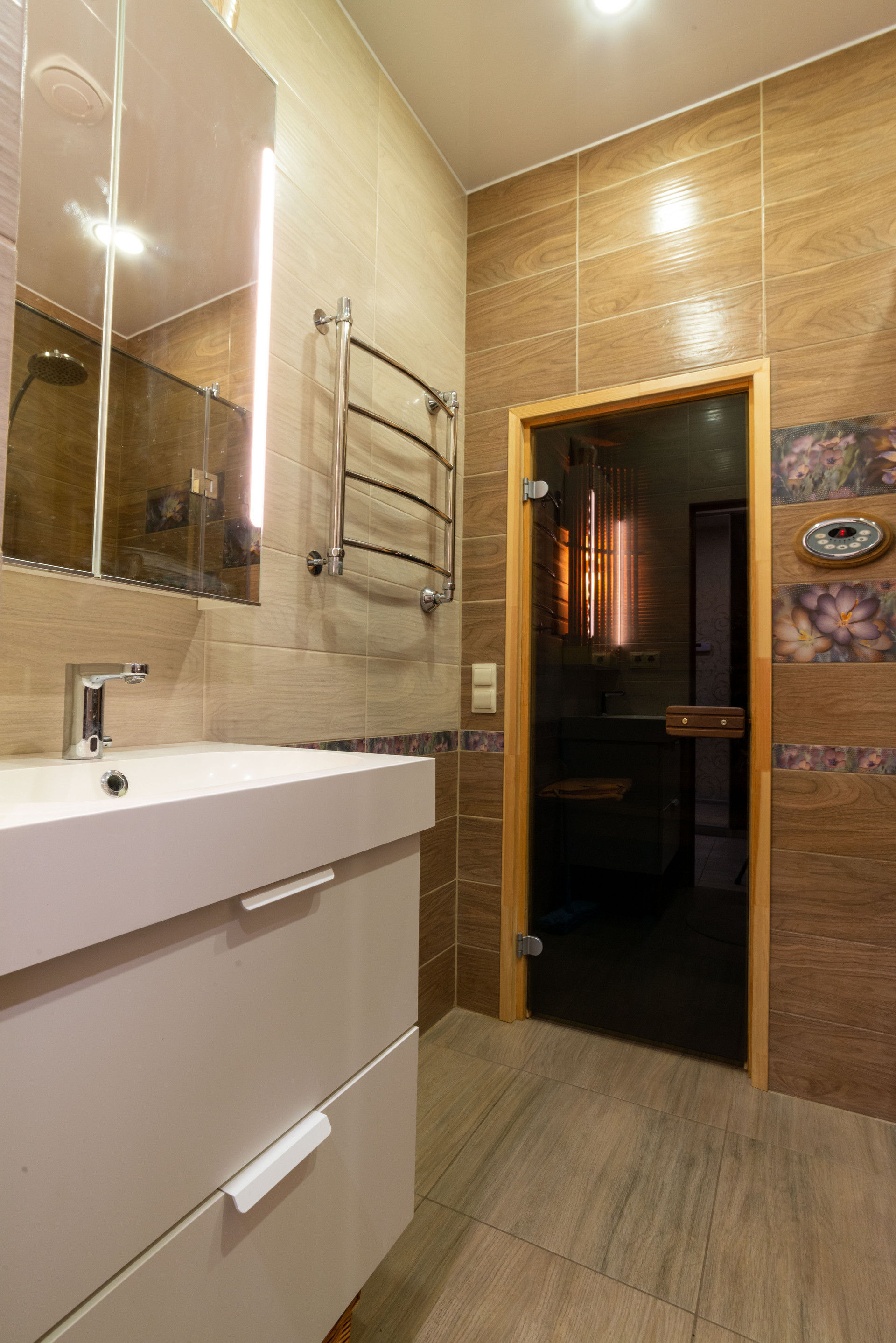 В холле гостиной установлен дровяной камин, в санузле 1 этажа - сауна с электрической печью.