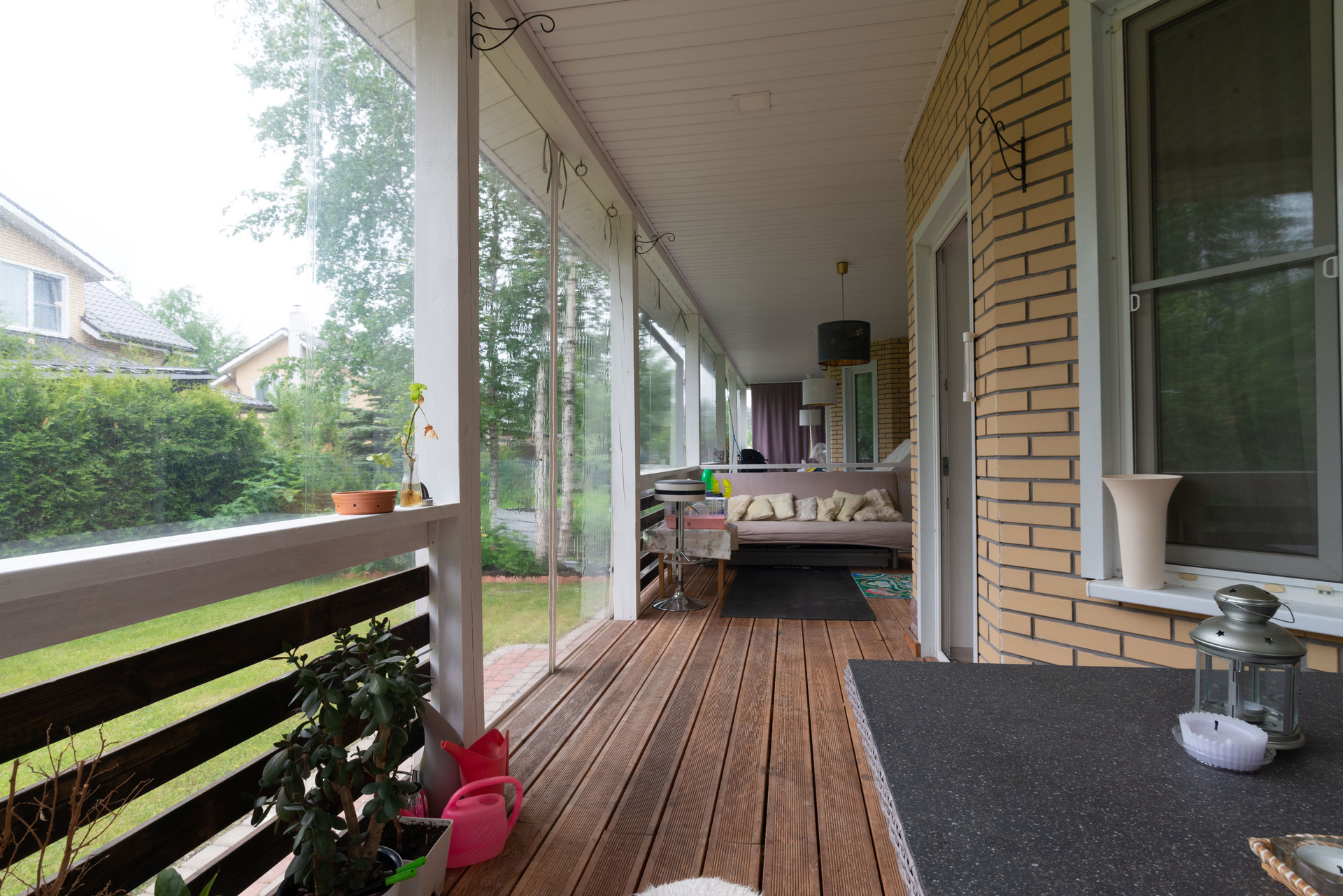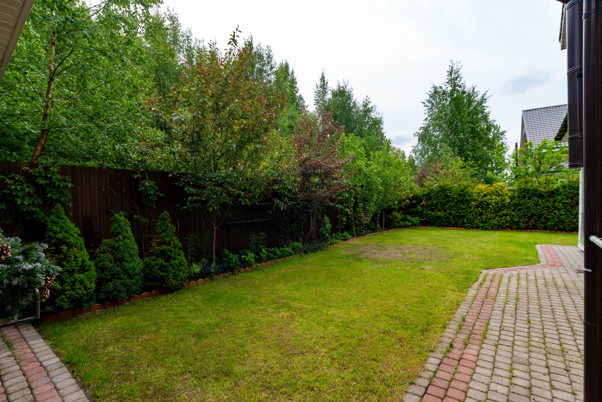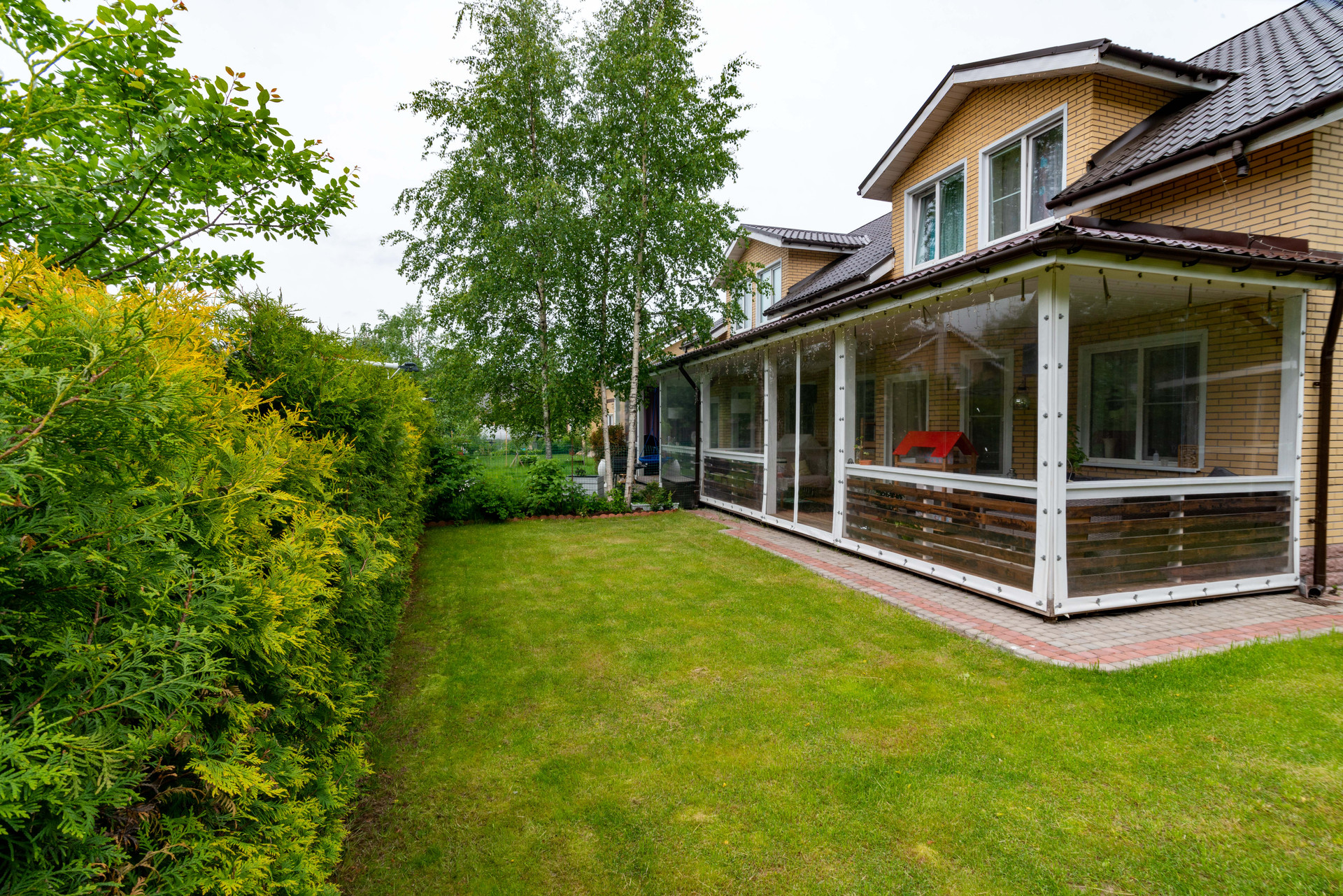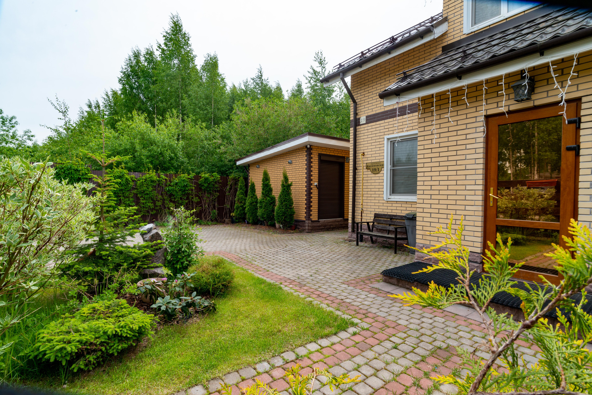 УЧАСТОК: 4 сотки, выровнен, выполнен дренаж и ливневая канализация, уложен рулонный газон, высажены плодовые и декоративные растения, вымощена парковка и дорожки, построена просторная веранда и хозблок.