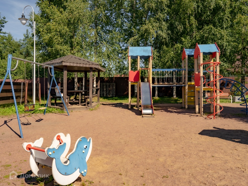 5. Прямо на территории коттеджного поселка есть всё для безопасного отдыха: детские площадки, футбольное поле, зеленые зоны отдыха, парк. Всё это располагается на большой охраняемой территории.