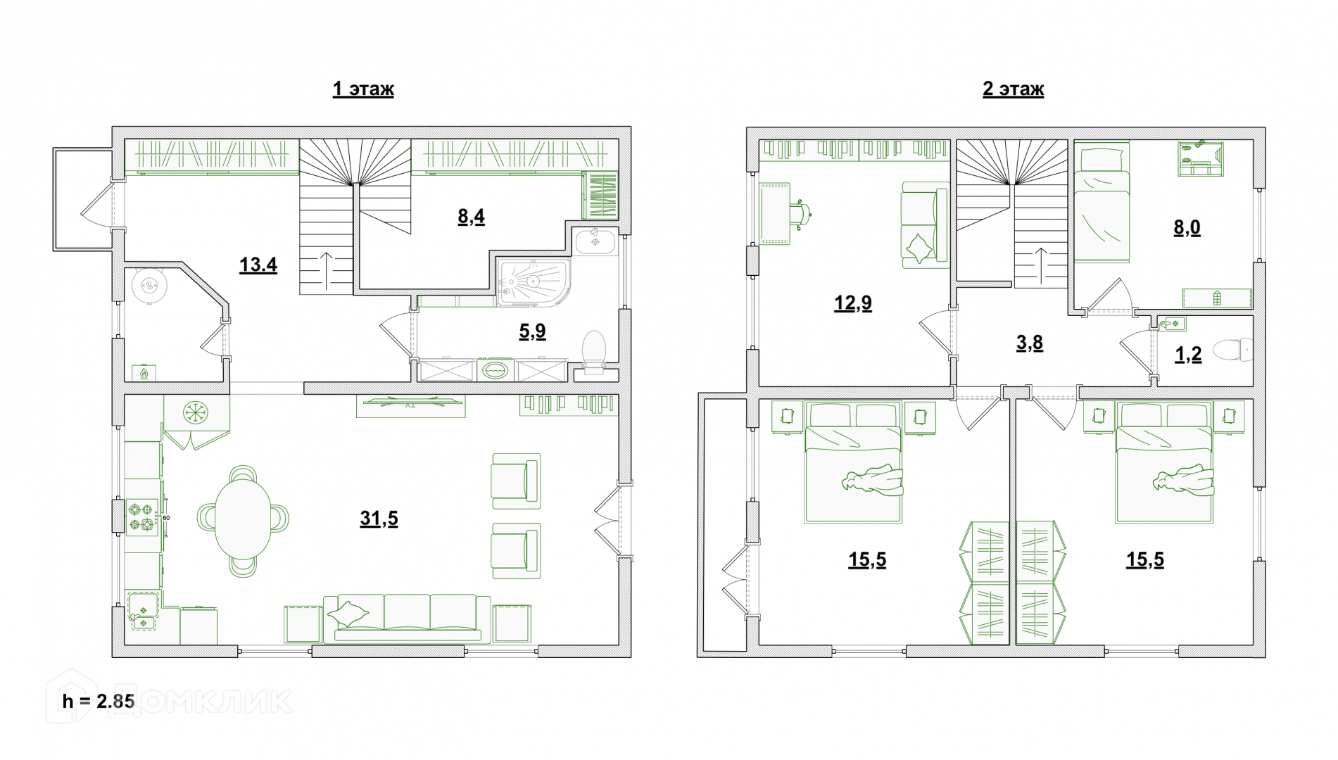 ИДЕАЛЬНО ДЛЯ СЕМЬИ 4-5 ЧЕЛОВЕК: 4 СПАЛЬНИ, просторная кухня-гостиная, большая гардеробная.