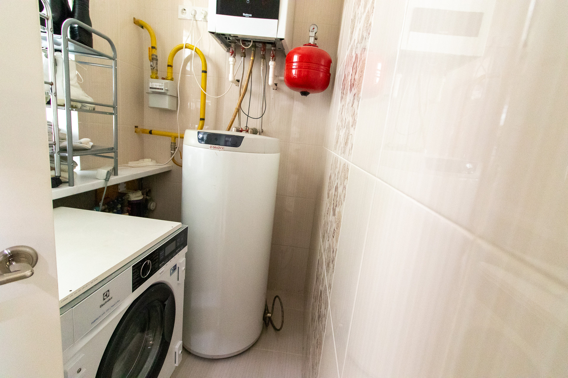 На первом этаже расположены гостиная площадью 31,5 кв.м. с кухней 11,4 кв.м., туалет, ванная комната, а также техническое помещение и кладовая. На втором этаже находятся три комнаты (по 15,5 кв.м., 15,5 кв.м. и 12,9 кв.м.), большой совмещенный санузел 11,3 кв.м. и балкон 11 кв.м. Система отопления представлена газовым котлом.