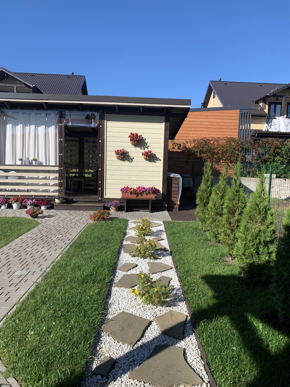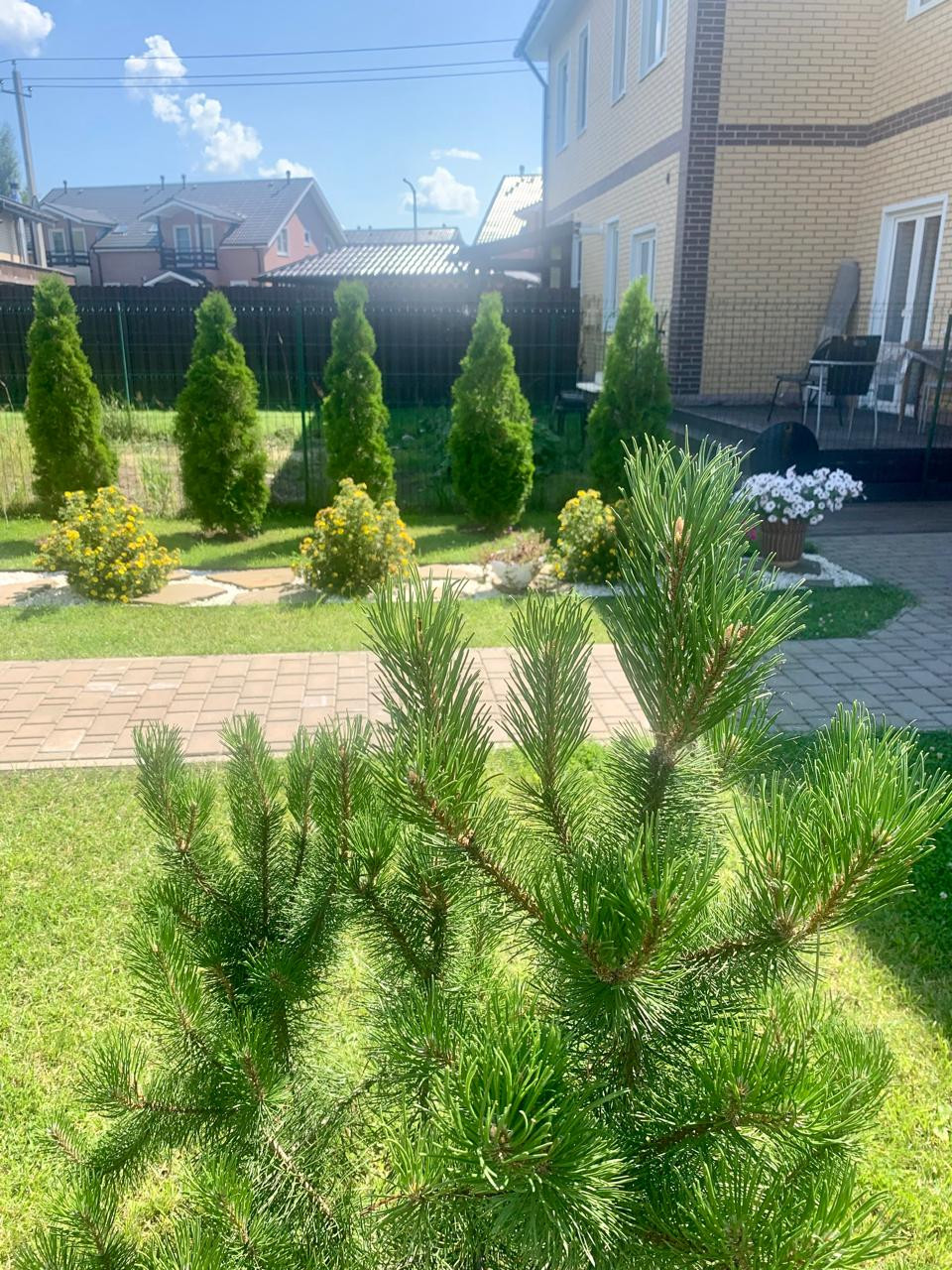 Ухоженный и благоустроенный участок с ландшафтным дизайном 3,5 сотки. Газоны с дренажной системой, ливневка, дорожки из тротуарной плитки, отмостка вокруг дома, парковка для автомобиля, ворота, забор, калитка. Плодовые деревья - 3 яблони, 2 черешни, смородина, клубника и земляника, туи, розы, гортензии, горные сосны, спиреи, барбарисы, хосты.
