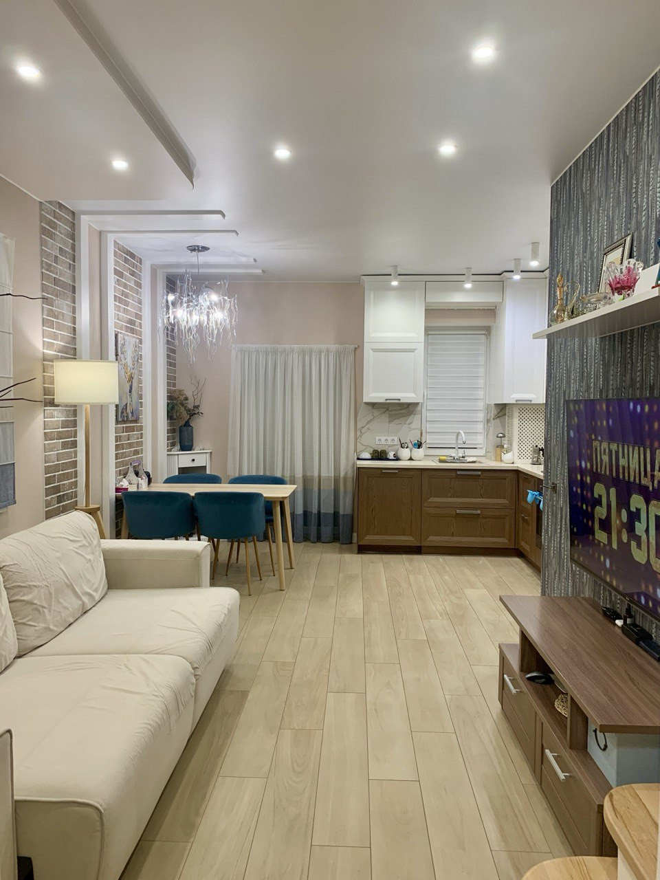 Таунхаус - 73 кв. м., ремонт сделан по дизайнпроекту. На 1-ом этаже: кухня-гостиная 25 кв.м. с выходом во внутренний дворик, санузел с местами хранения, кладовая (можно использовать как гардеробную), прихожая и пристроен тамбур 7,4 кв.м. На втором этаже: две изолированные комнаты 12 кв.м. + 11 кв.м., санузел с душевой. В доме подведены все коммуникации: центральное водоснабжение, центральная канализация, электричество, магистральный газ. Система отопления - газовый котел, во всем доме теплые полы. Есть большой чердак с оборудованными полами. Фундамент - плита, стены - газобетон с утеплением, крыша - металлочерепица.