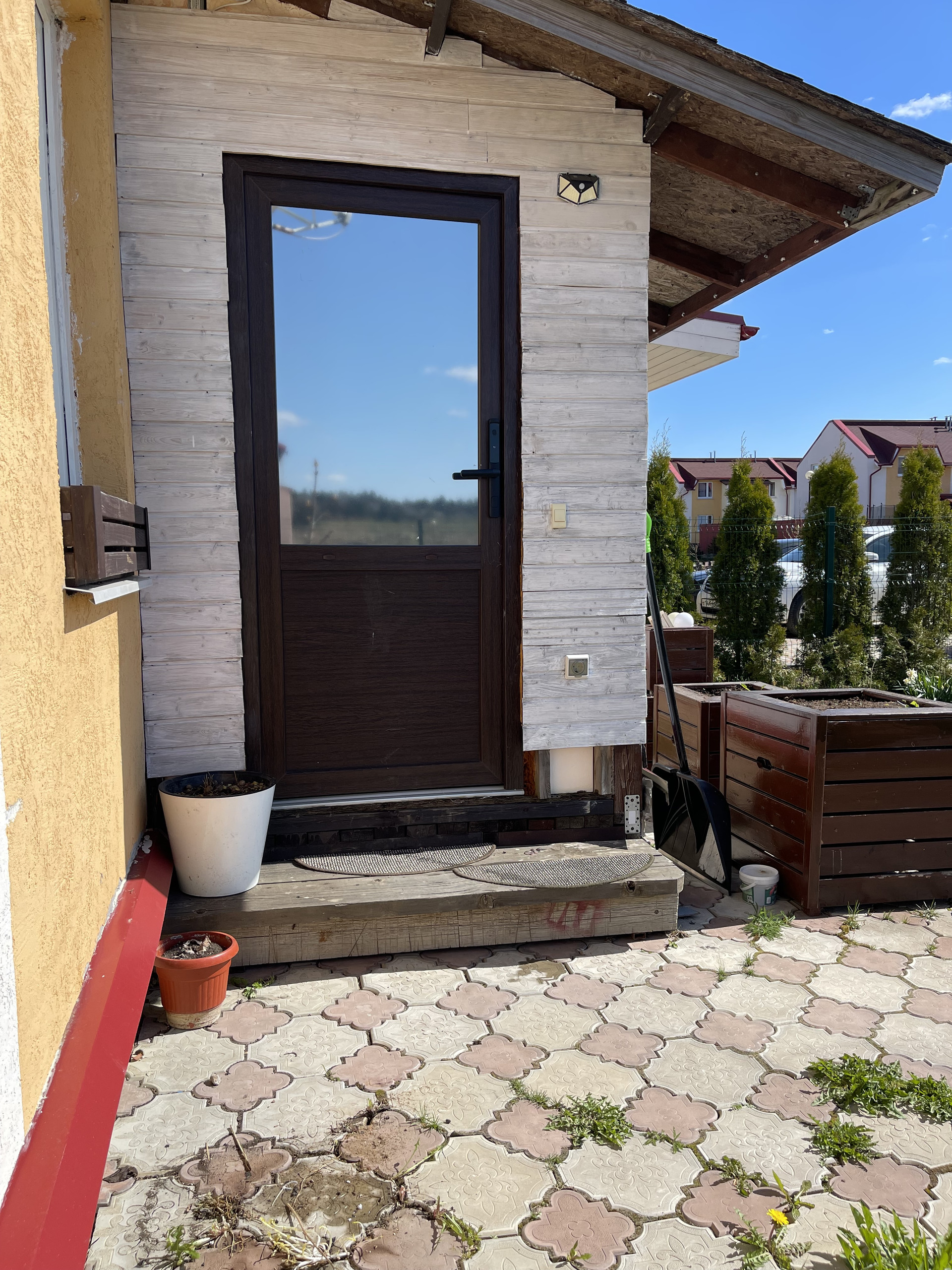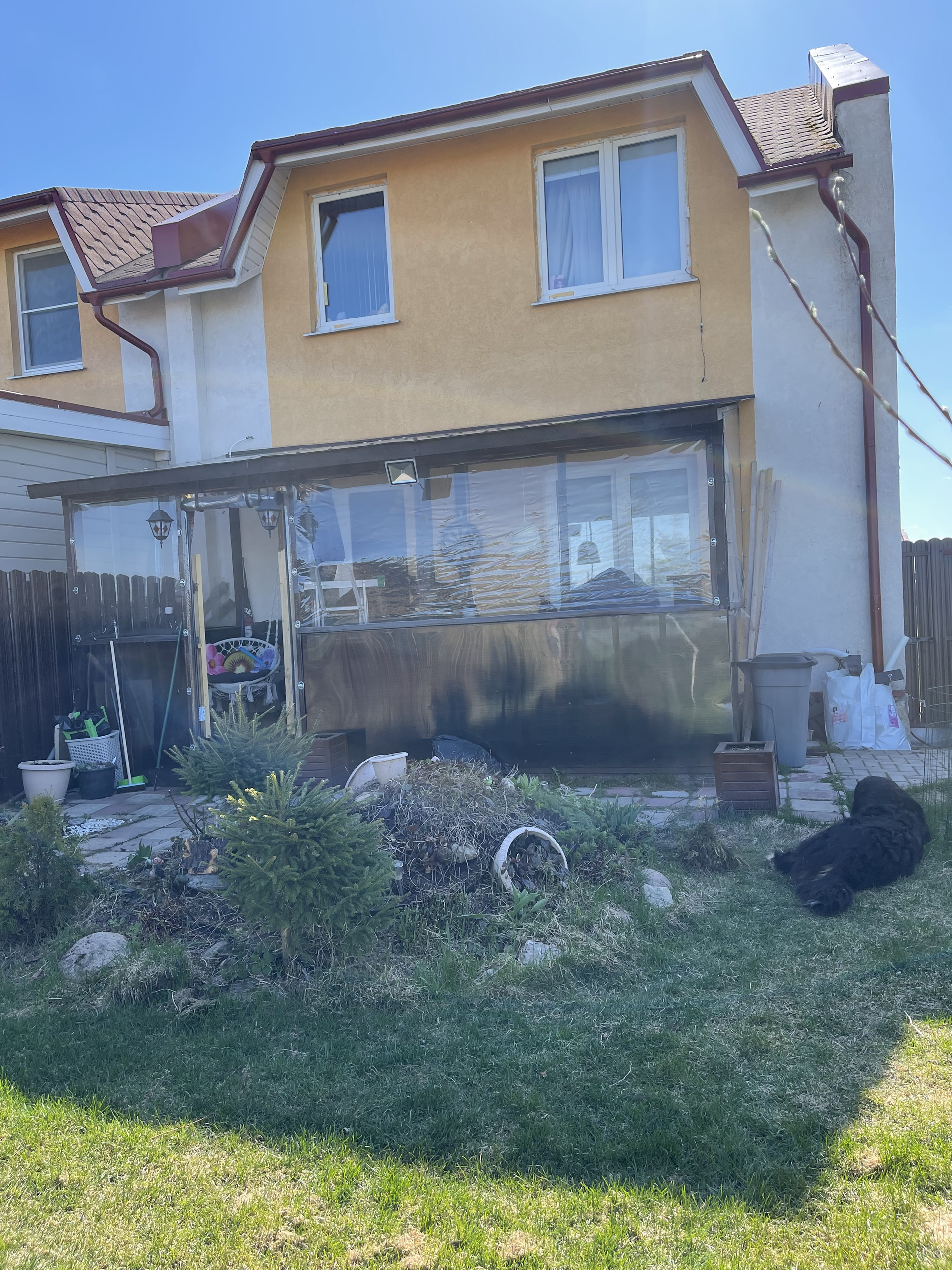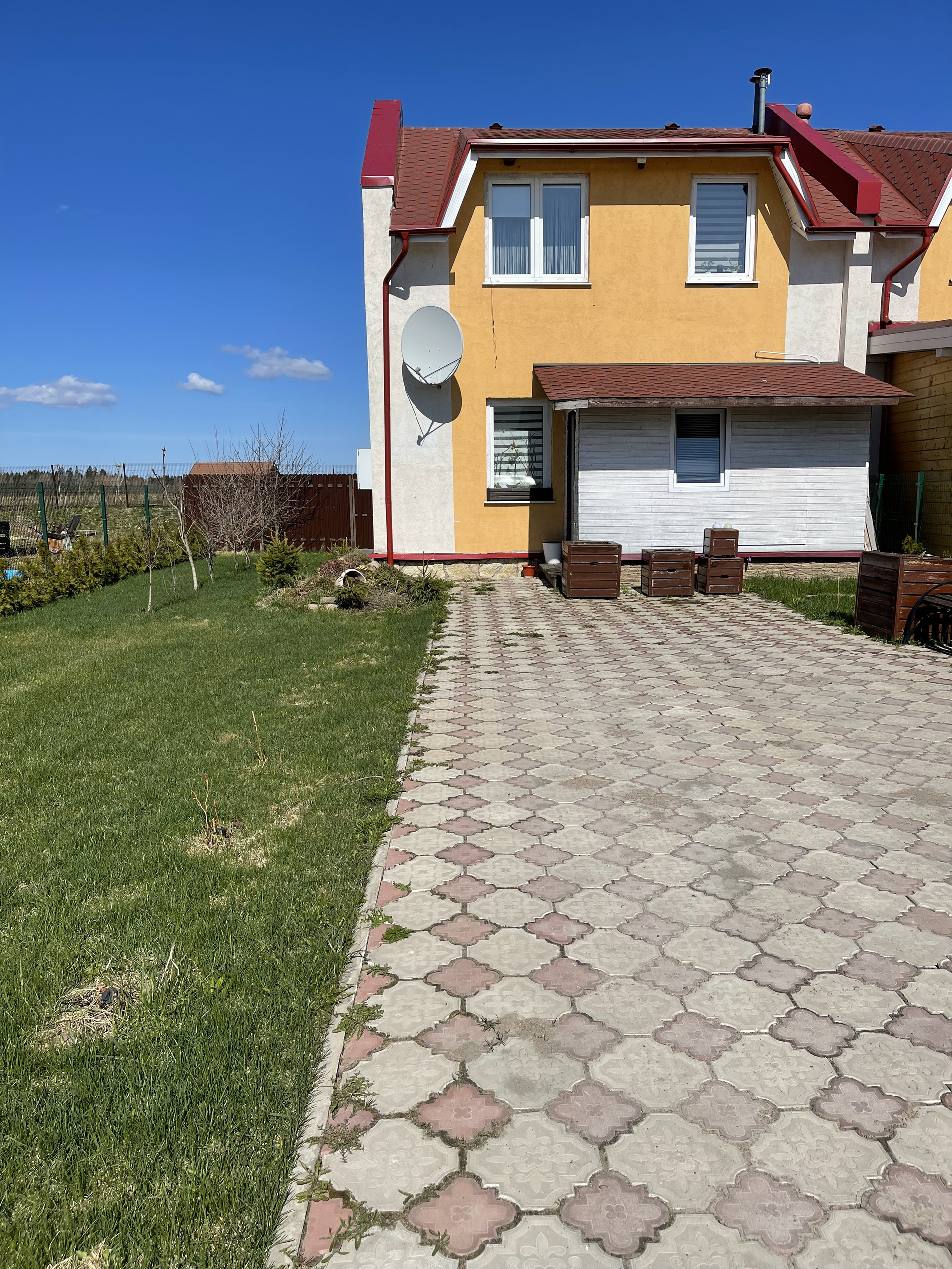Во всех помещениях имеется натяжной потолок, установлены стеклопакеты, установлен бойлер на 100 л. По периметру участка сделан забор с воротами. Также возле дома есть в собственности придомовой участок общей площадью 5, 2 сот., на котором уложен газон, посажены деревья, кусты, цветочные горки, тротуарная плитка под машину и на заднем дворе. Торцевое расположение, один замечательный сосед, своя земля с трех сторон. Сквозная планировка со вторым выходом из гостиной на террасу, ведущий на летнюю веранду. Есть место для барбекю и бассейна. Очень солнечный и теплый дом.