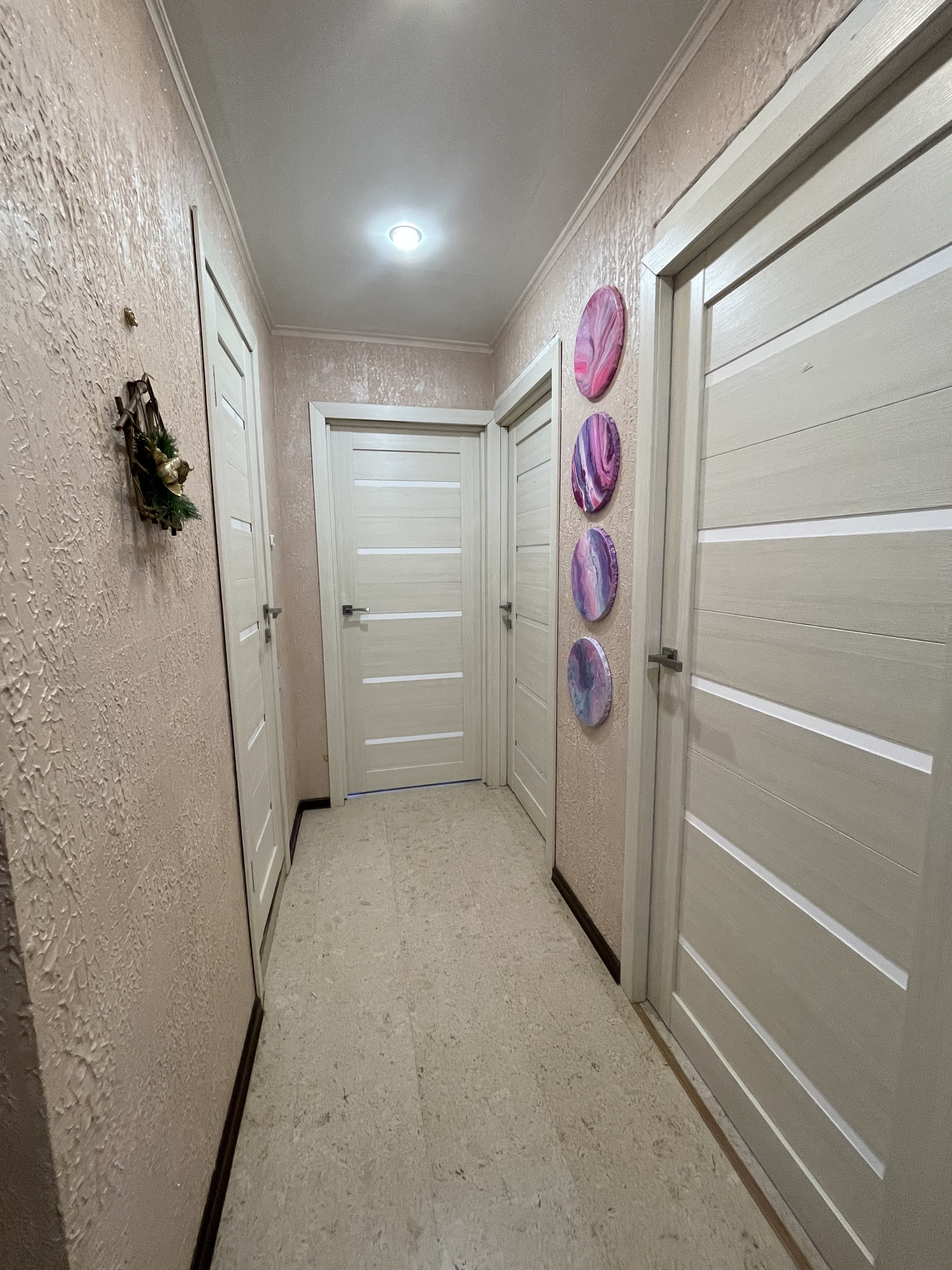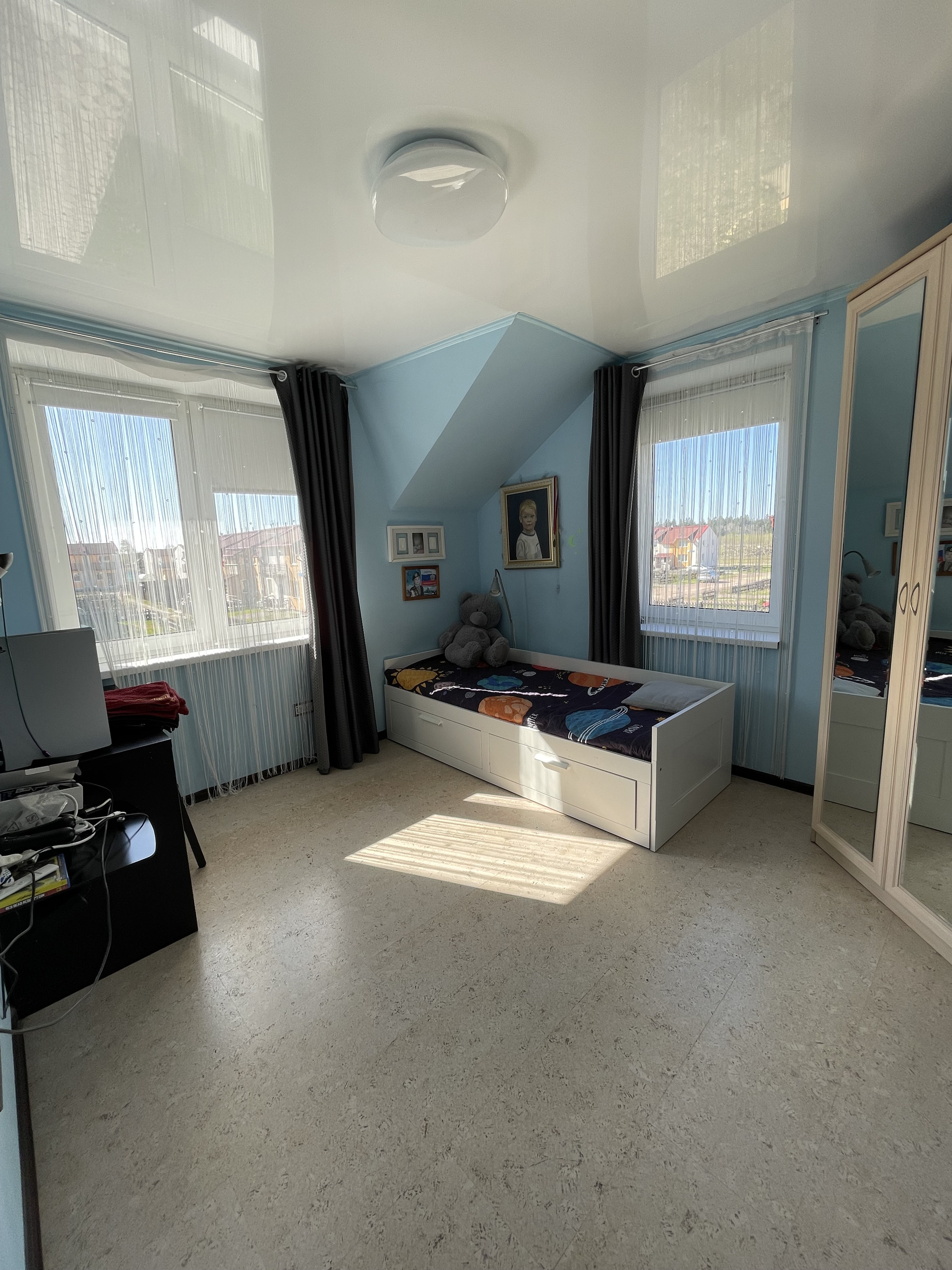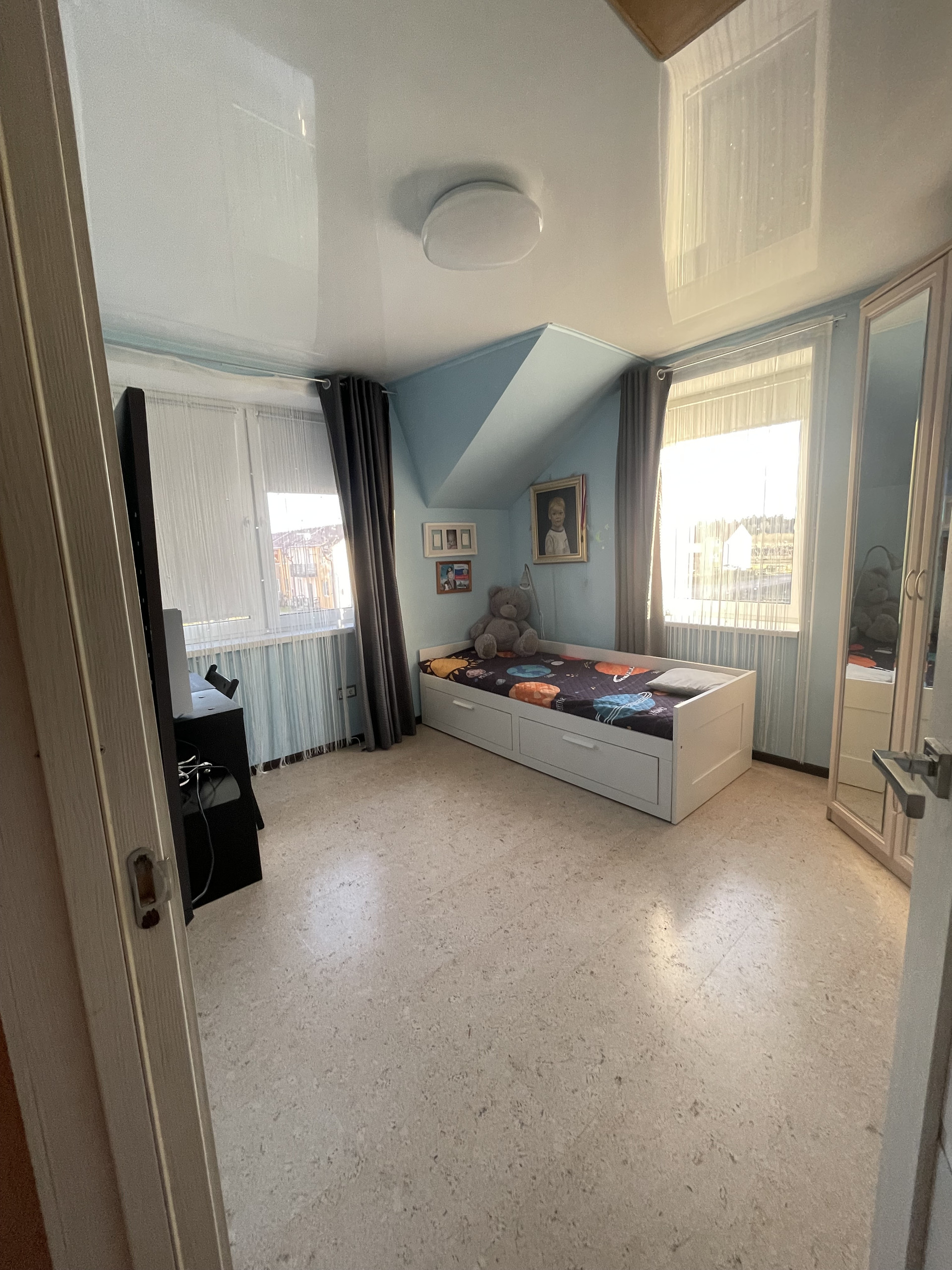 Во всех помещениях имеется натяжной потолок, установлены стеклопакеты, установлен бойлер на 100 л. По периметру участка сделан забор с воротами. Также возле дома есть в собственности придомовой участок общей площадью 5, 2 сот., на котором уложен газон, посажены деревья, кусты, цветочные горки, тротуарная плитка под машину и на заднем дворе. Торцевое расположение, один замечательный сосед, своя земля с трех сторон. Сквозная планировка со вторым выходом из гостиной на террасу, ведущий на летнюю веранду. Есть место для барбекю и бассейна. Очень солнечный и теплый дом.