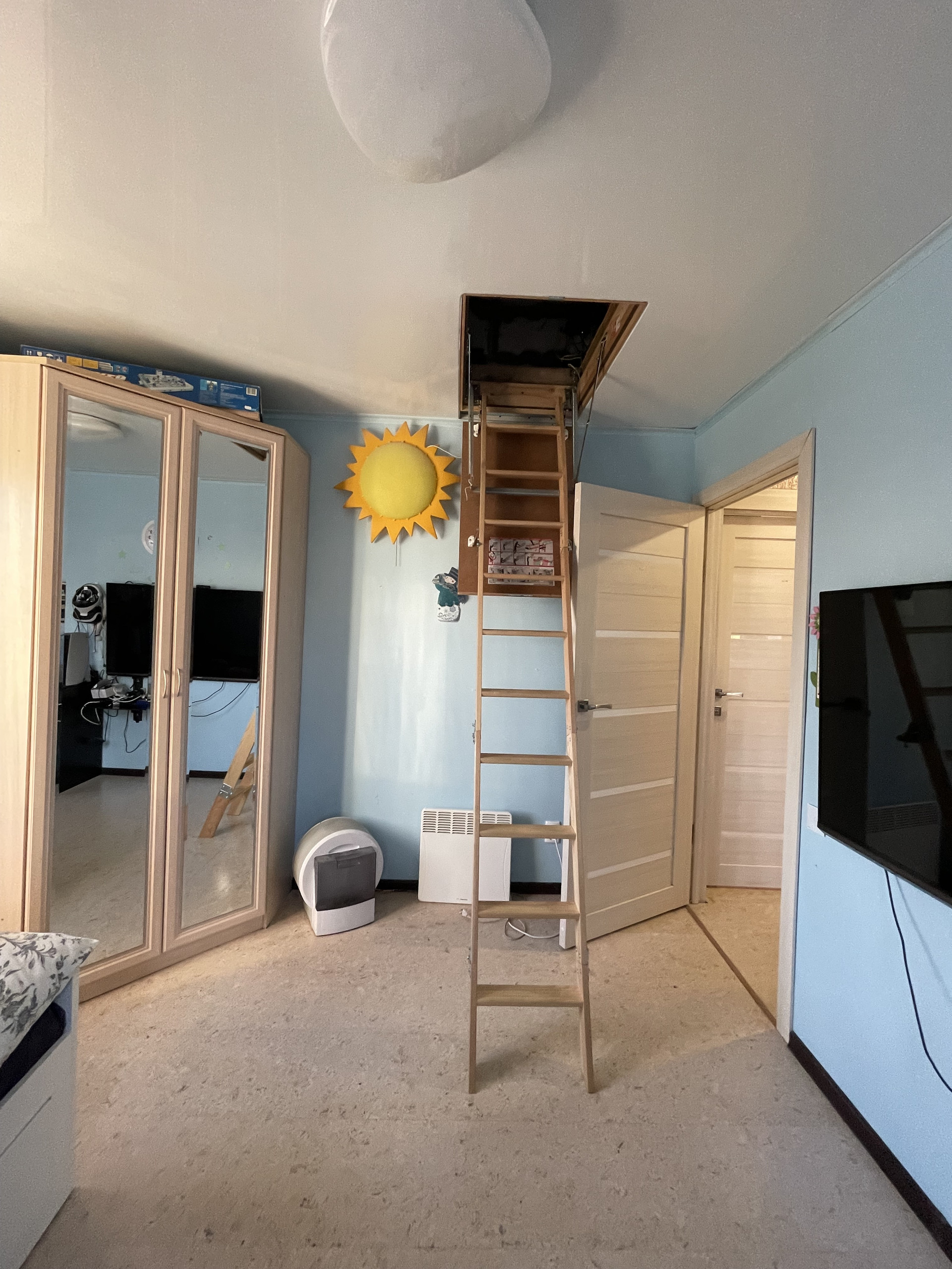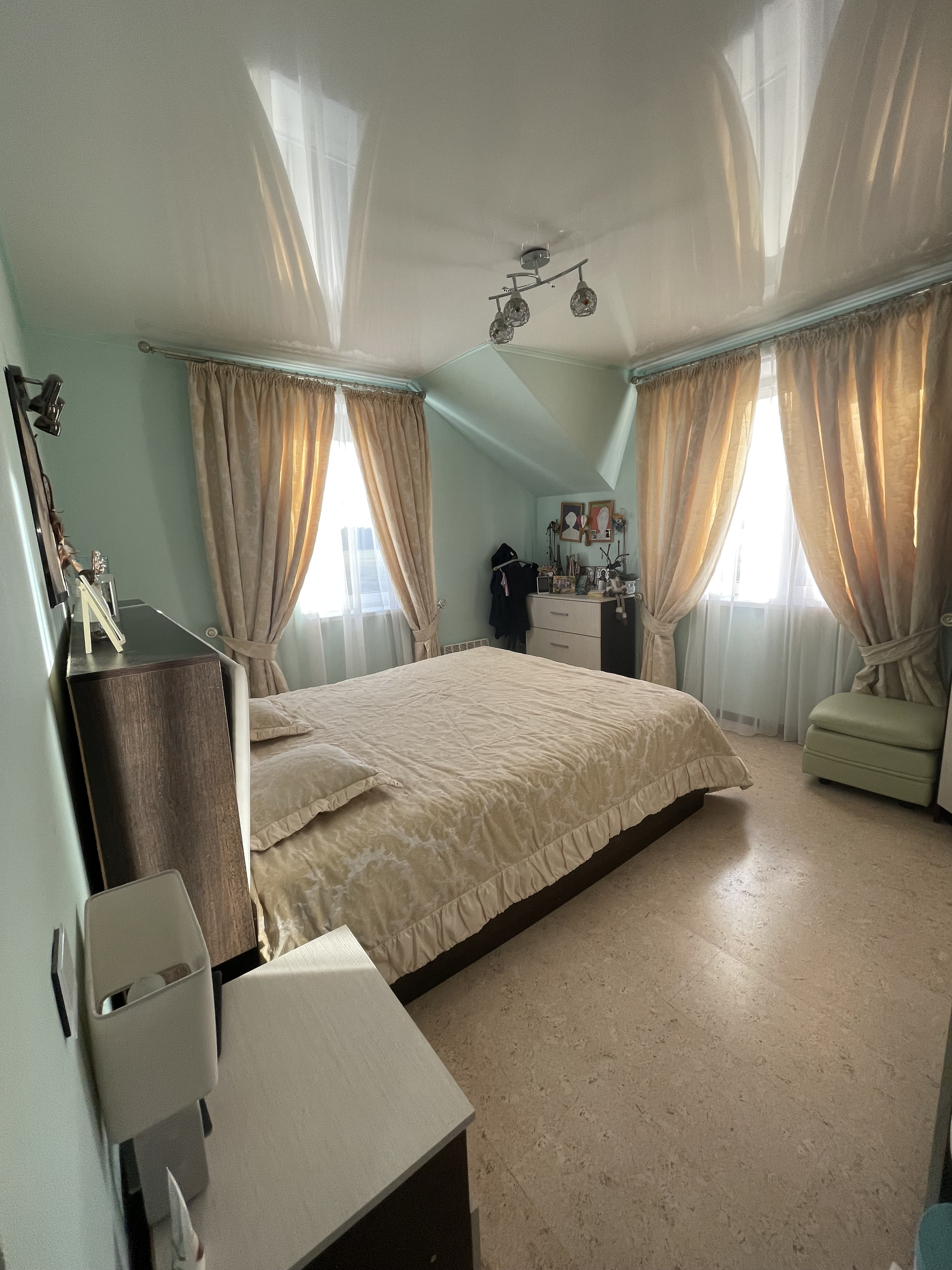 На втором этаже 3 спальни и санузел с душем. Пол на втором этаже выложен современным пробковым покрытием, которое сохраняет тепло. Есть выход на чердак.