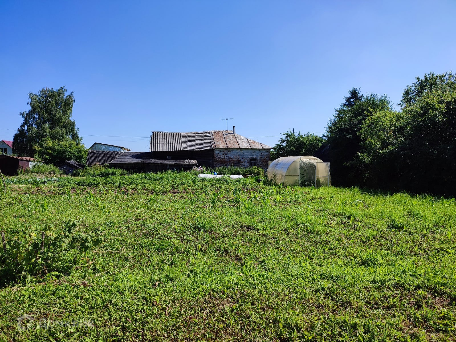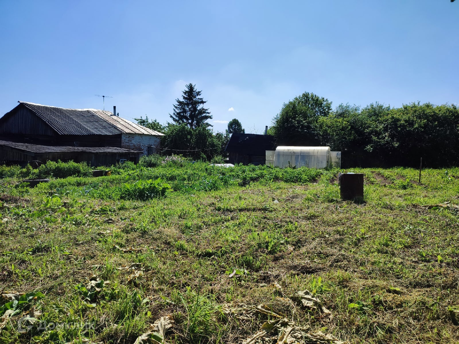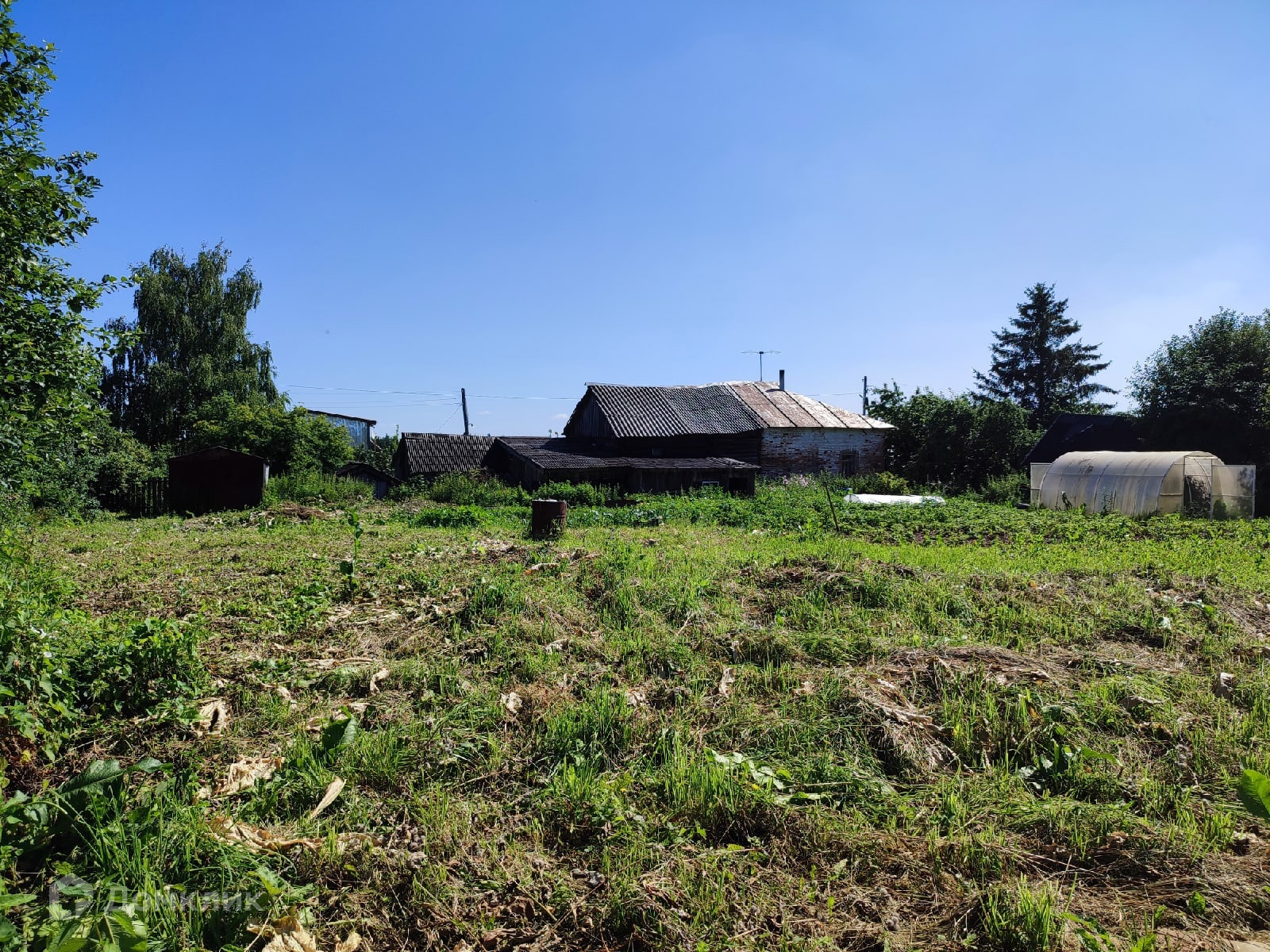 Все постройки стоят вдоль дороги, основной массив участка свободен и позволяет вести новое строительство рядом с существующими строениями.