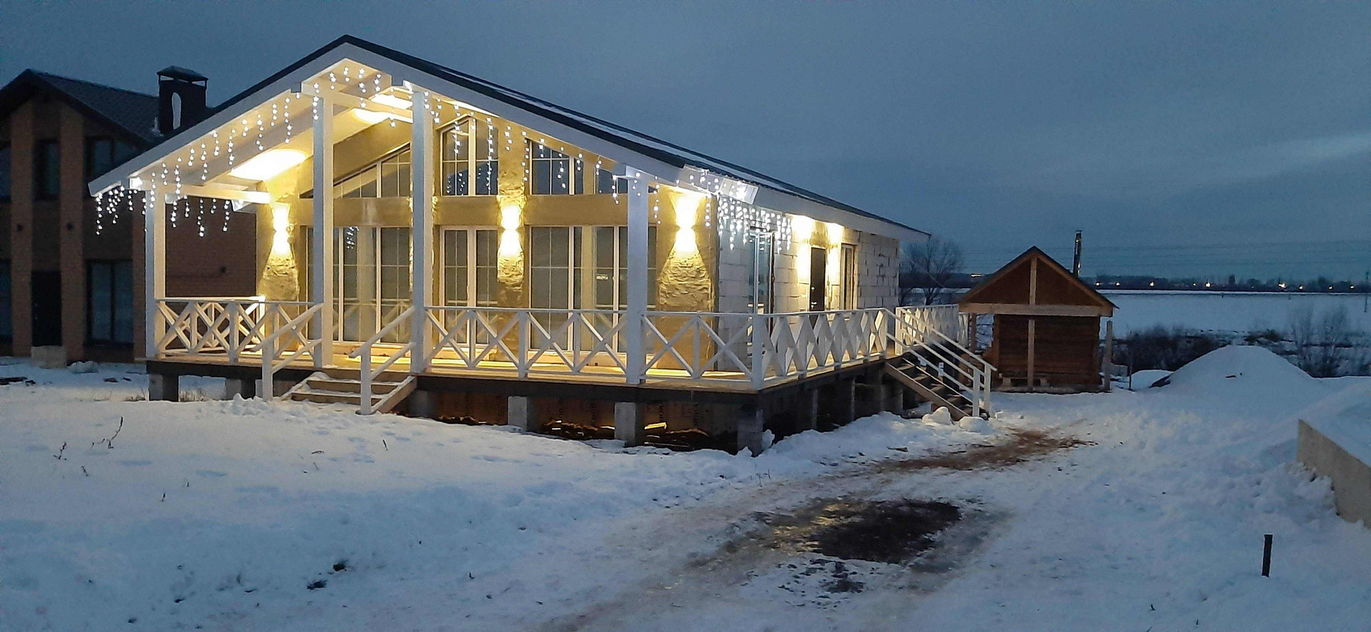Построен из газобетона ( зимой тепло, летом прохладно)