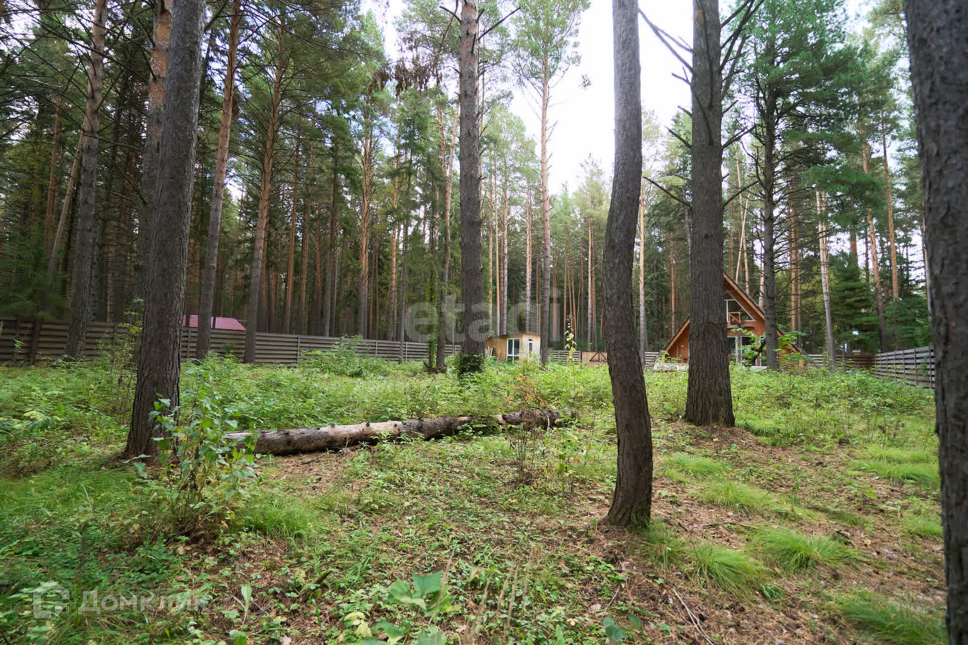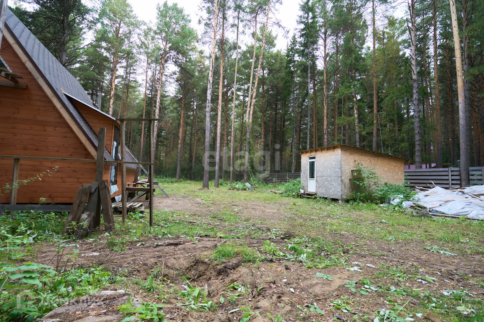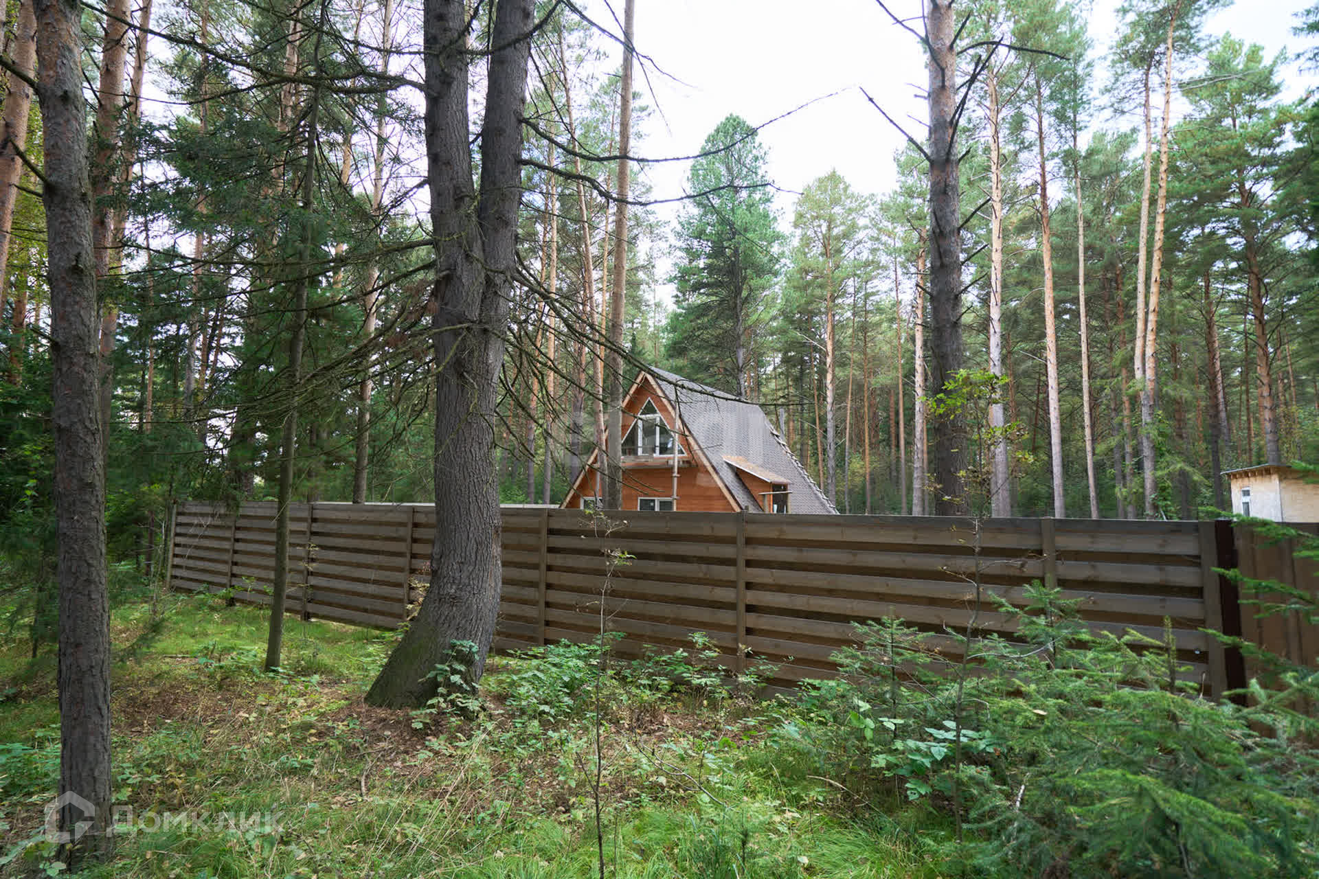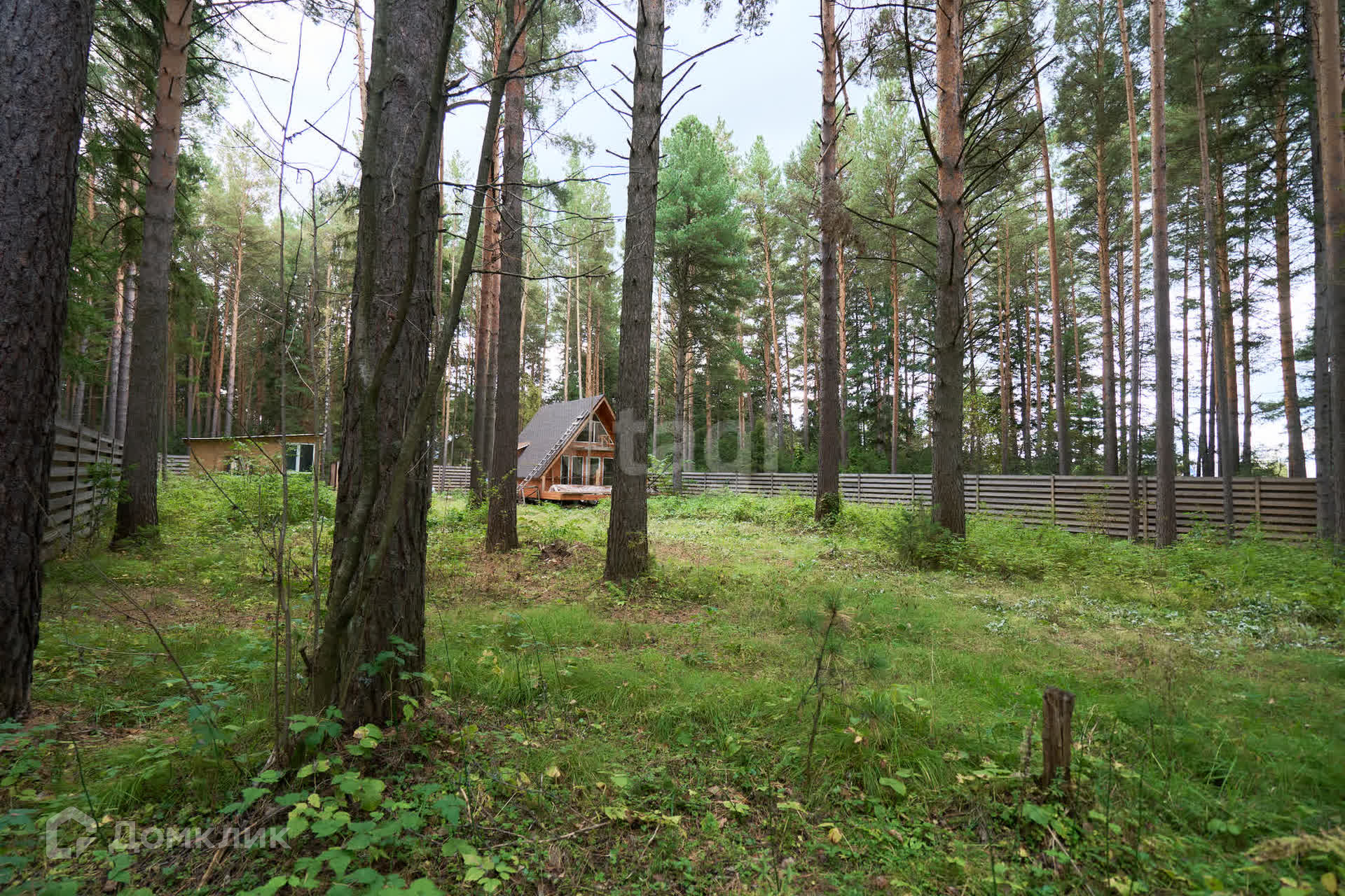 Забор возведен по всему периметру. На заднем дворе имеется калитка для выхода в лес.
