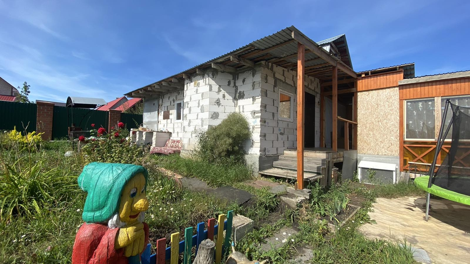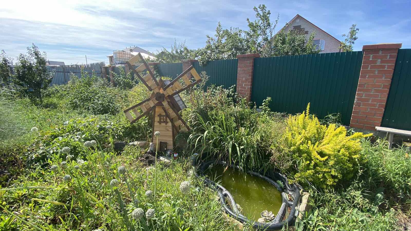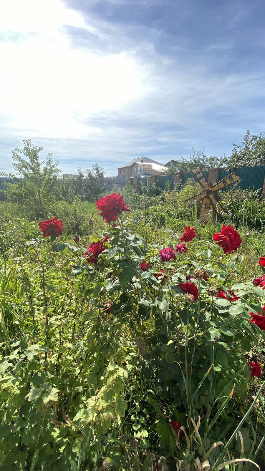 Общая площадь участка 12 соток. Из посадок- 2 груши, 3 яблони, абрикос, слива, крыжовник, малина, клубника, смородина, ирга, облепиха, вишня, черешня.