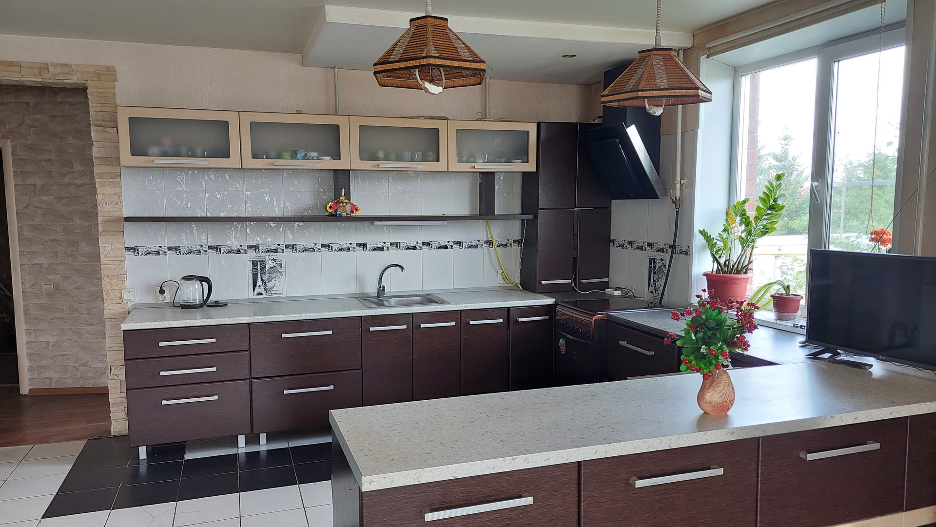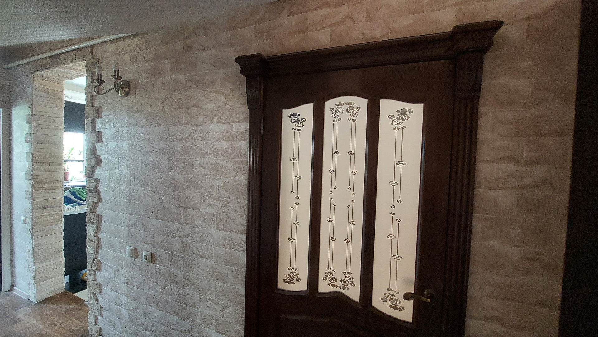 Стены: газобетонный блок и велюровый кирпич.