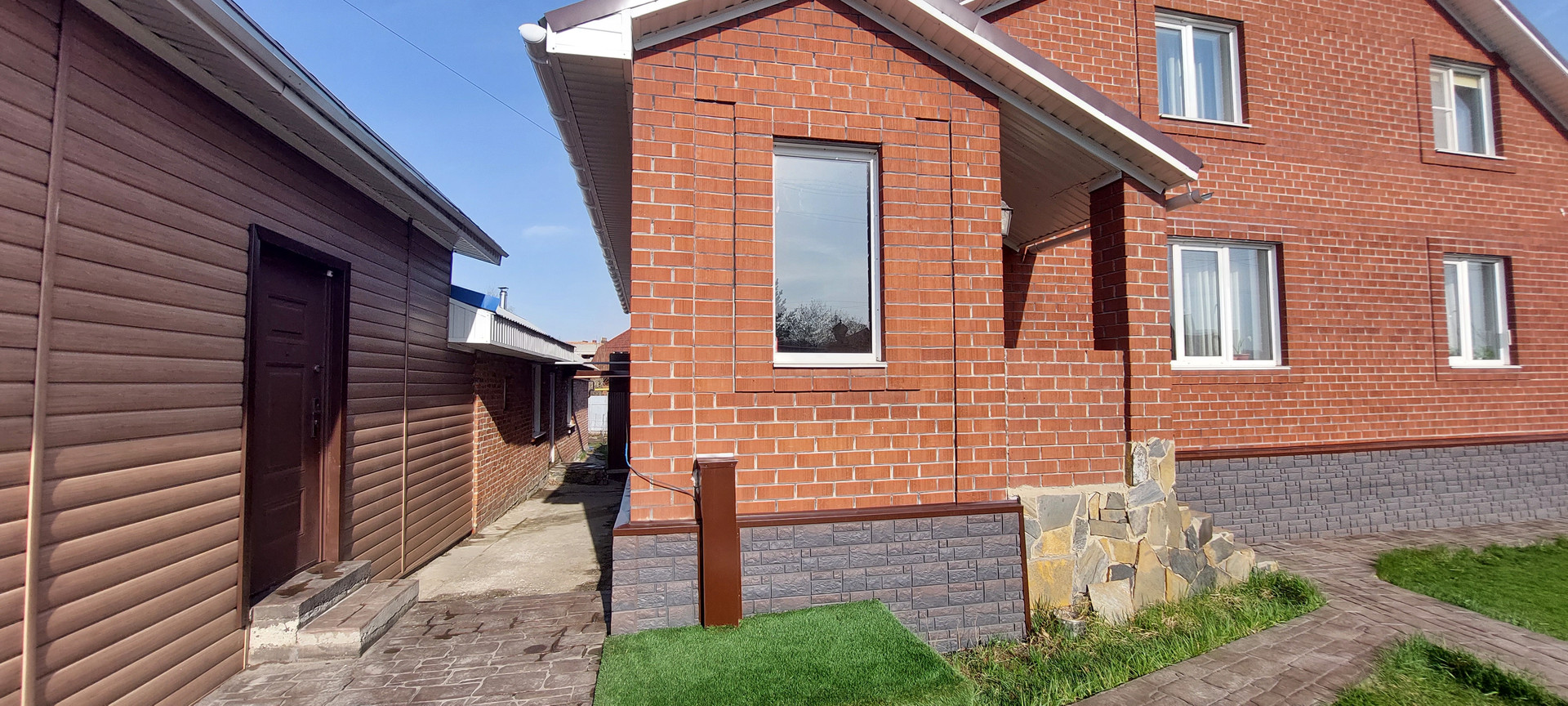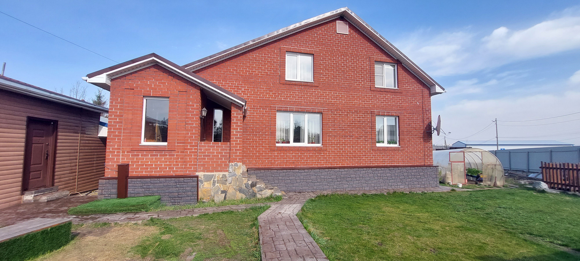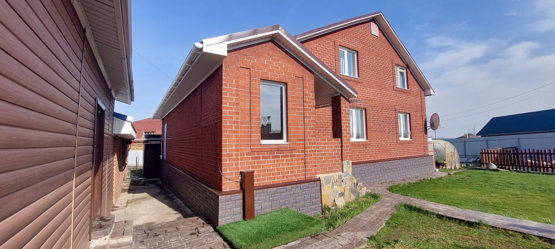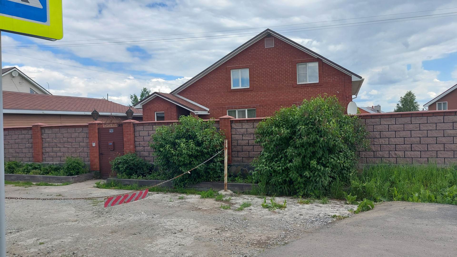 Территория огорожена забором из профнастила и лицевая из декоративного камня, что даёт дополнительную безопасность.