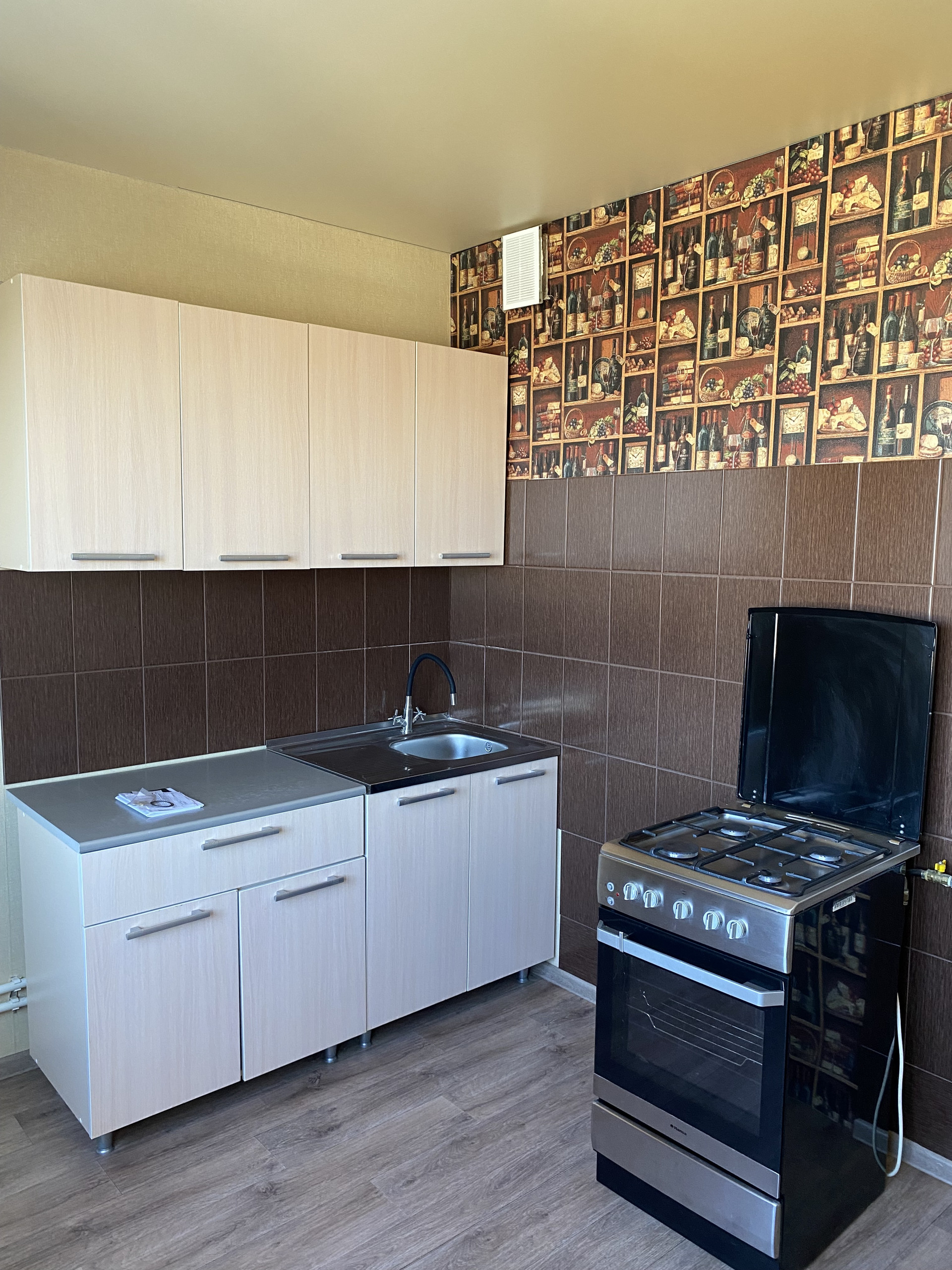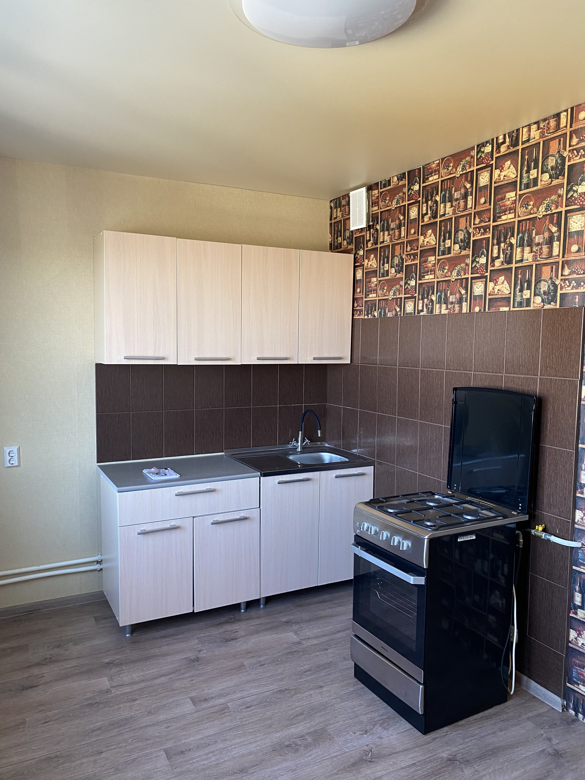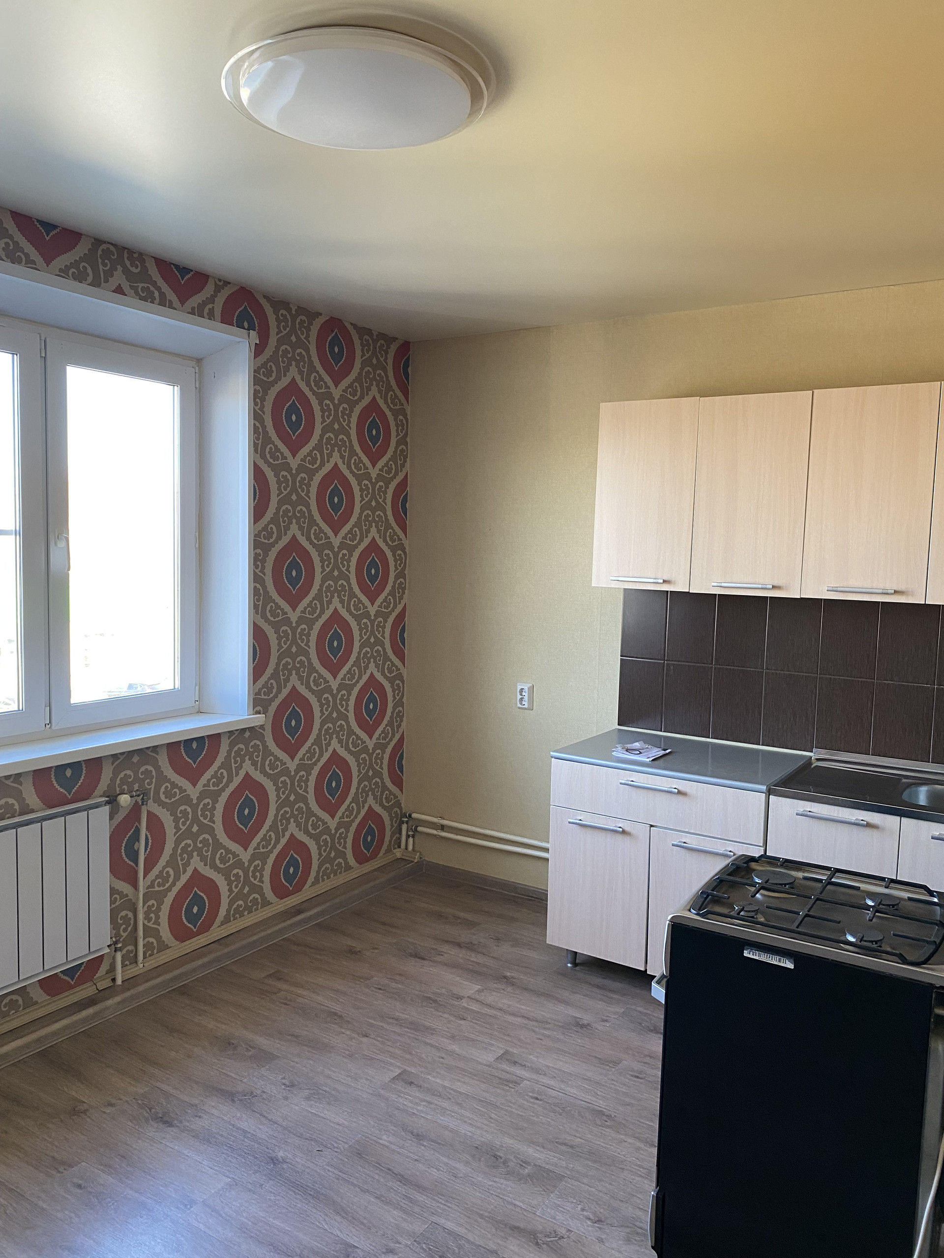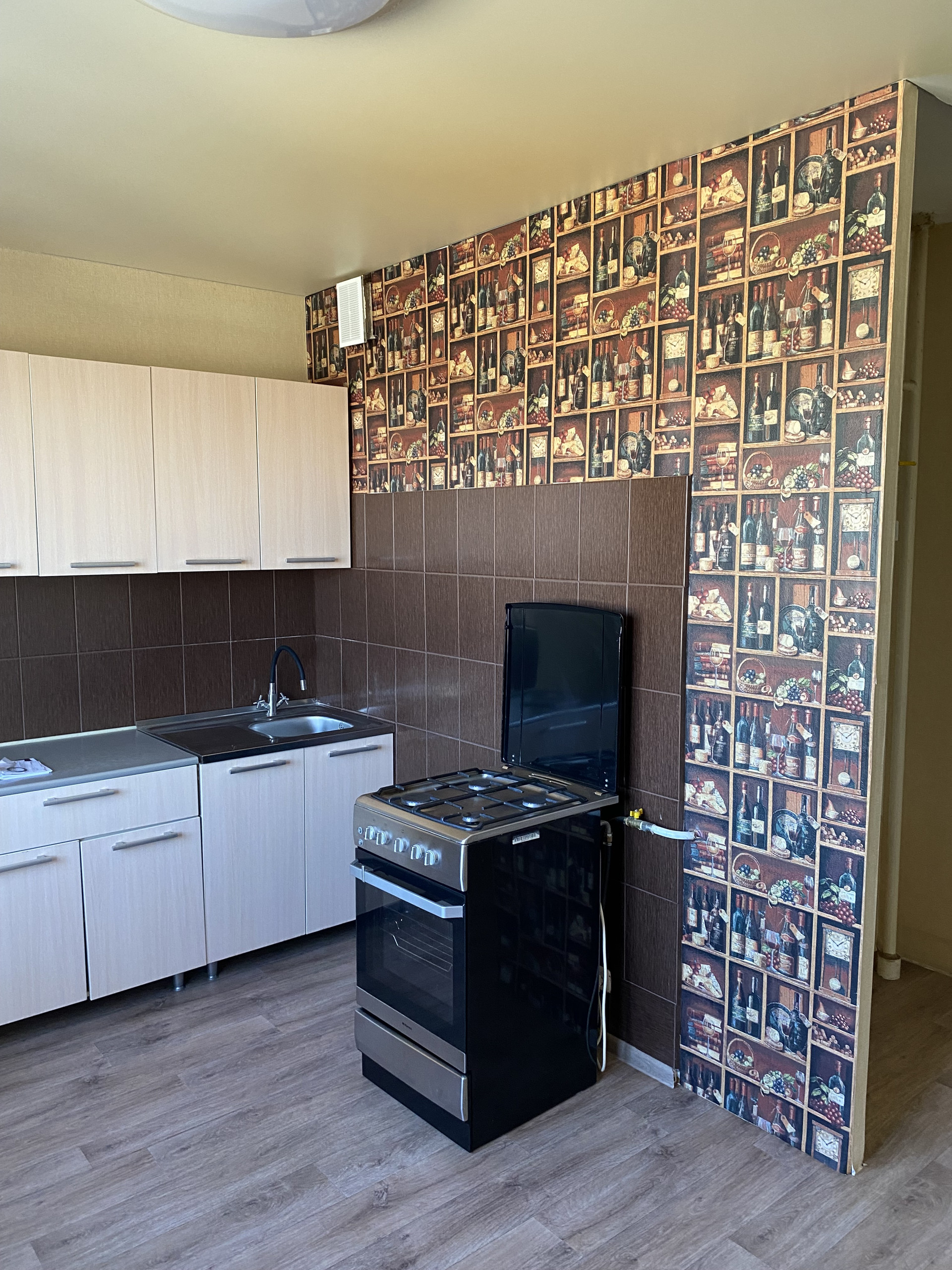 Кухонный гарнитур и газовая плита остаются.