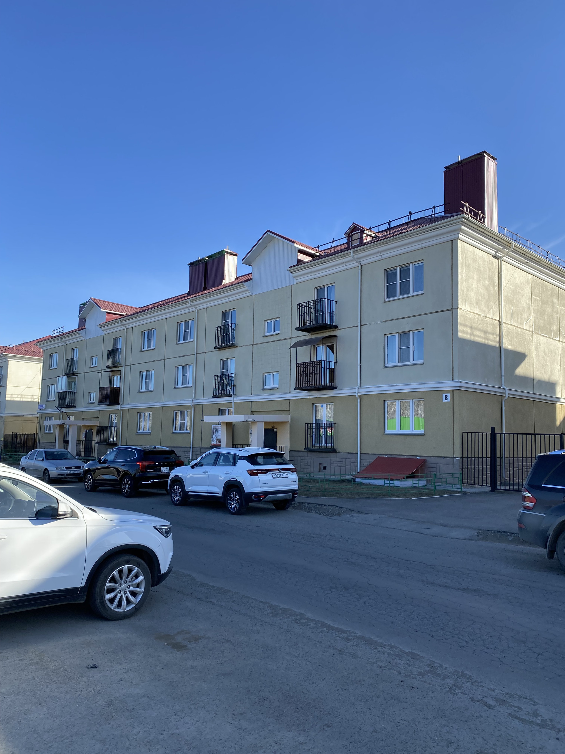 Дом трехэтажный. Чистый подъезд. Домофон. Огороженная территория. Хороший двор: современная детская и спортивная площадки. Нет проблем с парковкой. Хорошие соседи.