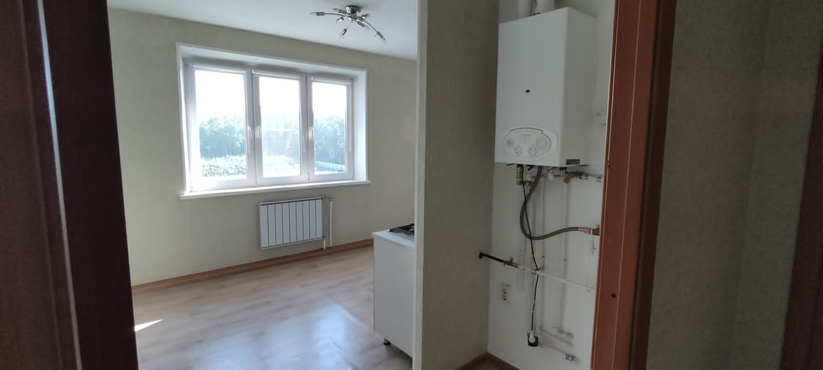 Квартира светлая , зал с панорамным окном в пол (французский балкон) - 24 м2., большая просторная кухня с большим окном  - 15 кв.м., большой холл и коридор. Пластиковые окна,  межкомнатные двери, качественная входная железная дверь. Индивидуальный газовый котел ! Всегда есть тепло и горячая вода. (Невысокие  коммунальные платежи). Газовая плита .