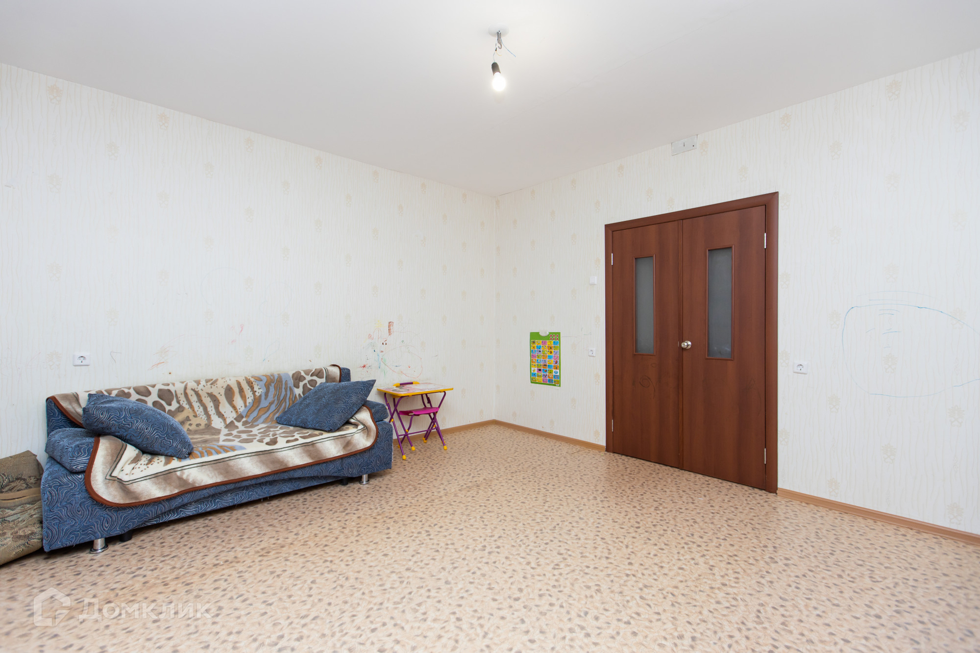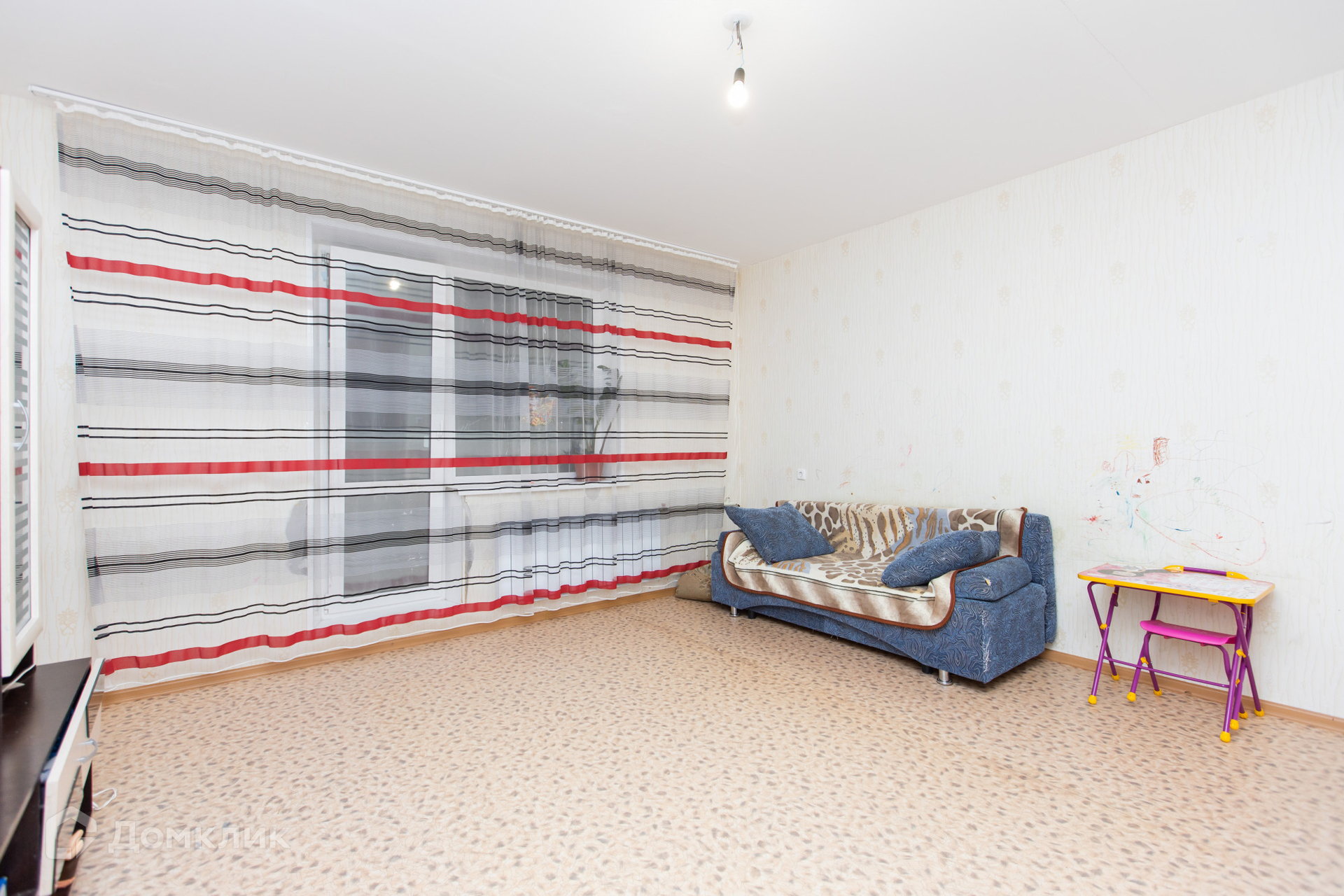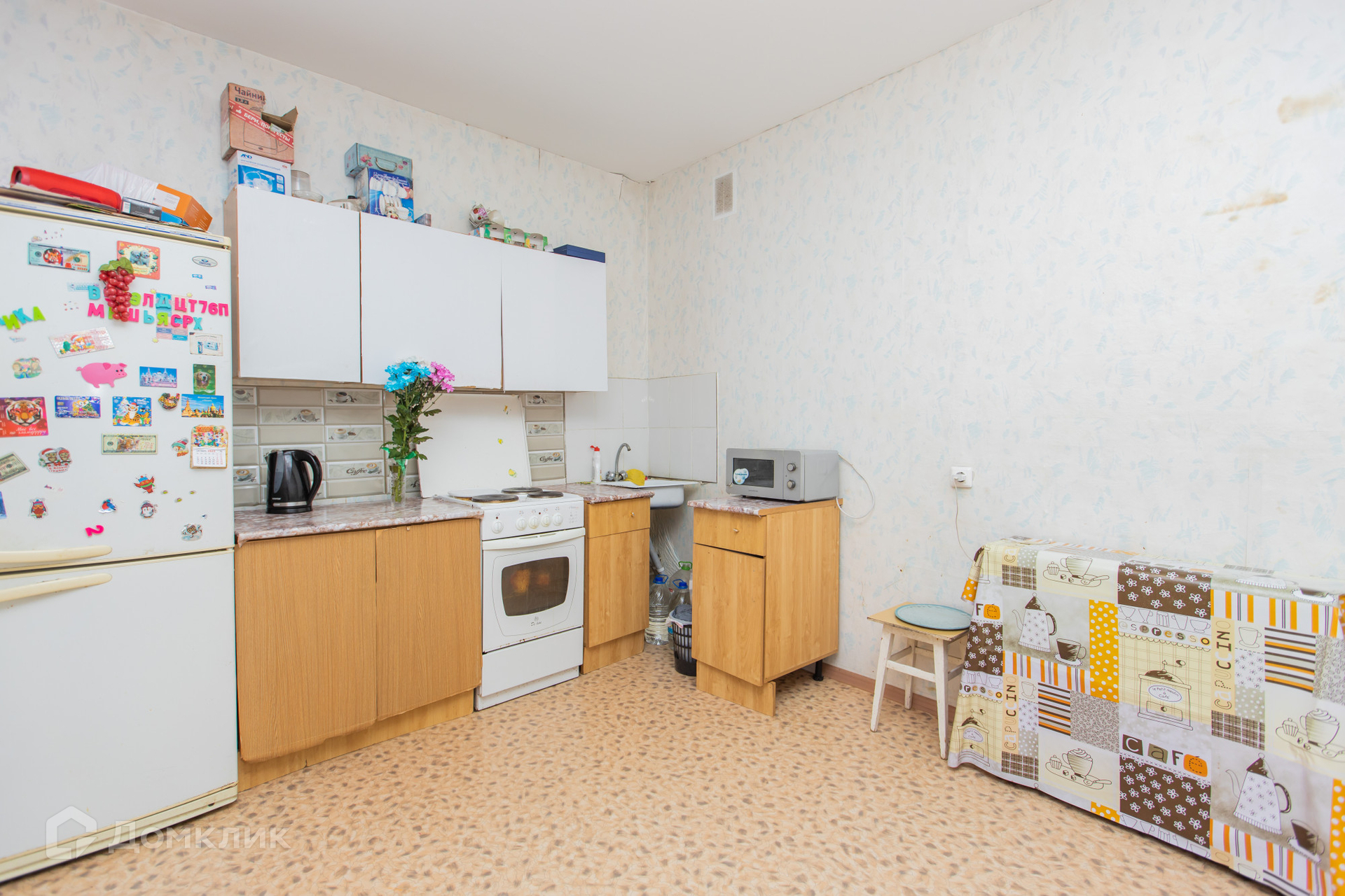 Квартира в нормальном жилом состоянии, можно заехать и жить, но определенного внимания требуют к себе обои.
