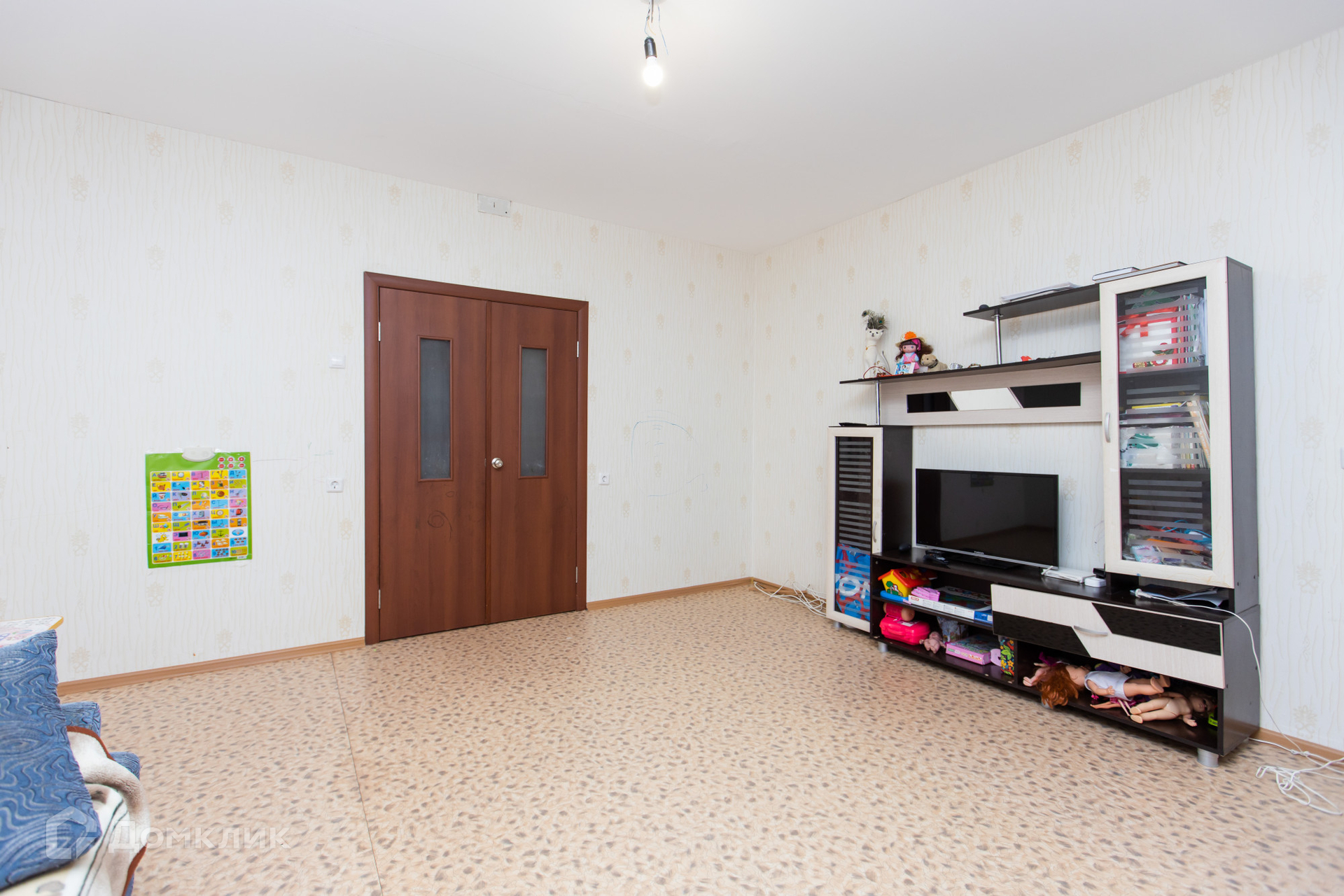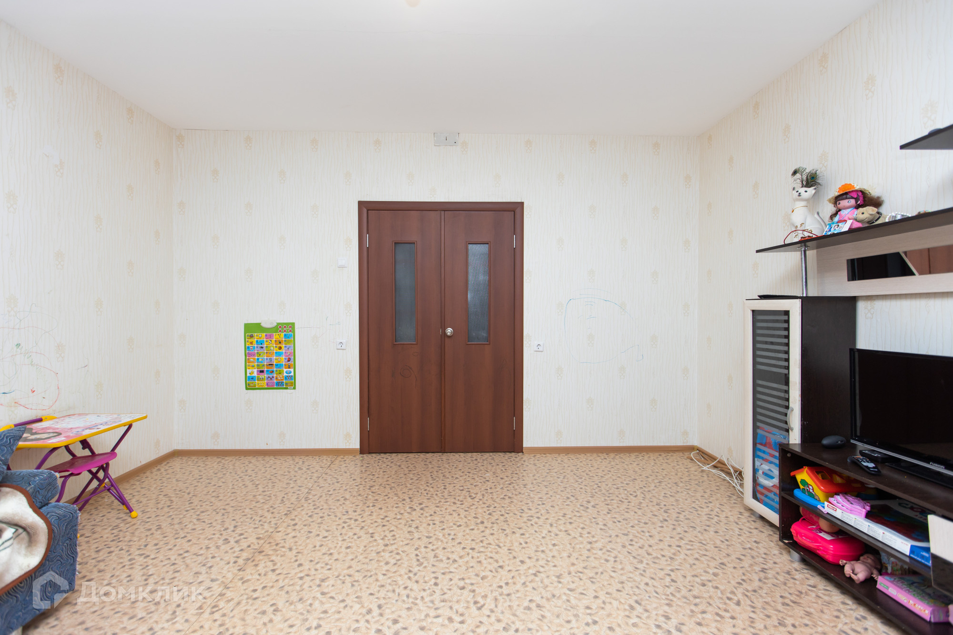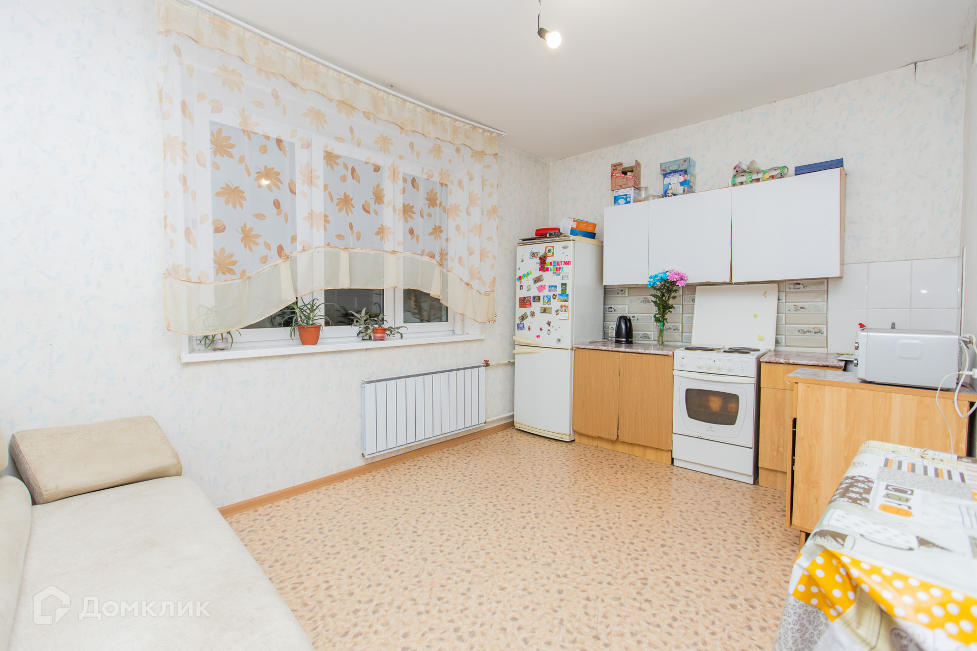 Квартира в нормальном жилом состоянии, можно заехать и жить, но определенного внимания требуют к себе обои.