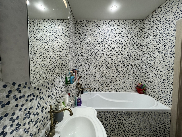 Во всей квартире сделаны натяжные потолки, на полу на кухне и в прихожей-керамогранит, в комнате-ламинат, в санузле-кафель.