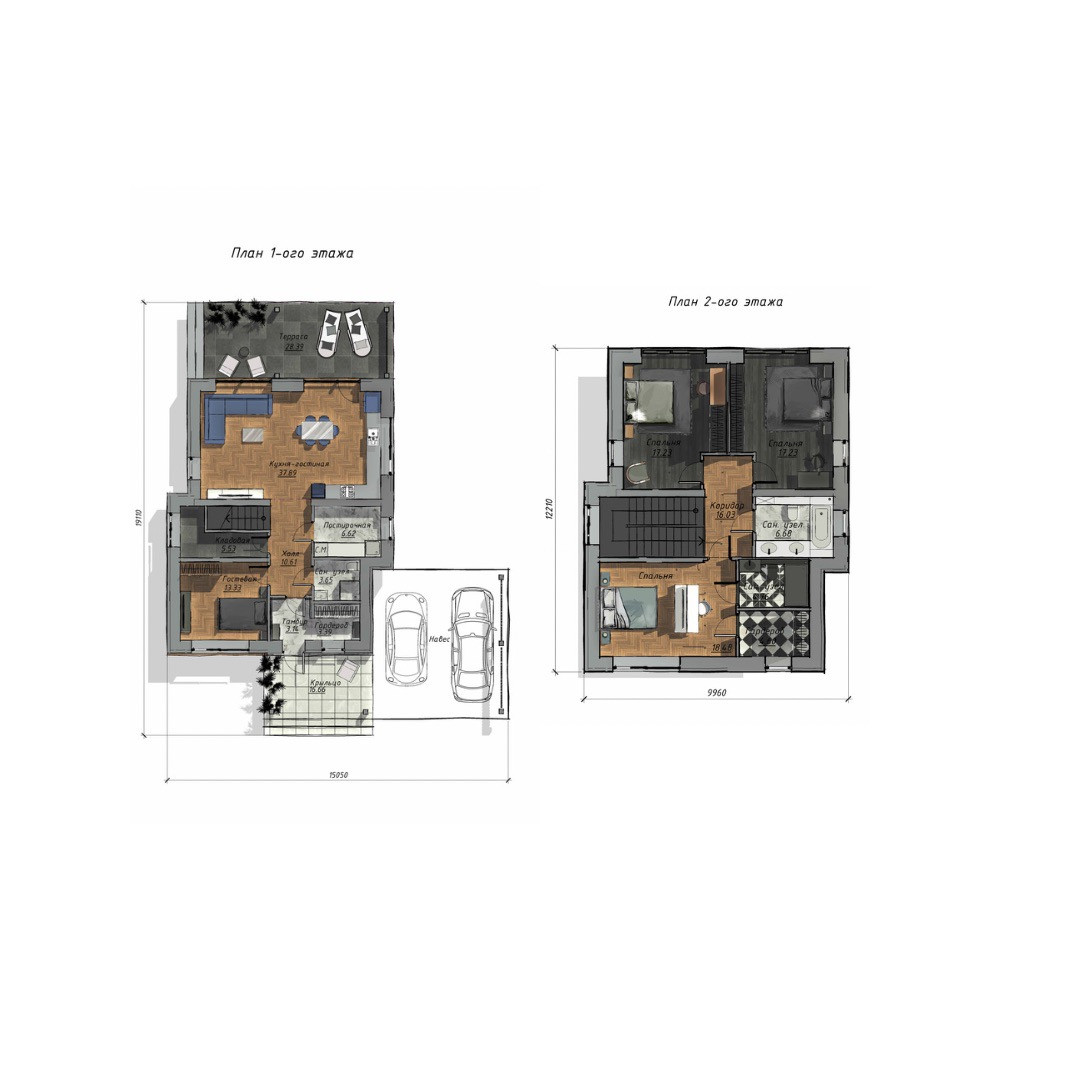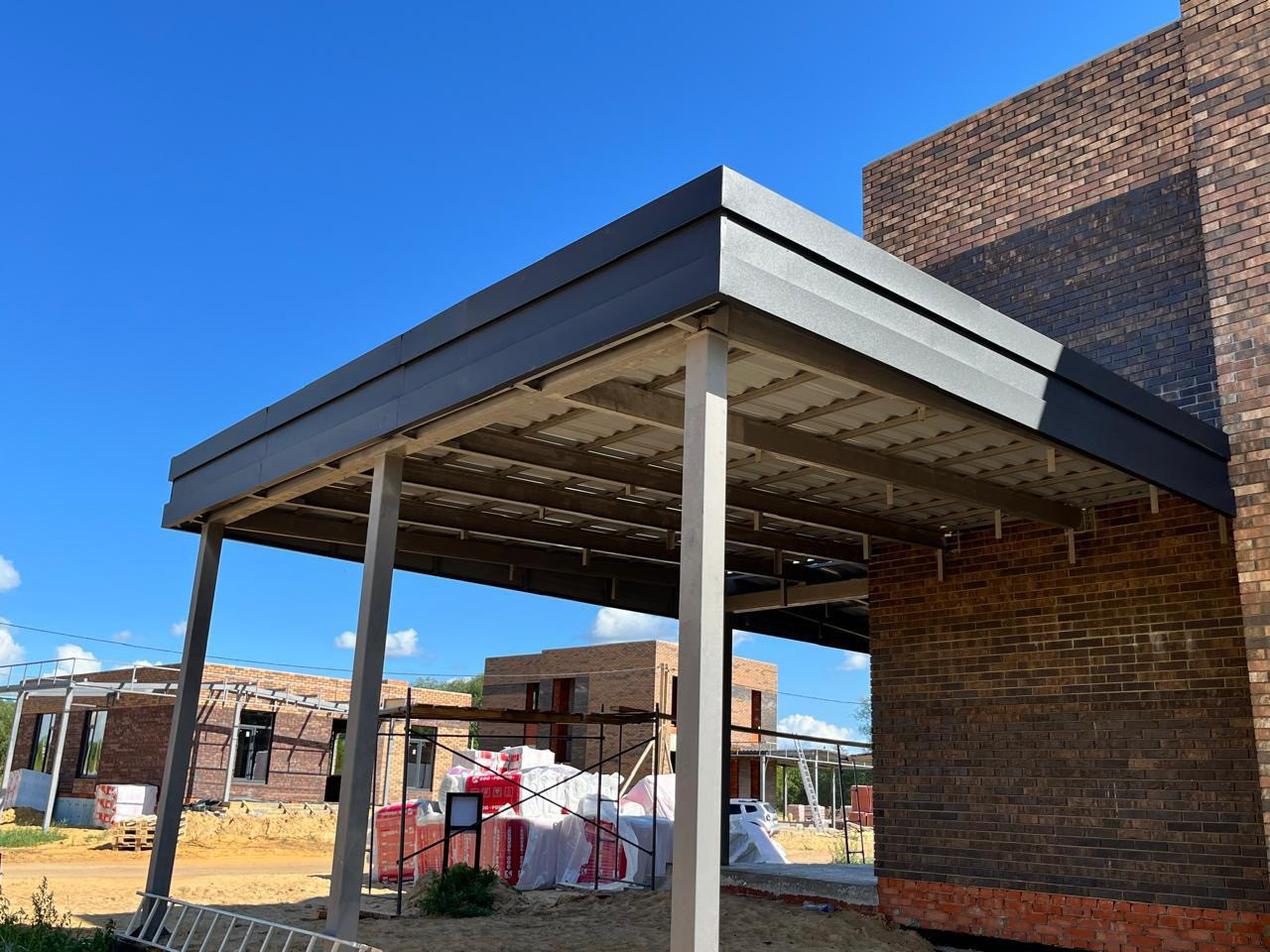 +81,48 навес для 2 авто, терраса и крыльцо.