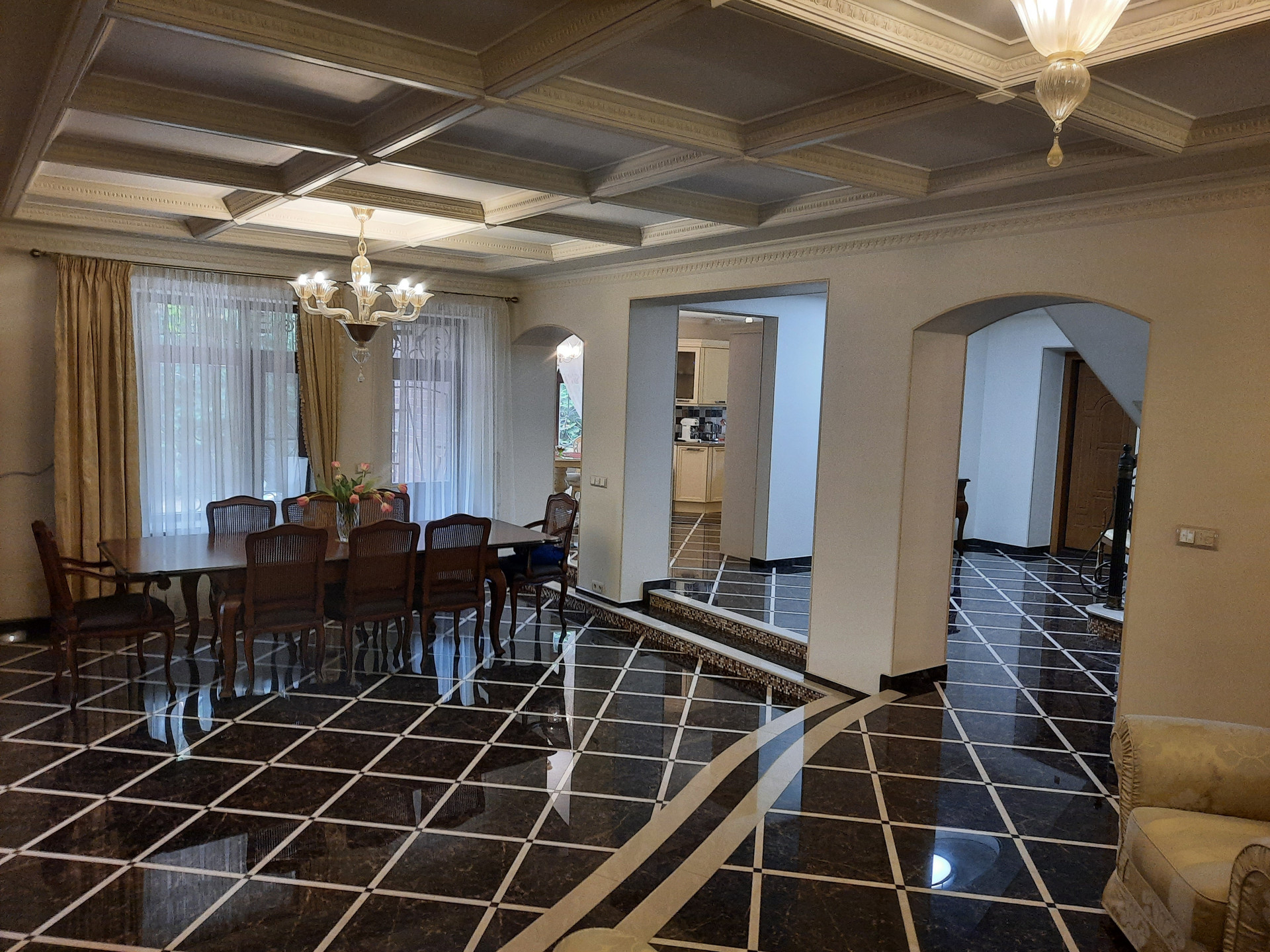 Продается стильный уютный дом в небольшом элитном тихом закрытом поселке. Оптимальный размер дома - 338м2, два уровня. На первом этаже: большая гостиная 38м2с камином, комната (кинозал) 28м2, кухня 18м2, с/у, хозяйственные помещения, веранда, гараж. На втором этаже: 3 спальни с гардеробными и 2-мя с/у, биллиардная 41м2, зимний сад. Дом строился для себя из качественных натуральных материалов (кирпич, мрамор, керамогранит, паркет, деревянные стеклопакеты. Мебель, техника, сантехника от европейских производителей. Коммуникации: центральное газоснабжение, электричество 15 КВт, скважина 110м с оборудованием умягчение и очистки, канализация - септик биотал, кондиционирование всех помещений, интернет - оптоволокно. Участок 15 соток с ландшафтным дизайном, лесными и фруктовыми деревьями, зоной барбекю, отдельно стоящая 2-х уровневая баня с комнатами для прислуги или охраны. Дом подключен к вневедомственной охране, есть камеры видеонаблюдения и охранная сигнализация периметра дома и периметра поселка, круглосуточный пост охраны поселка. В поселке есть детская площадка, магазин, вокруг лесной массив 1й категории. Богатая инфраструктура Новой Риги и Звенигорода, хорошая транспортная доступность.
