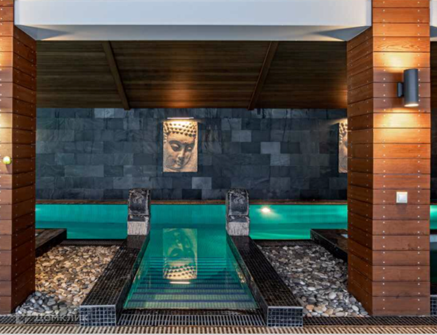 ID: 19935 Великолепный, стильный, современный дом с огромным бассейном и 5 спальнями в ГП-2 Кезьмино по интересной цене. В доме установлена сантехника Villeroy&Boch, вся мебель сделана по индивидуальному заказу в Италии. На участке есть отдельно стоящий банный комплекс и гараж на 3 автомобиля с квартирой для персонала.