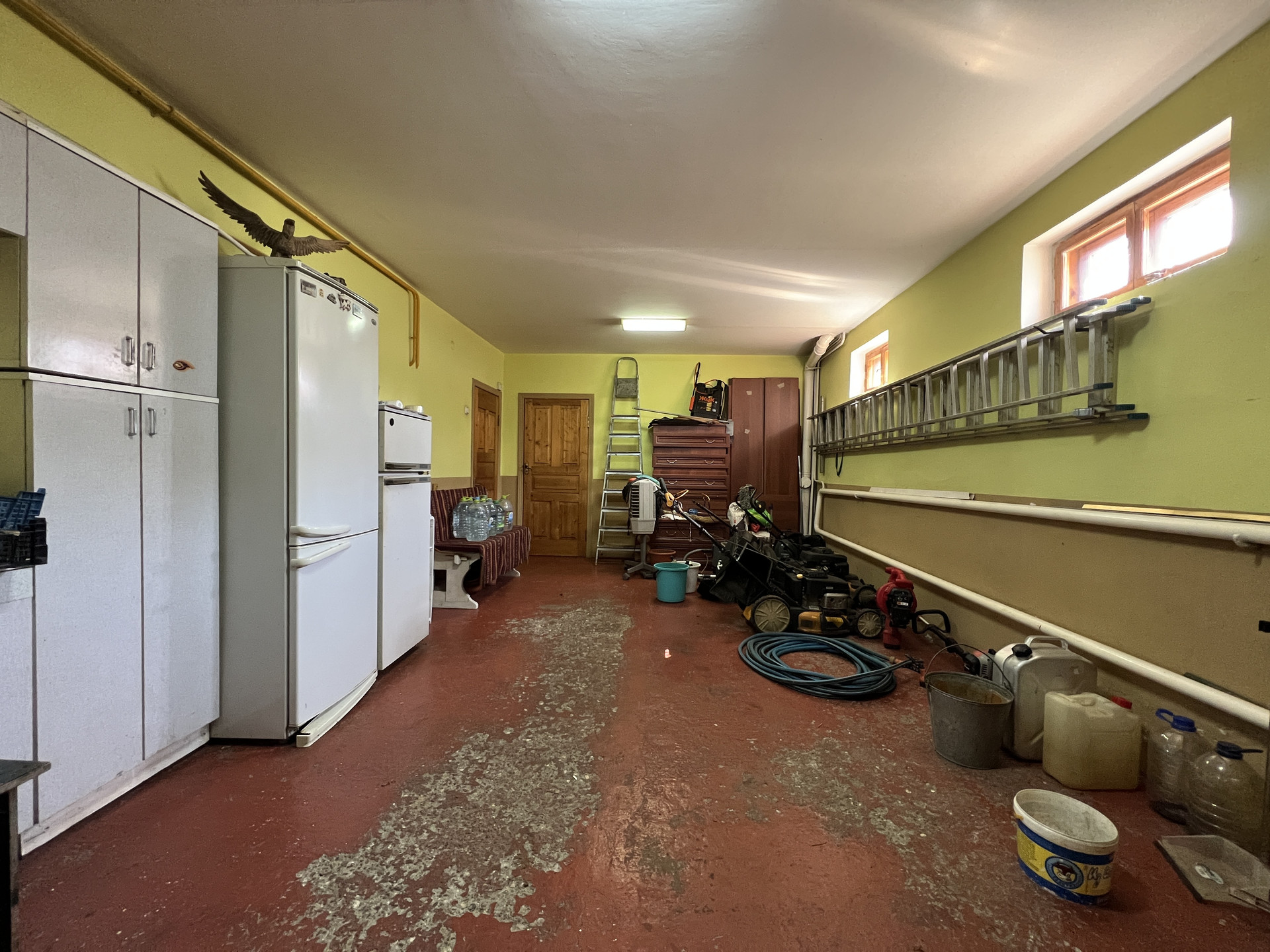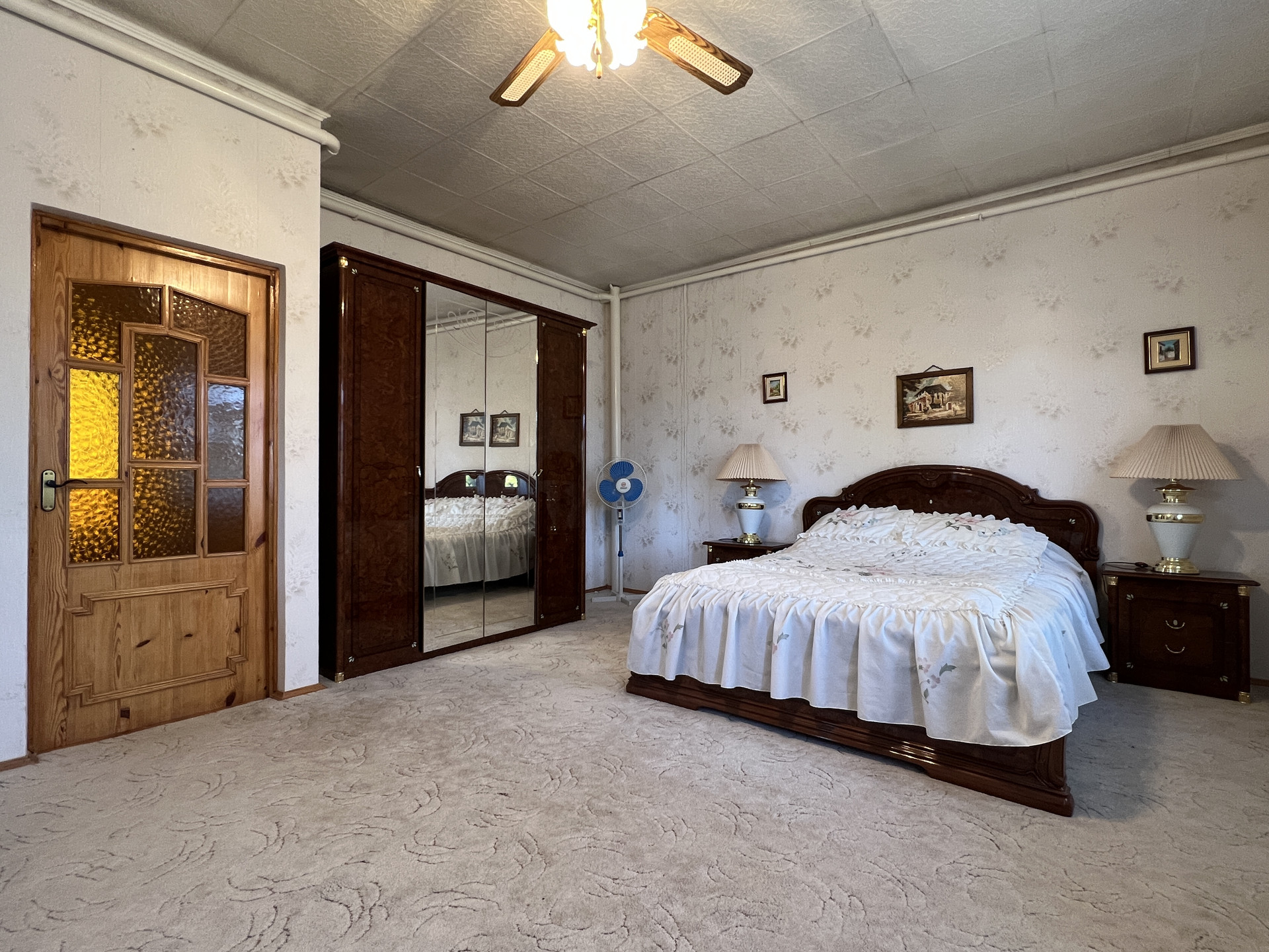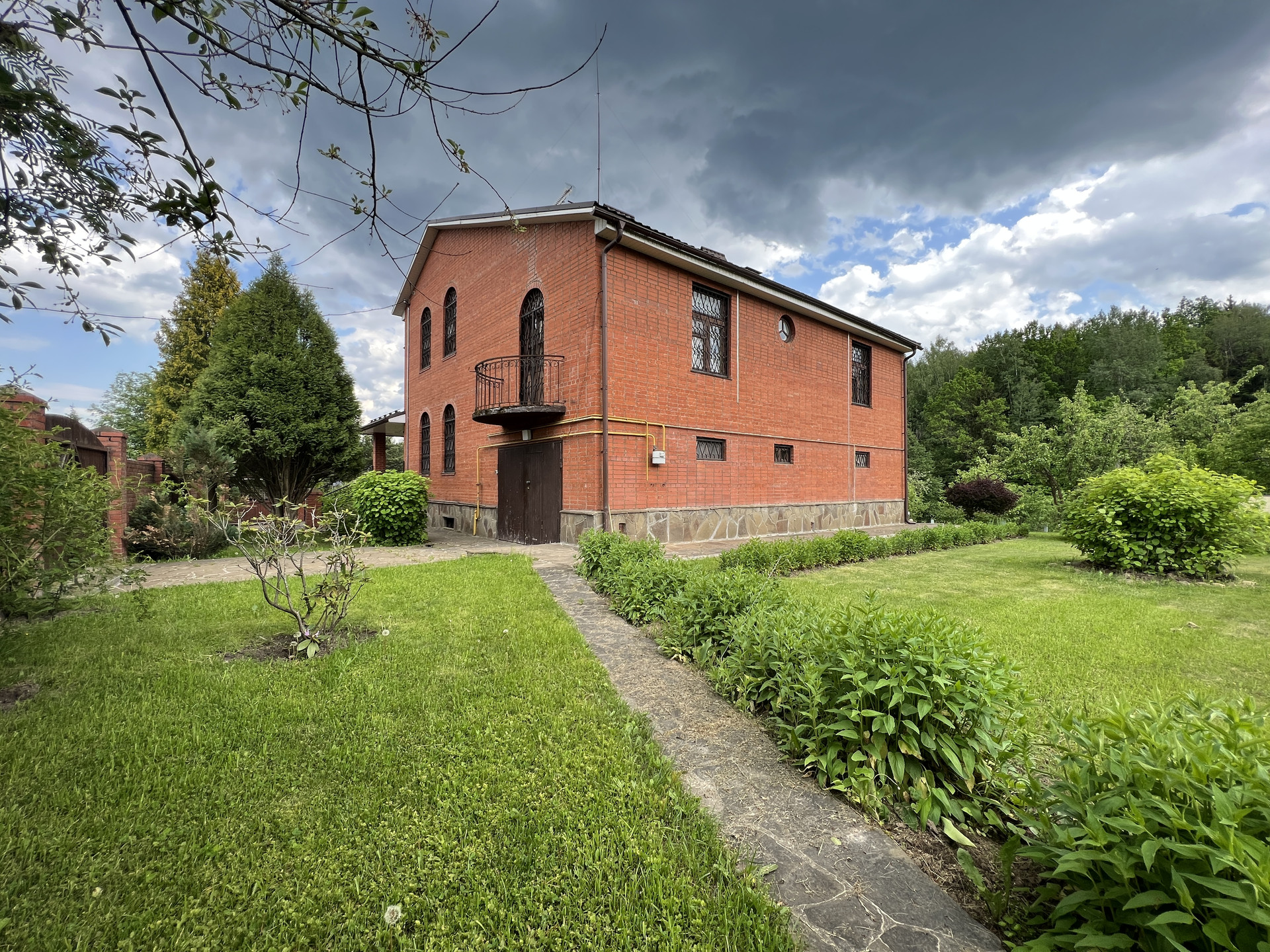 Общей площадью 420 кв.м., 3 уровня, построен в 1996 году из настоящего кирпича (толщина стен 1,5 кирпича), с ж/б перекрытиями.
