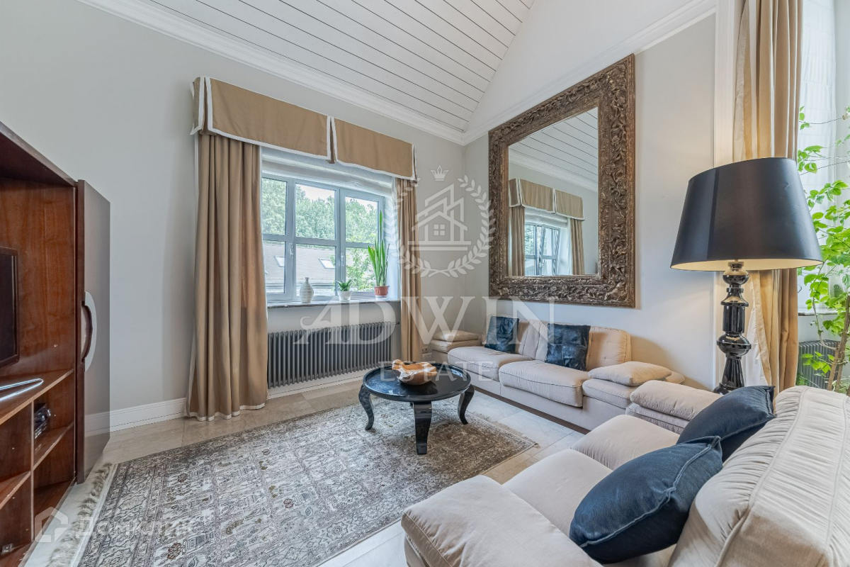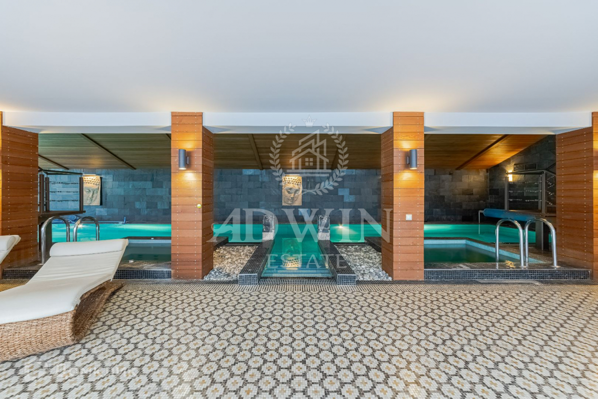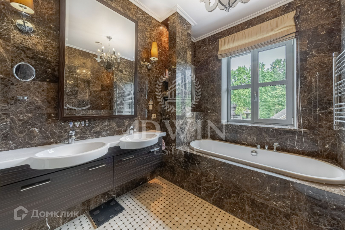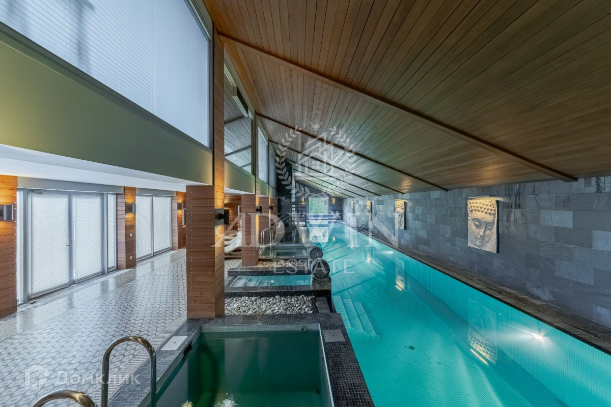 Дом 750 м2 построен в 2 этажа на участке 15 соток. Фасад дома отделан сланцем. Во внутренней отделке применены мрамор, гранит, дерево редких пород. Бассейн 25 метров и СПА зона. Просторная гостиная со вторым светом и камином. Зона BBQ. Красивый ландшафт. Гараж на 3 авто и квартира для персонала. Рядом лес и водоем. На территории кп есть большой теннисный корт.