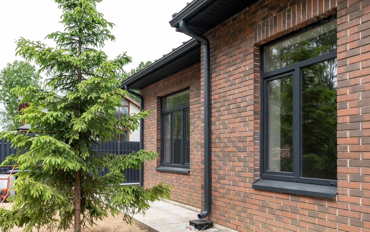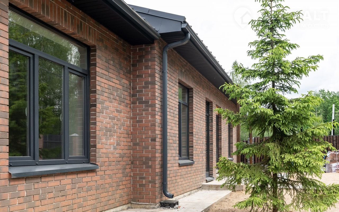 А клинкерный кирпич в качестве облицовки – это не только эстетика, но и дополнительная защита от любых погодных капризов. Кровля – надежная фальцевая двухскатная, обеспечивает идеальный отвод воды. Окна – премиальный ПВХ высокого качества с двухкамерным стеклопакетом, снаружи выполнена ламинация. Внутренняя отделка – качественная штукатурка.