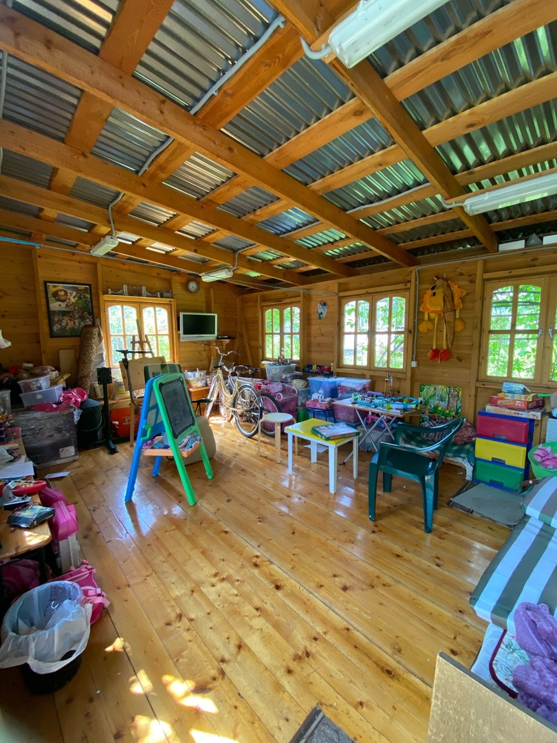 На участке расположены четыре отдельно стоящих постройки: гостевой домик ; летняя кухня и баня ; хоз блок с летним душем и туалетом; большая постройка свободной планировки, в данный момент используется, как игровая комната для детей.