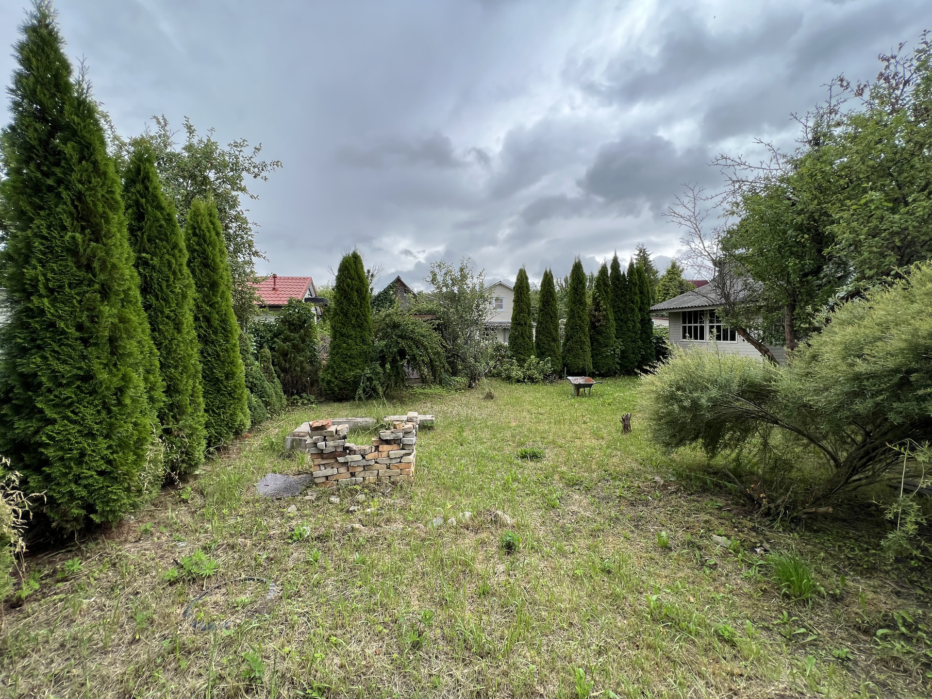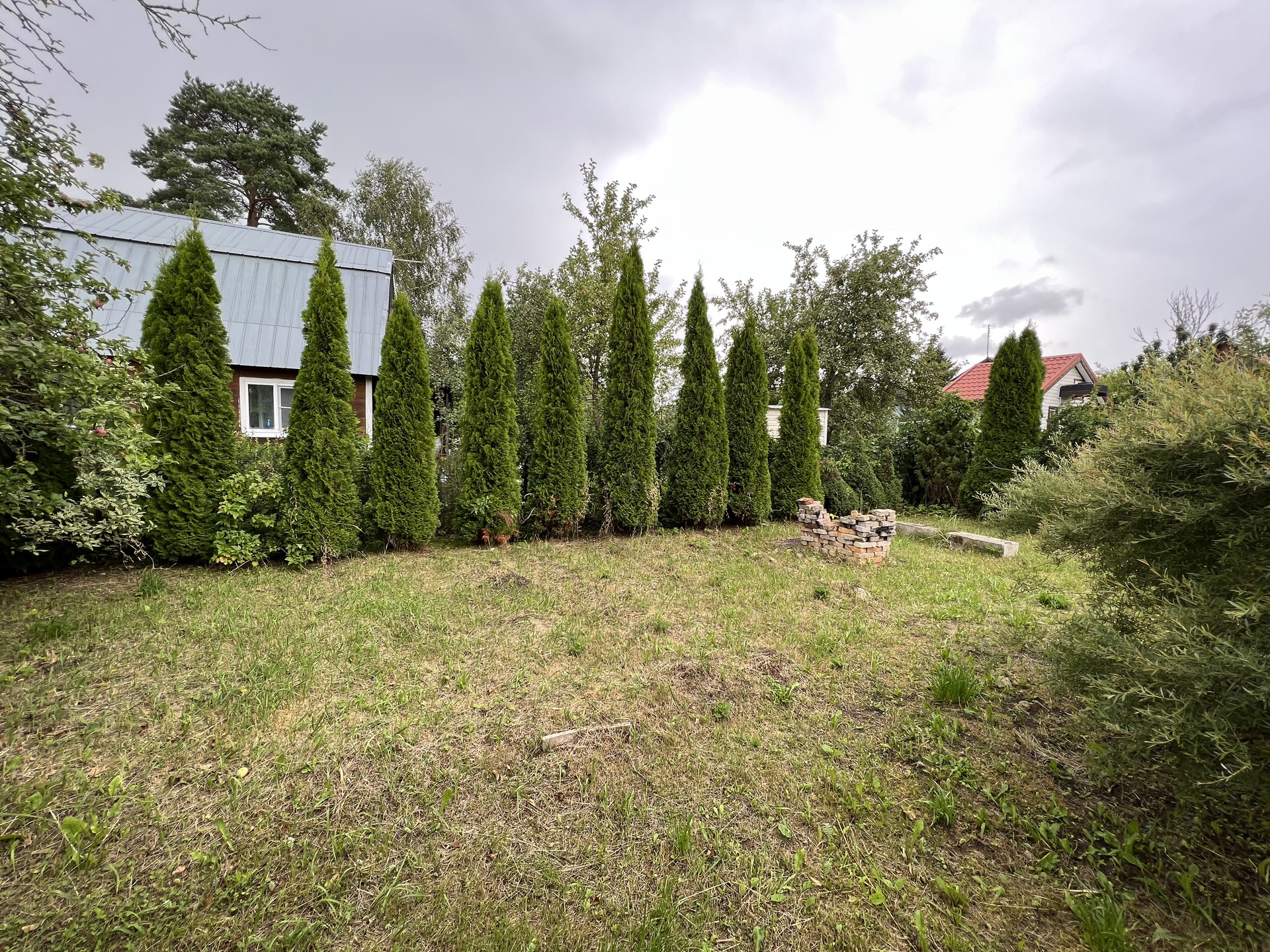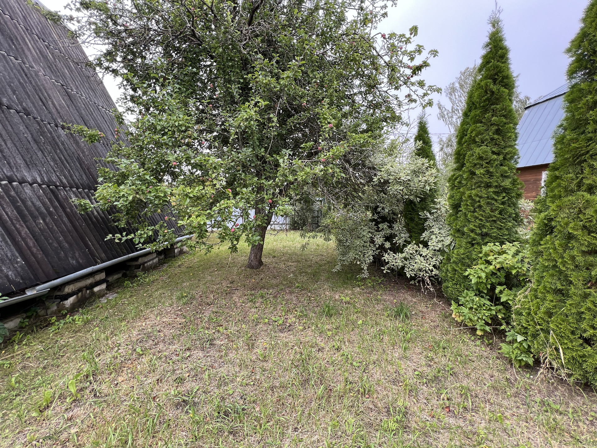 Земельный участок 6 соток, ухоженный, ровный, правильной формы, со всех сторон огорожен забором, въезд оборудован воротами и калиткой, посажены плодовые деревья, кустарники (туи, яблони, черная, красная смородина, малина). Круглогодичный подъезд к участку.