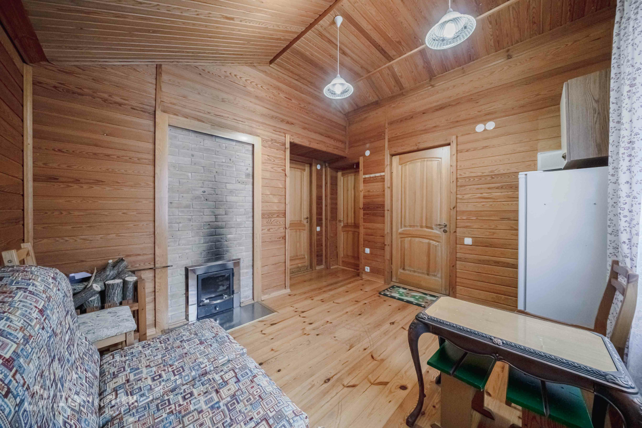 В доме три спальни, гостиная с дровяным камином производства Франции, кухня, душевая, санузел, кладовая. Развитые коммуникации: электричество 380 В, отопление, горячая и холодная вода, автономная канализация, тёплый пол в душевой и санузле, ТВ, интернет.