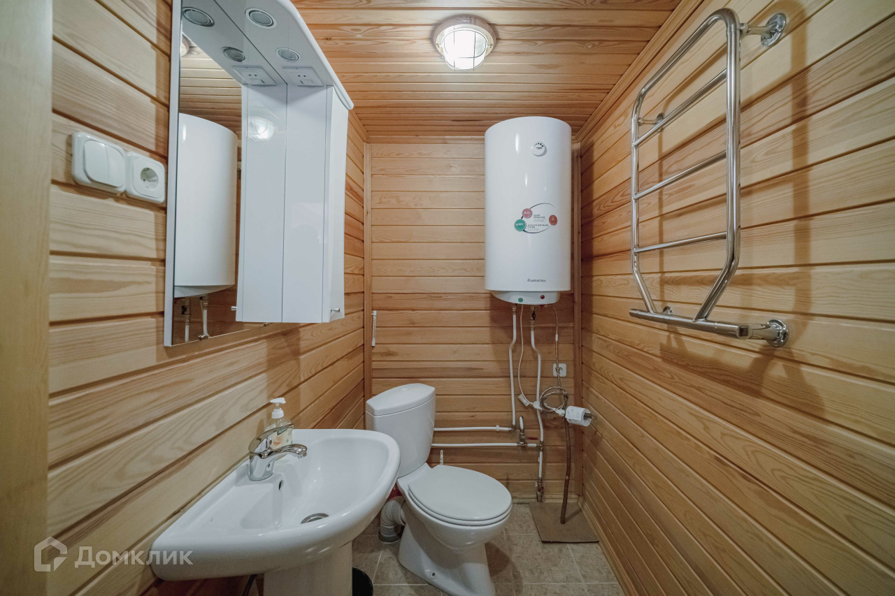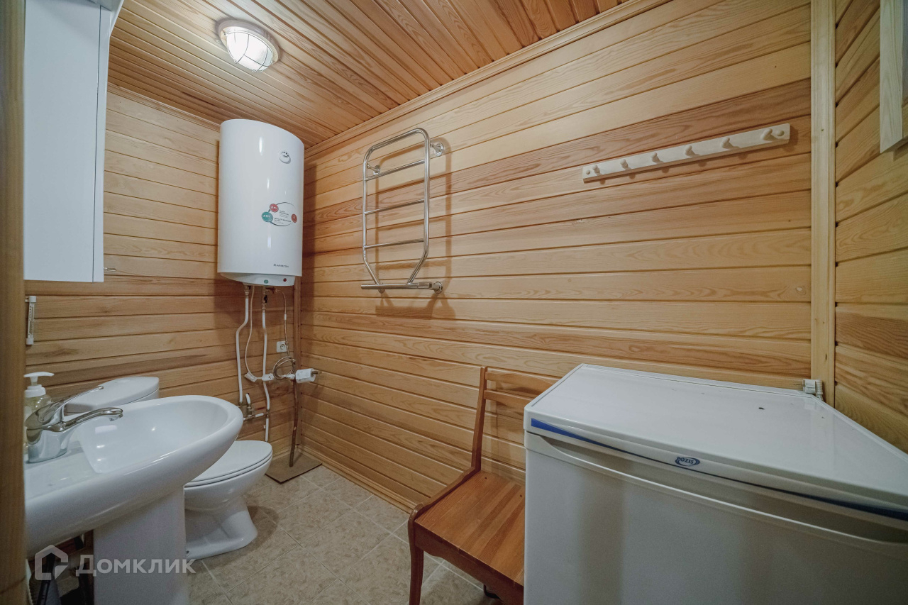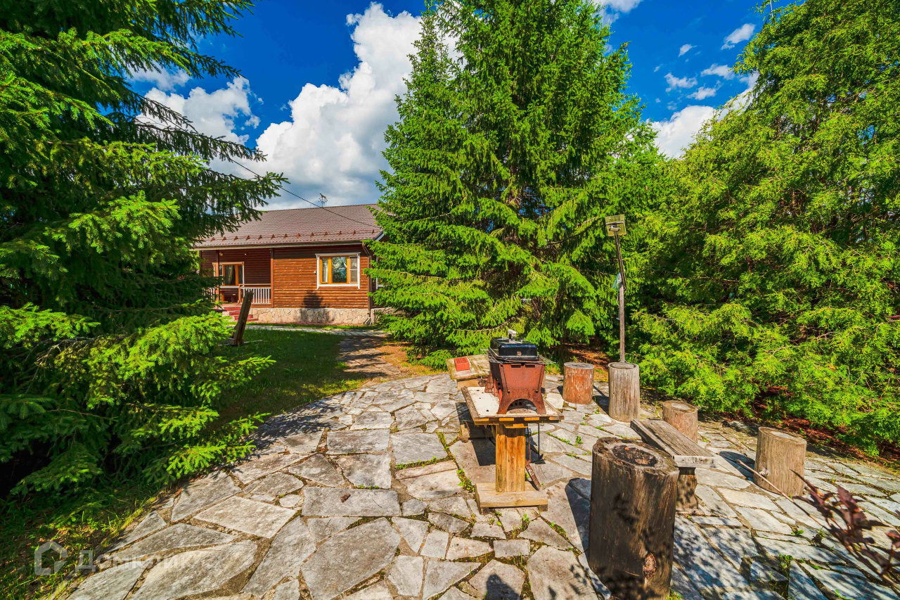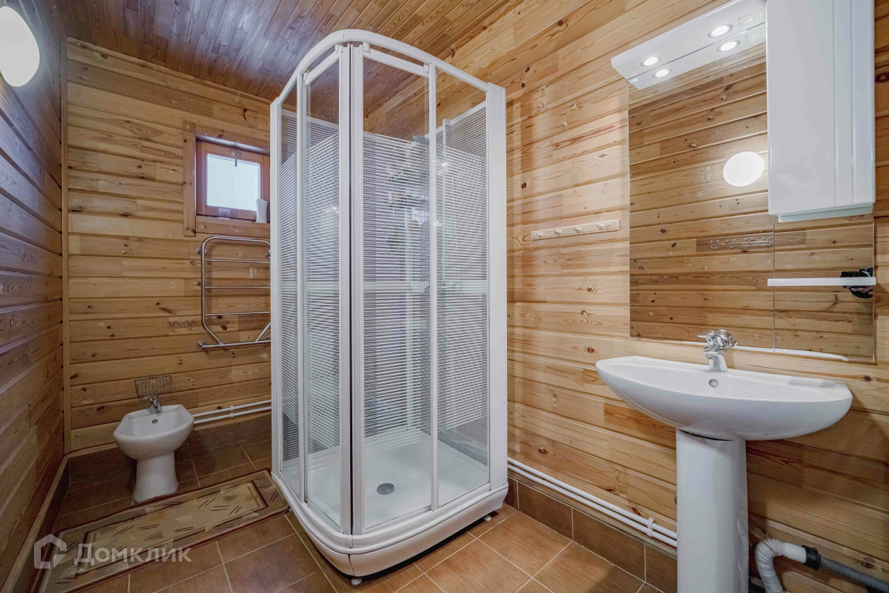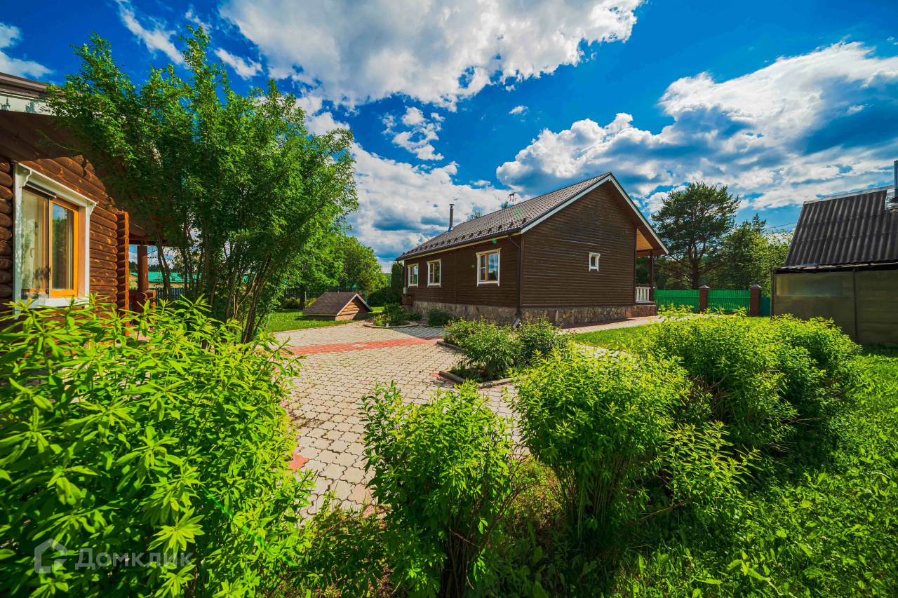 2) Русская баня площадью 36 м2 из оцилиндрованного бревна. Состоит из парилки с финской дровяной печью-каменкой «Харви», комнаты отдыха, душевой, санузла. Есть горячая и холодная вода, канализация, отопление, тёплый пол (душевая, санузел). Баня может использоваться круглогодично как гостевой дом. 3) Хозяйственный блок площадью 120 м2 из бруса под металлочерепицей, стоит также на монолитной плите. Включает гараж площадью 46 м2 на два автомобиля и гостевой дом площадью 36 м2. Блок не достроен, имеются все строительные материалы для завершения работ. Гараж эксплуатируемый. 4) Старый бревенчатый дом площадью 32 м2 с пристройкой-мастерской, при необходимости используется для временного проживания рабочих.