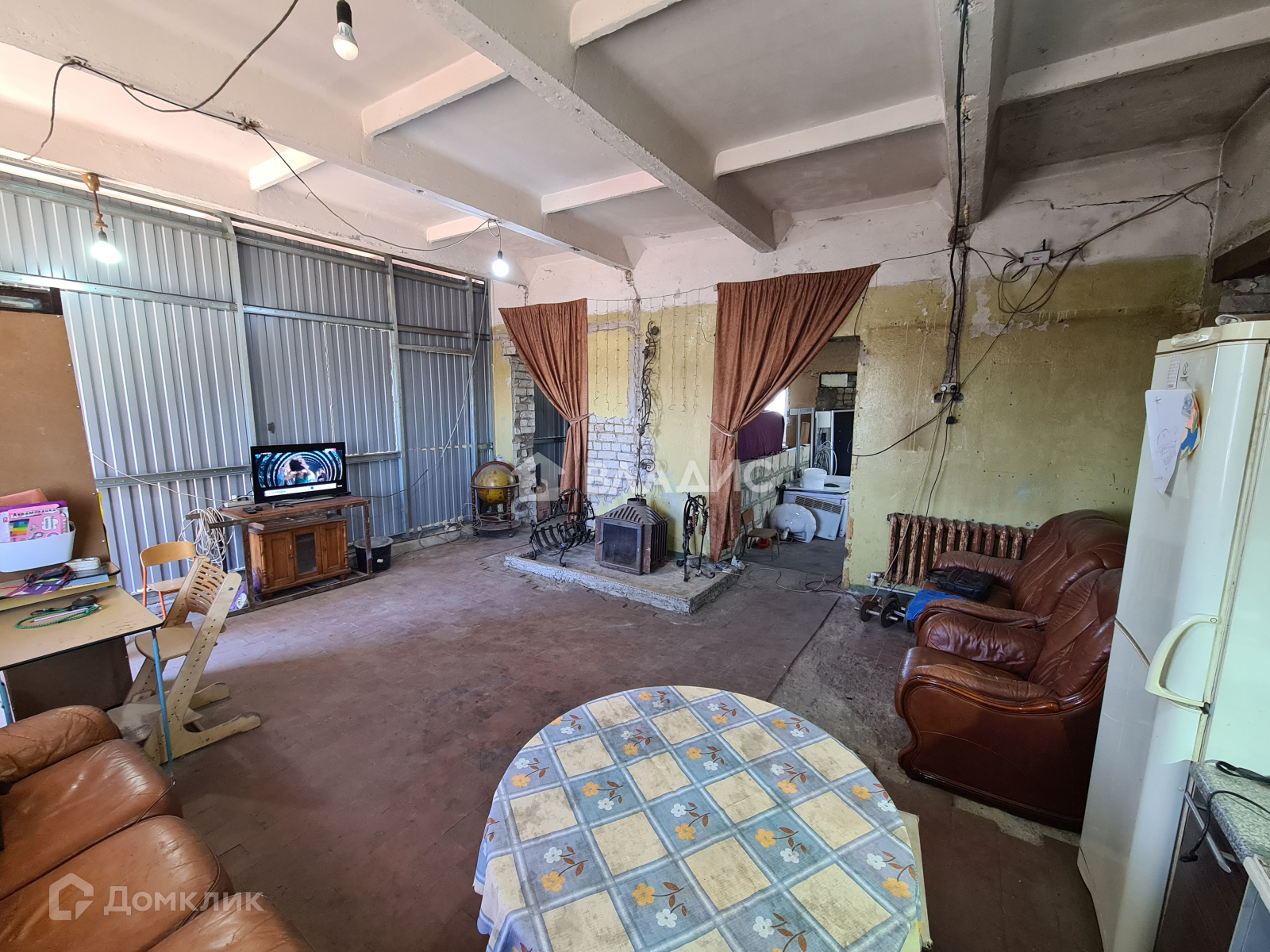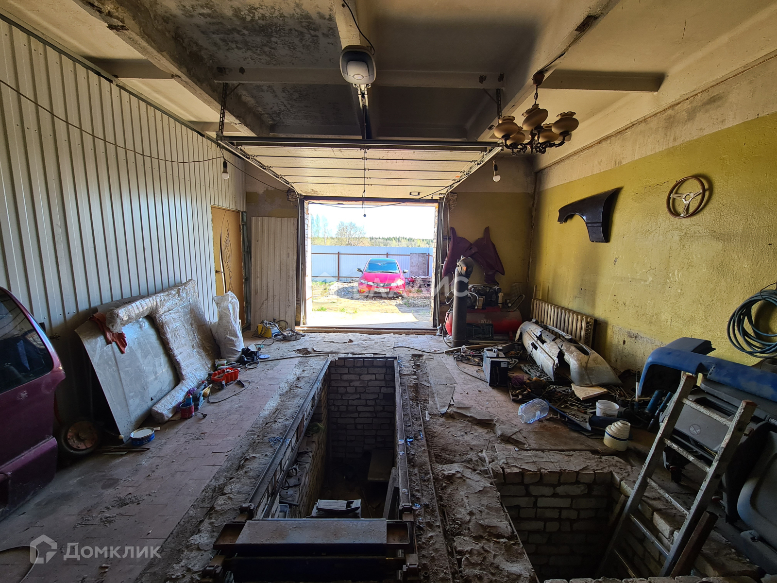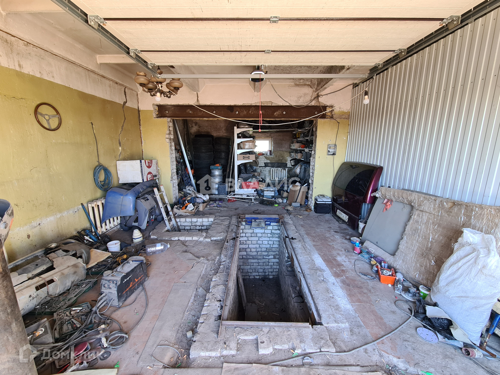 - за стеной гараж 10 м на 5 м, есть смотровая яма и подъемник, эл. ворота