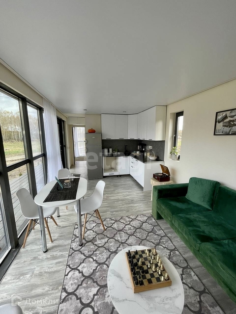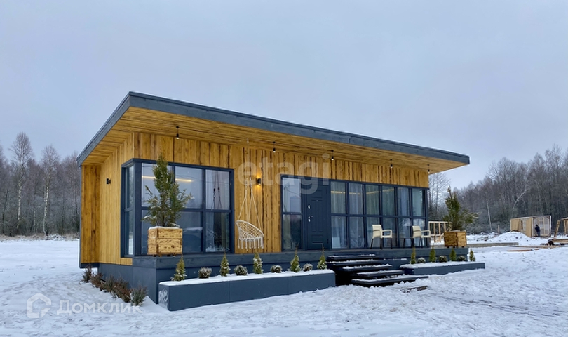 Спальня-11,2 кв.м, кухня-гостиная - 21,2 кв.м, туалет - 4,7 кв.м, терраса - 25,8 кв.м. Дом с предчистовой отделкой.