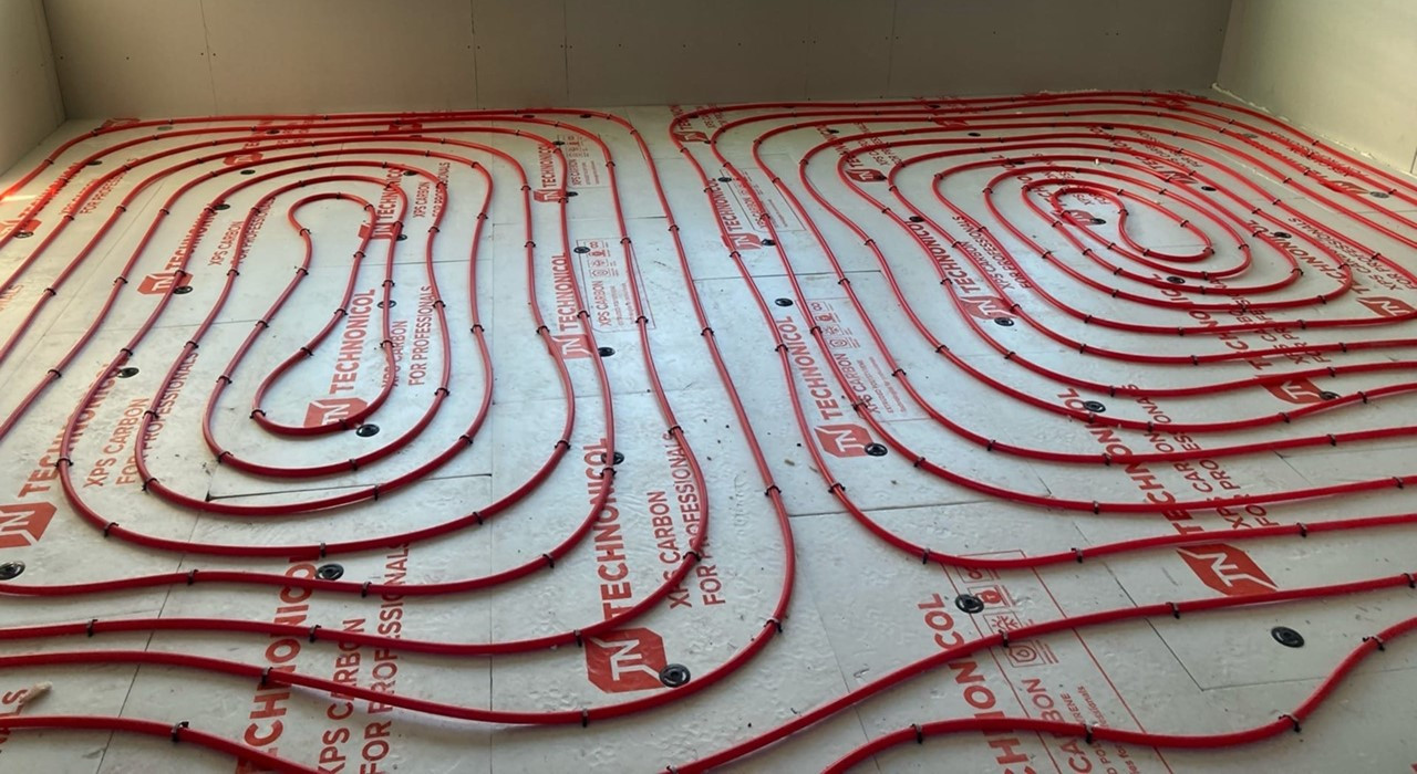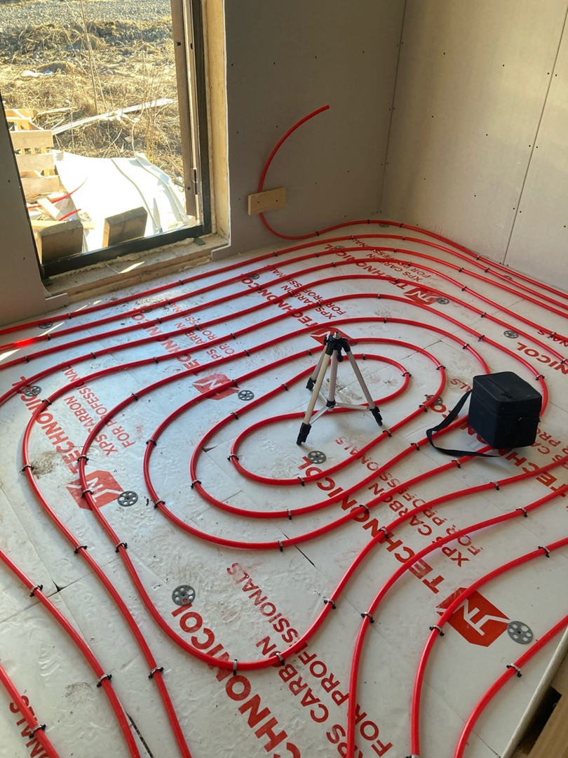 5. Монтаж теплых полов на первом этаже с установкой оборудования и запуском всей системы отопления.