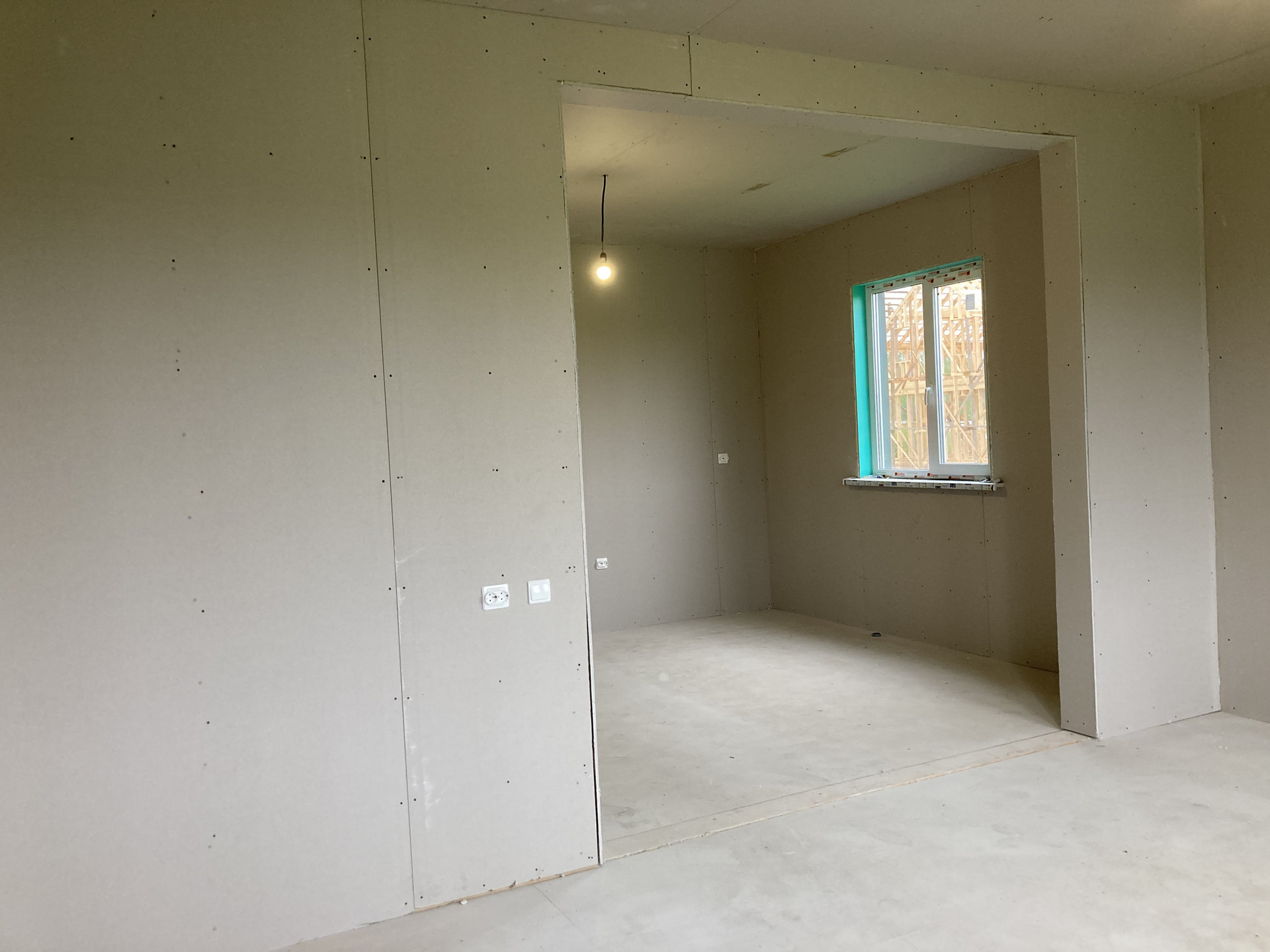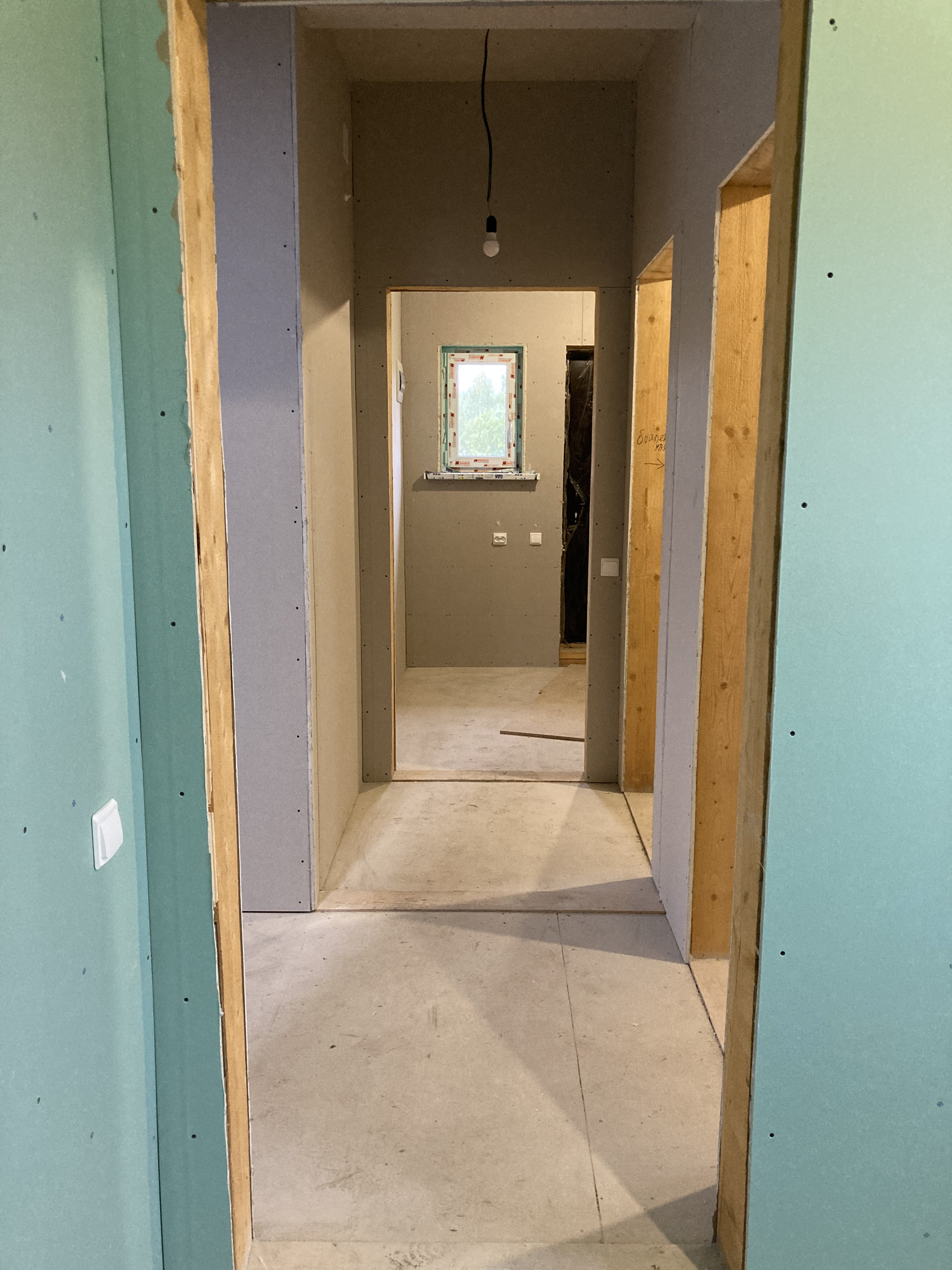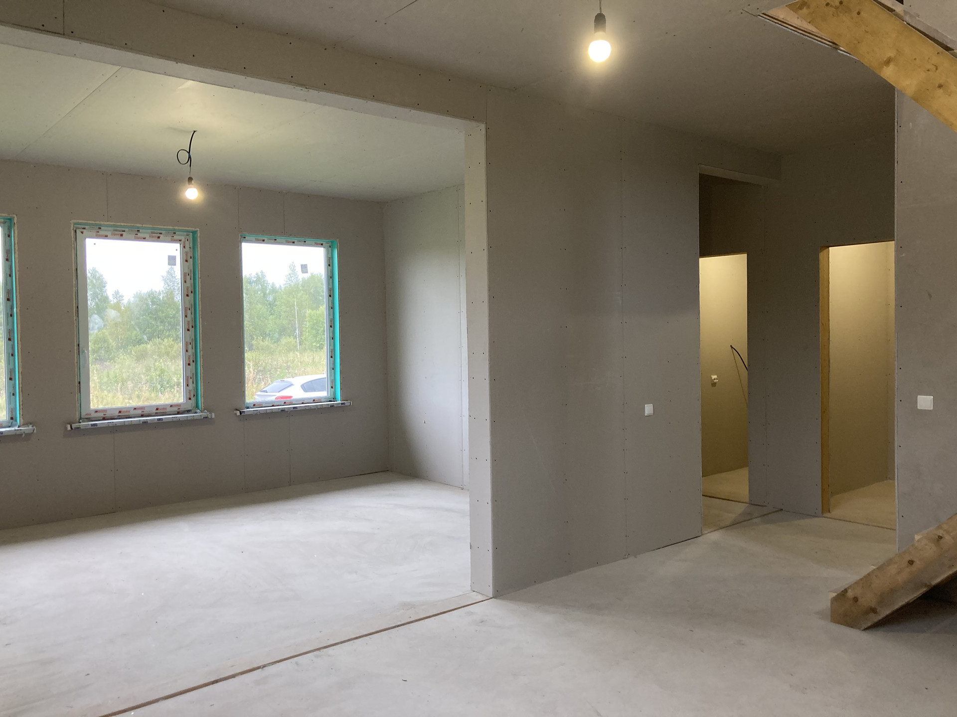 8. Произведен монтаж электропроводки внутри дома с установкой розеток, выключателей и лампочек. Есть заземление.