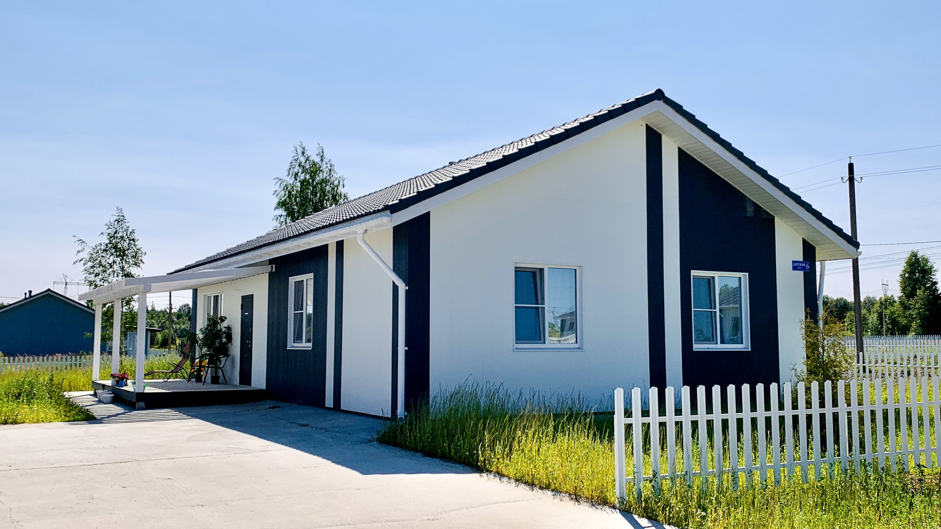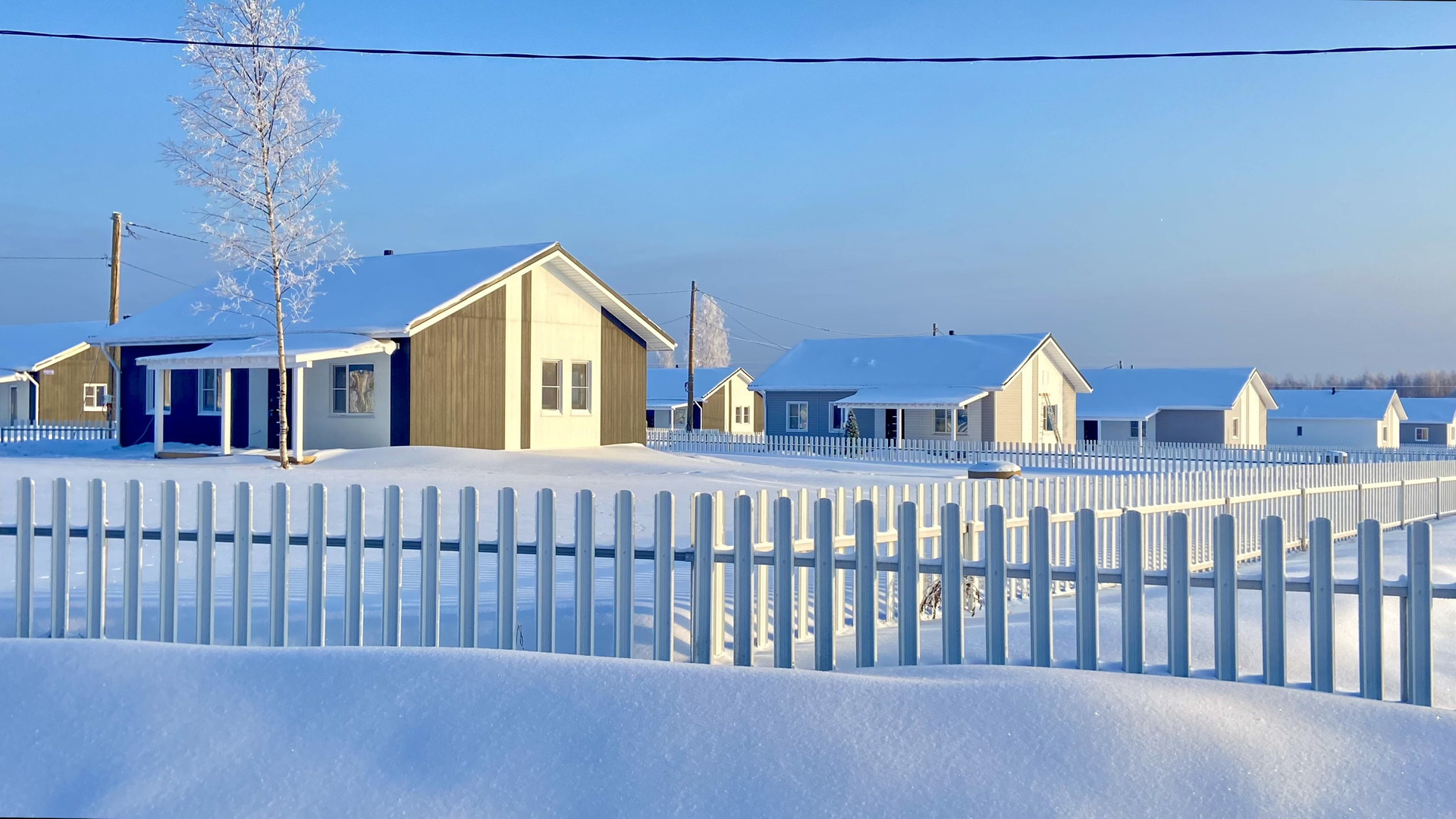 - дома и заборы в едином стиле поселка